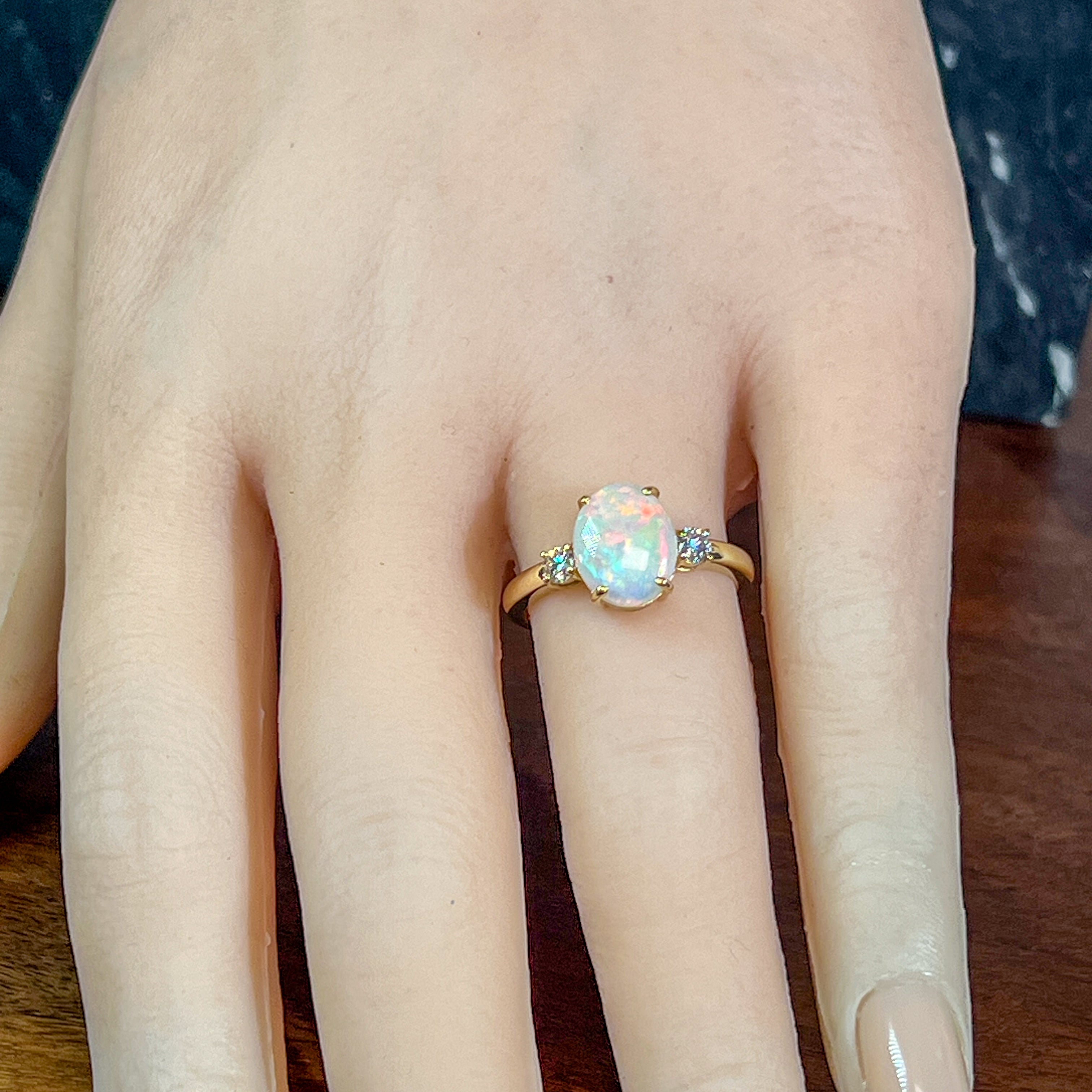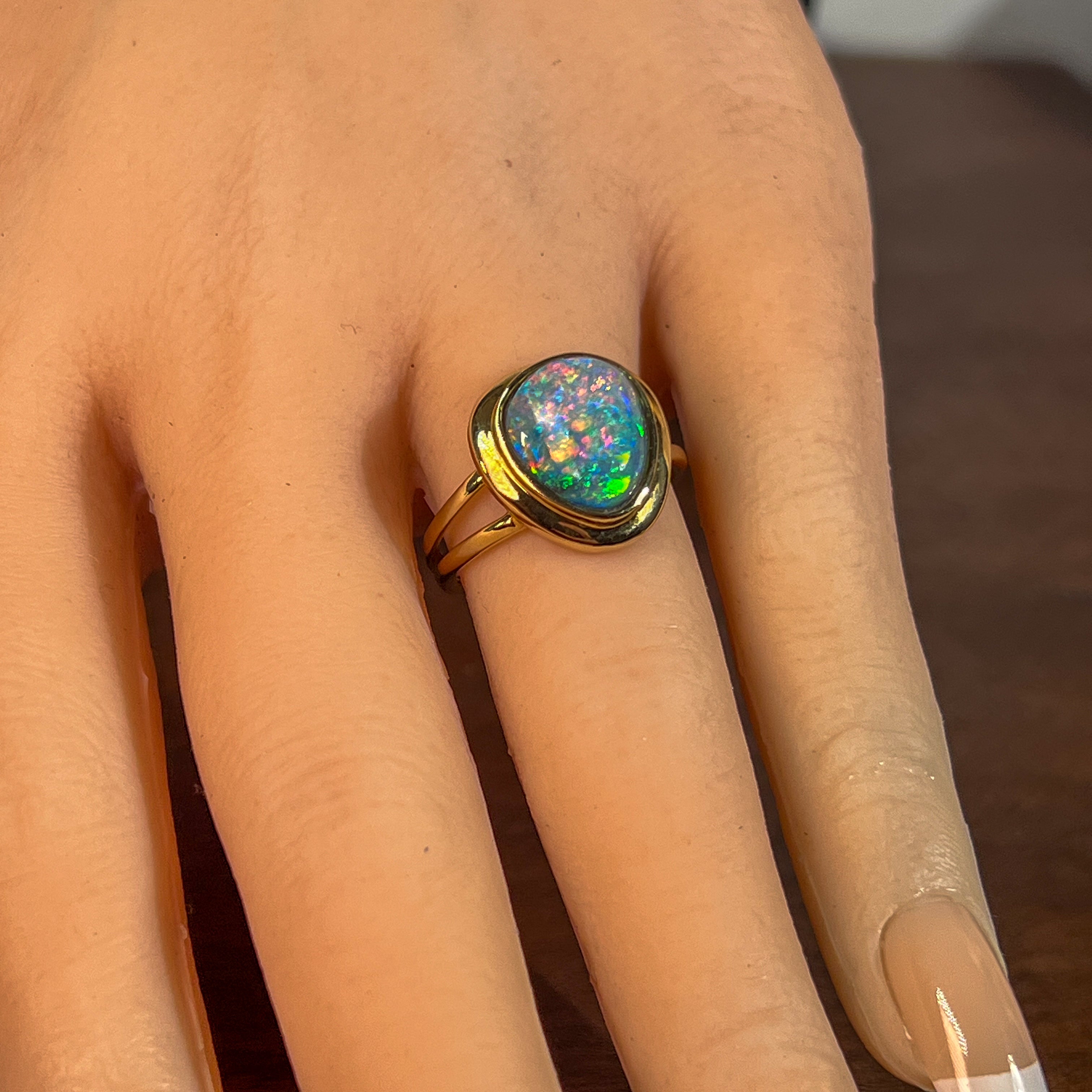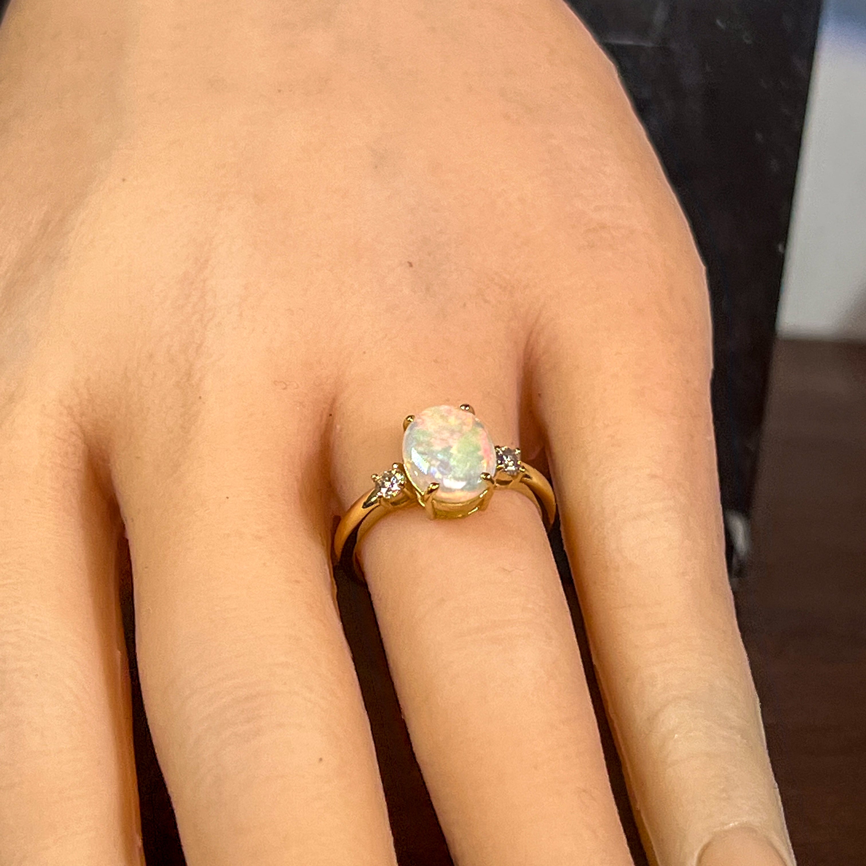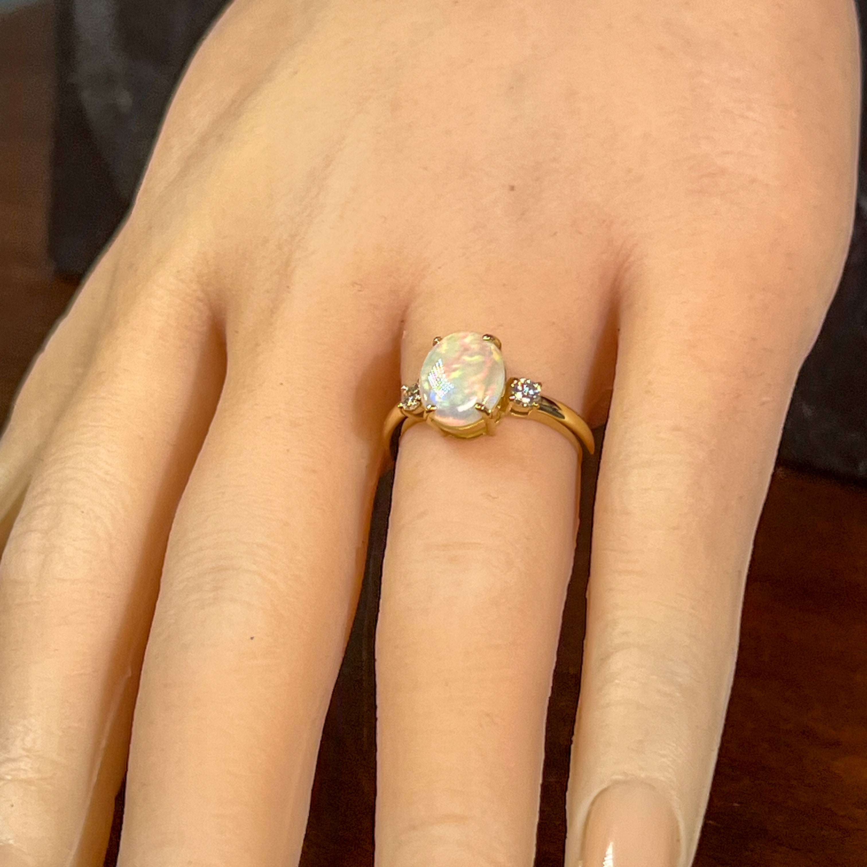 Our opal rings in gold are an excellent choice to complete an outfit, especially if you have a warm undertone, as this will compliment your skin tone. If you have a cool undertone, a silver opal ring may be a better choice for you.