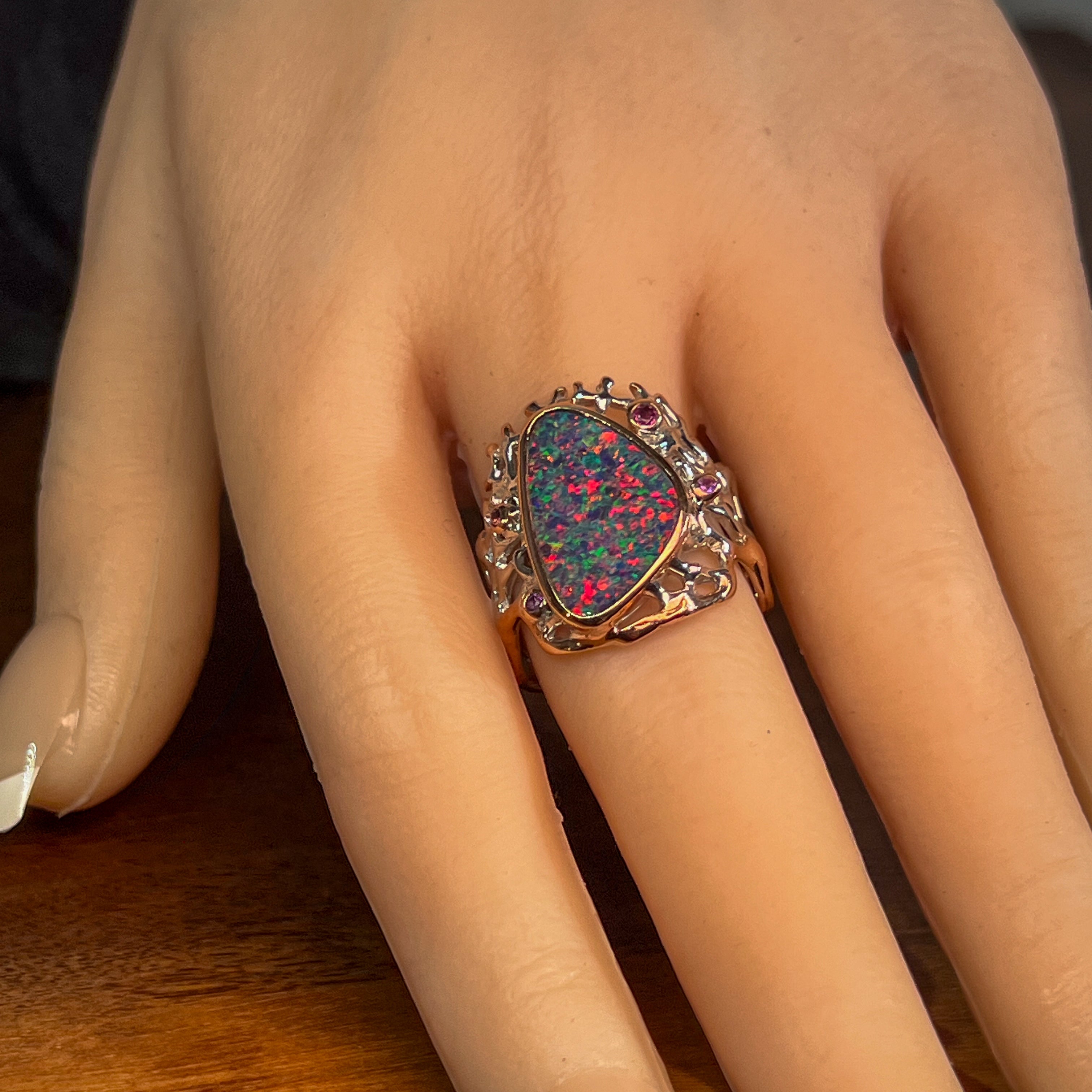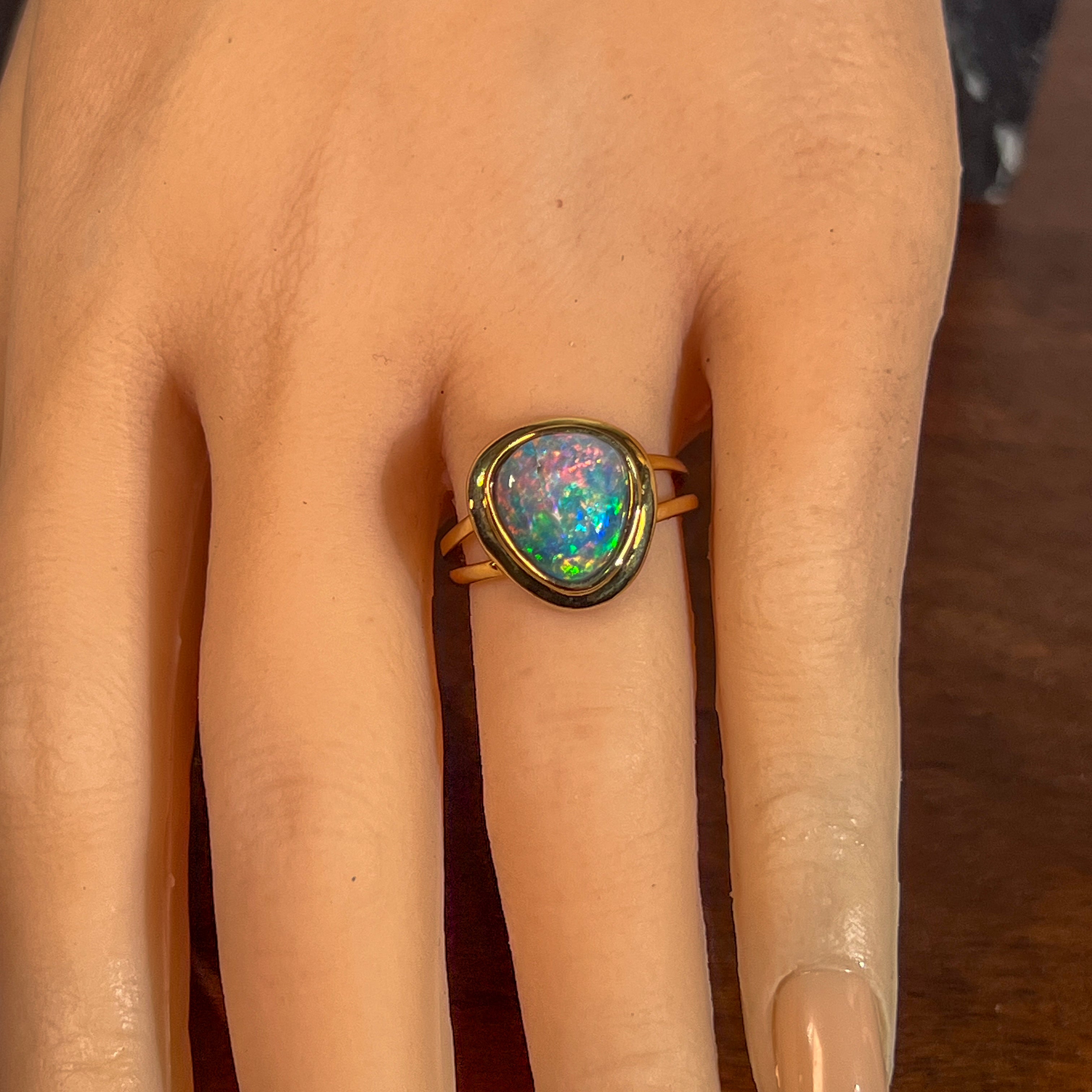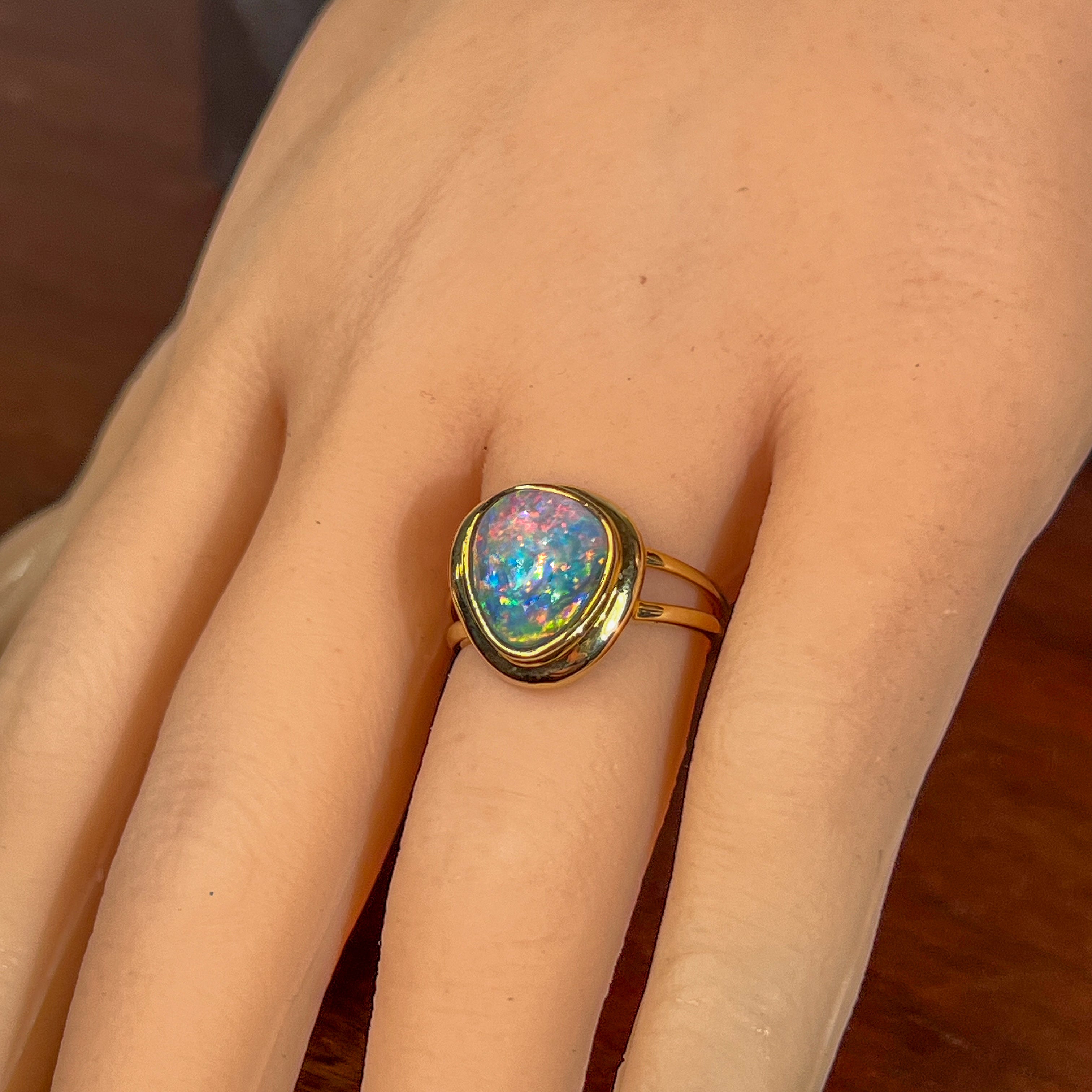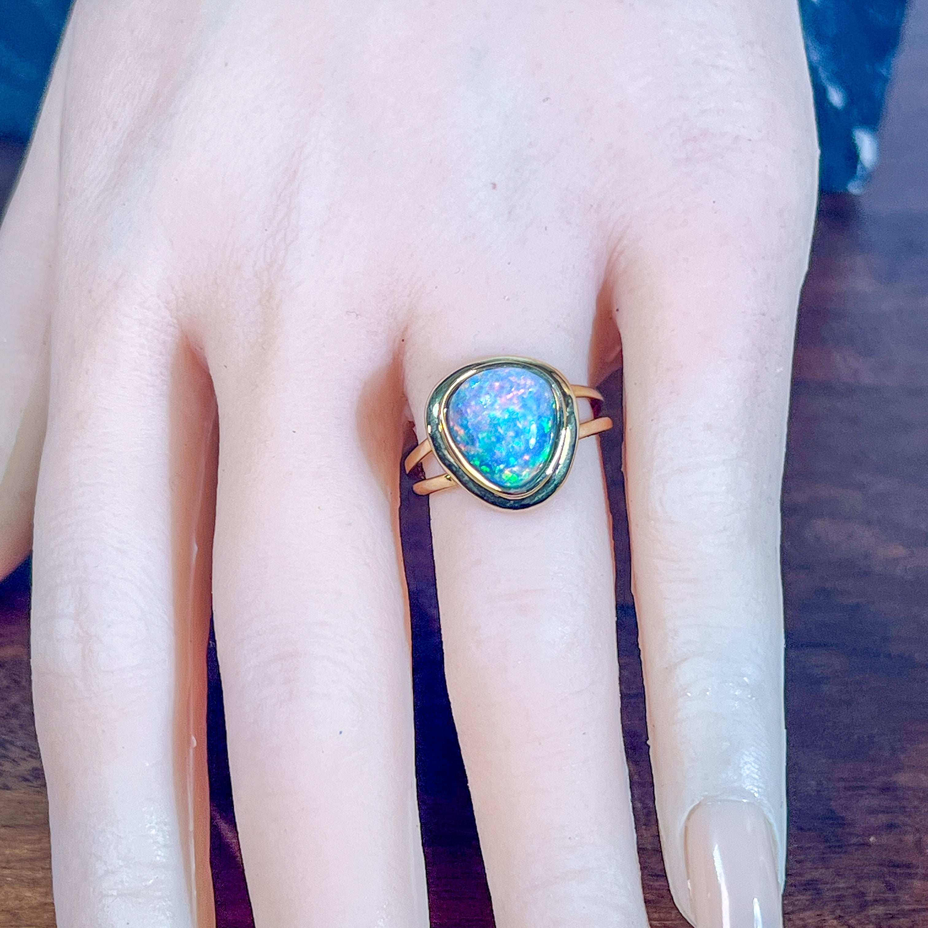 Our opal rings in gold are an excellent choice to complete an outfit, especially if you have a warm undertone, as this will compliment your skin tone. If you have a cool undertone, a silver opal ring may be a better choice for you.