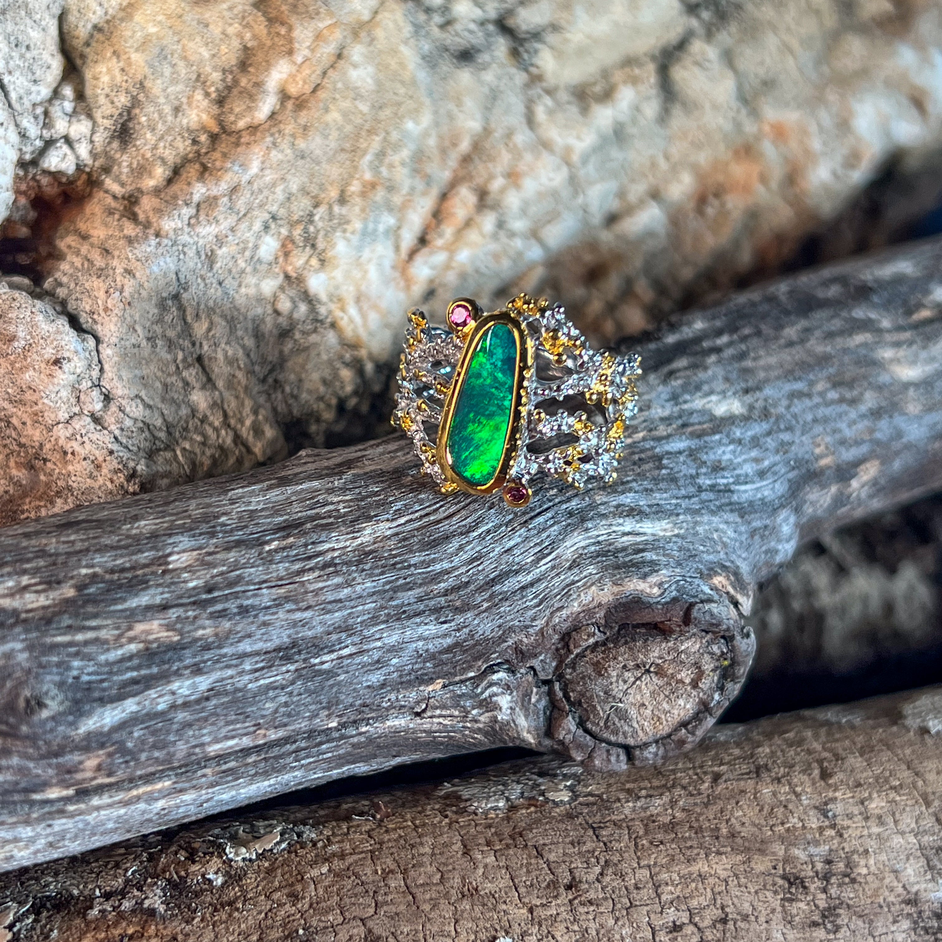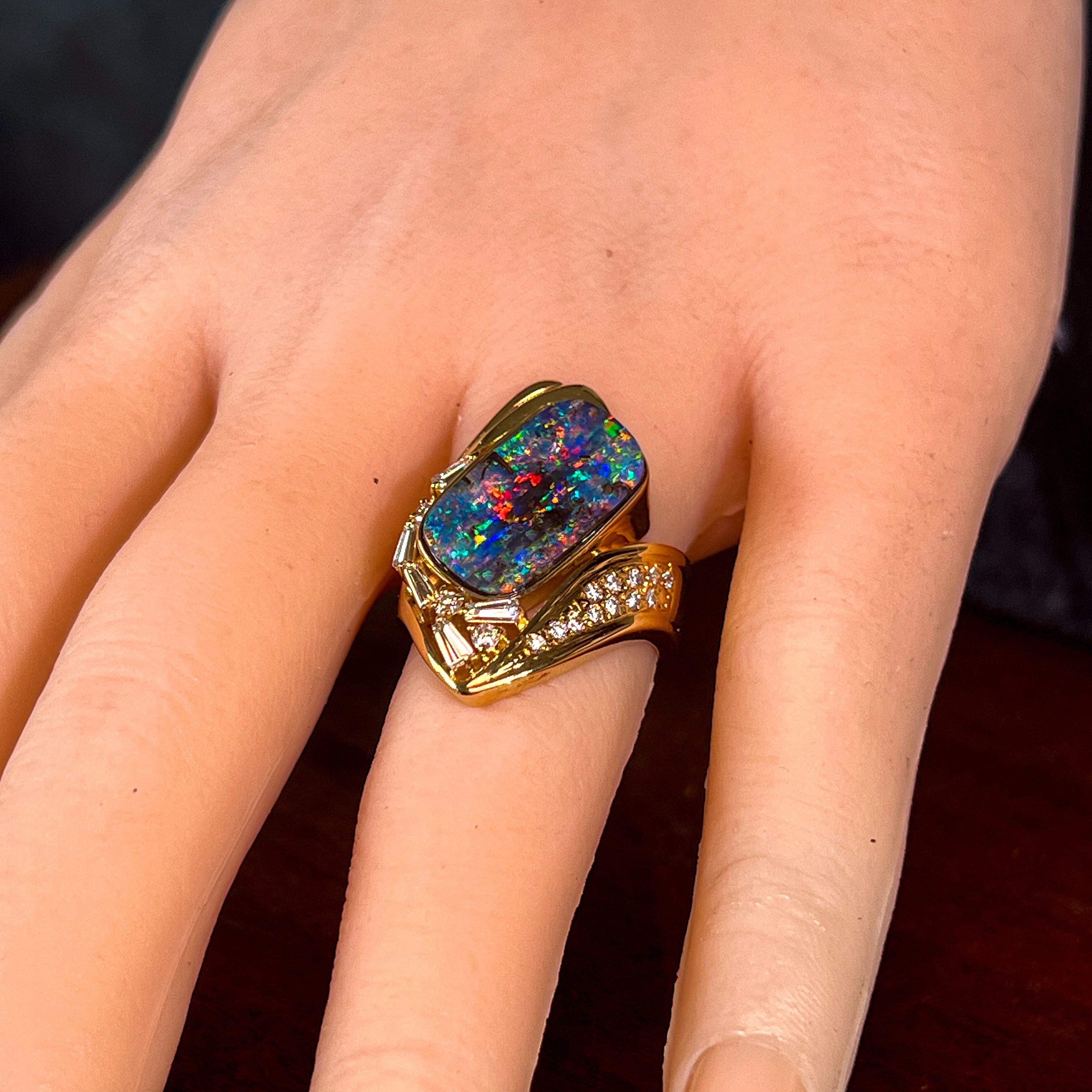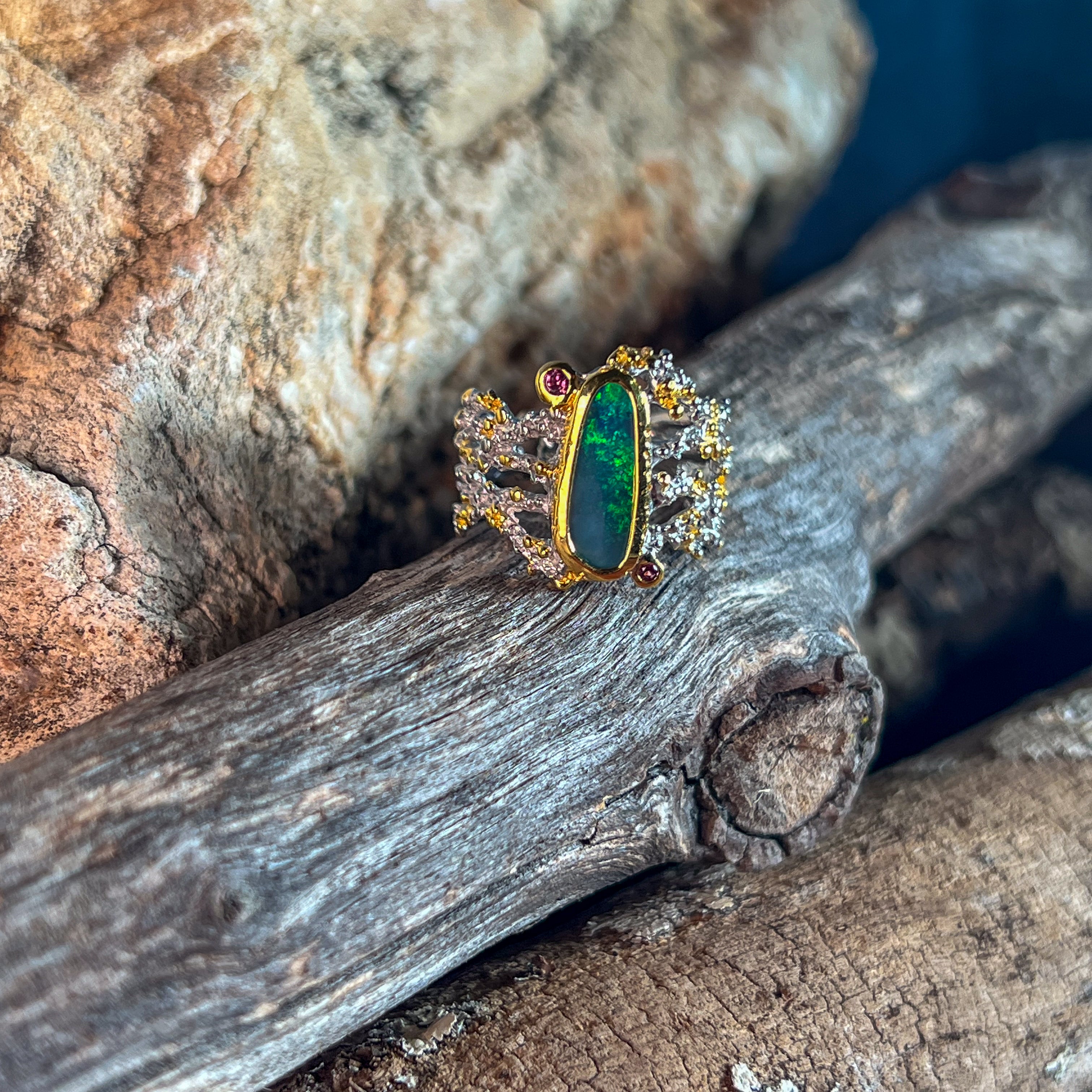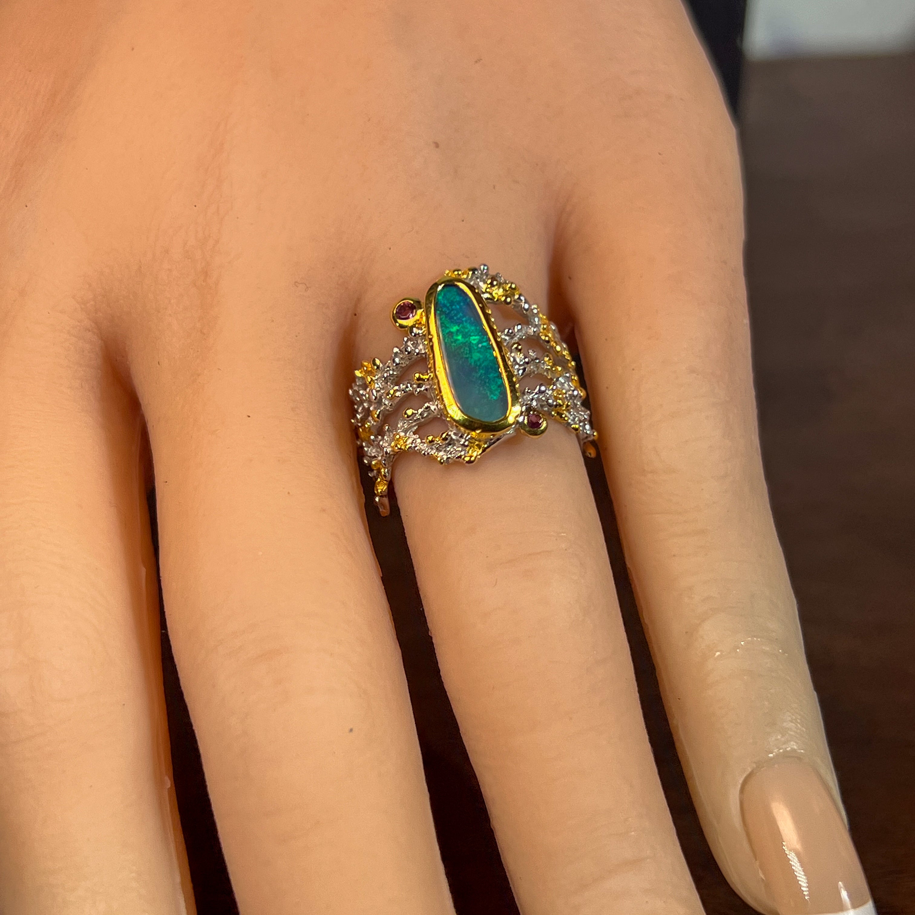 Our opal rings in gold are an excellent choice to complete an outfit, especially if you have a warm undertone, as this will compliment your skin tone. If you have a cool undertone, a silver opal ring may be a better choice for you.