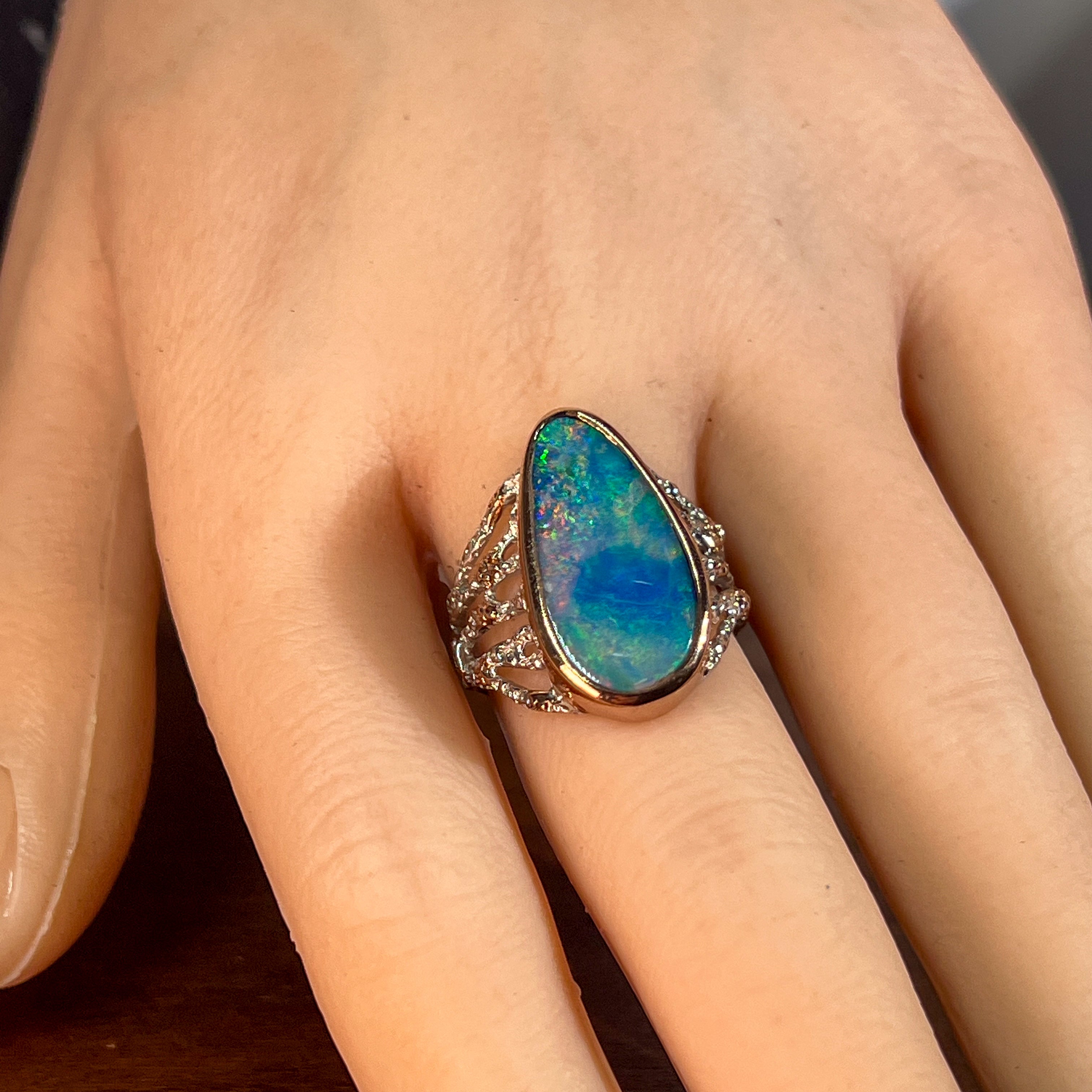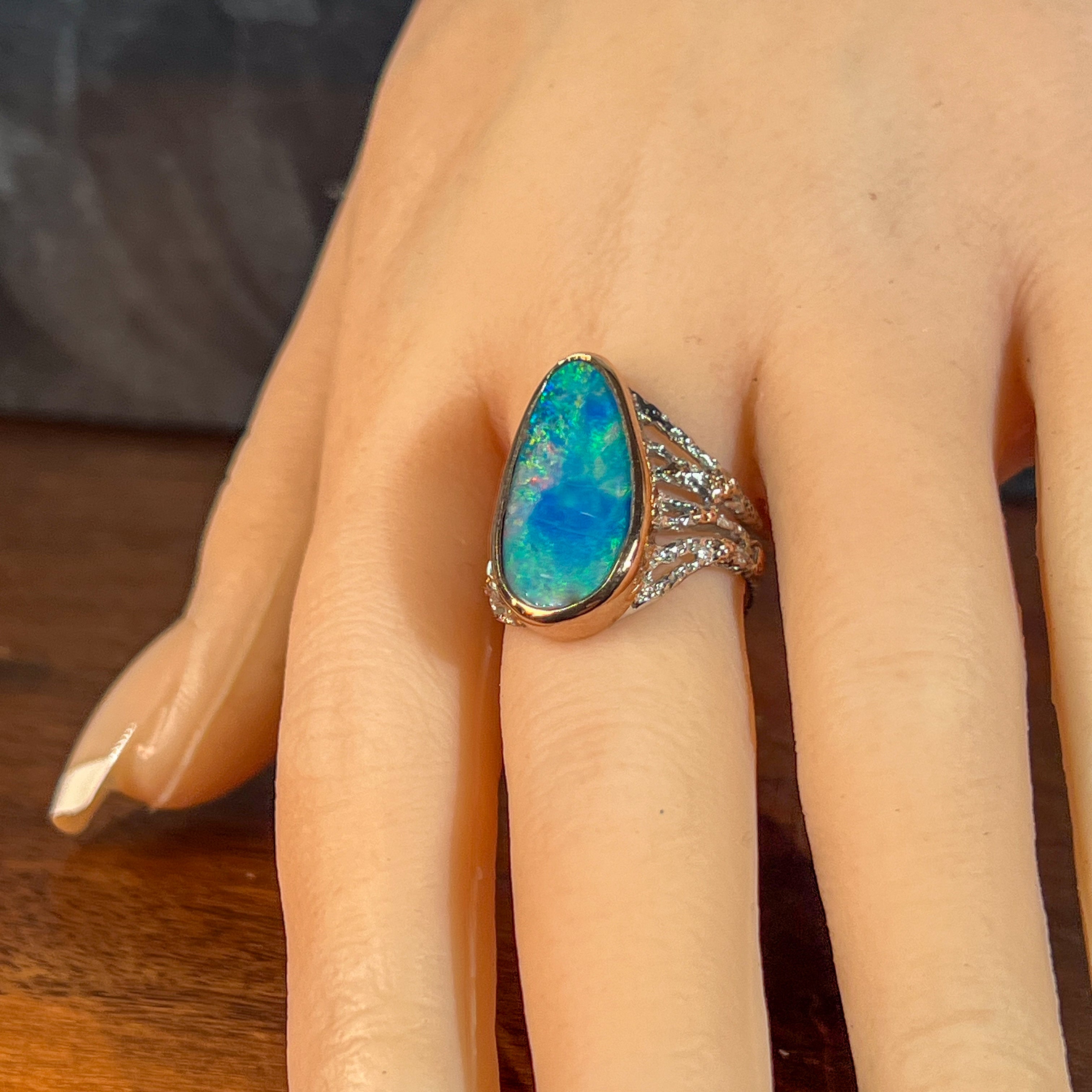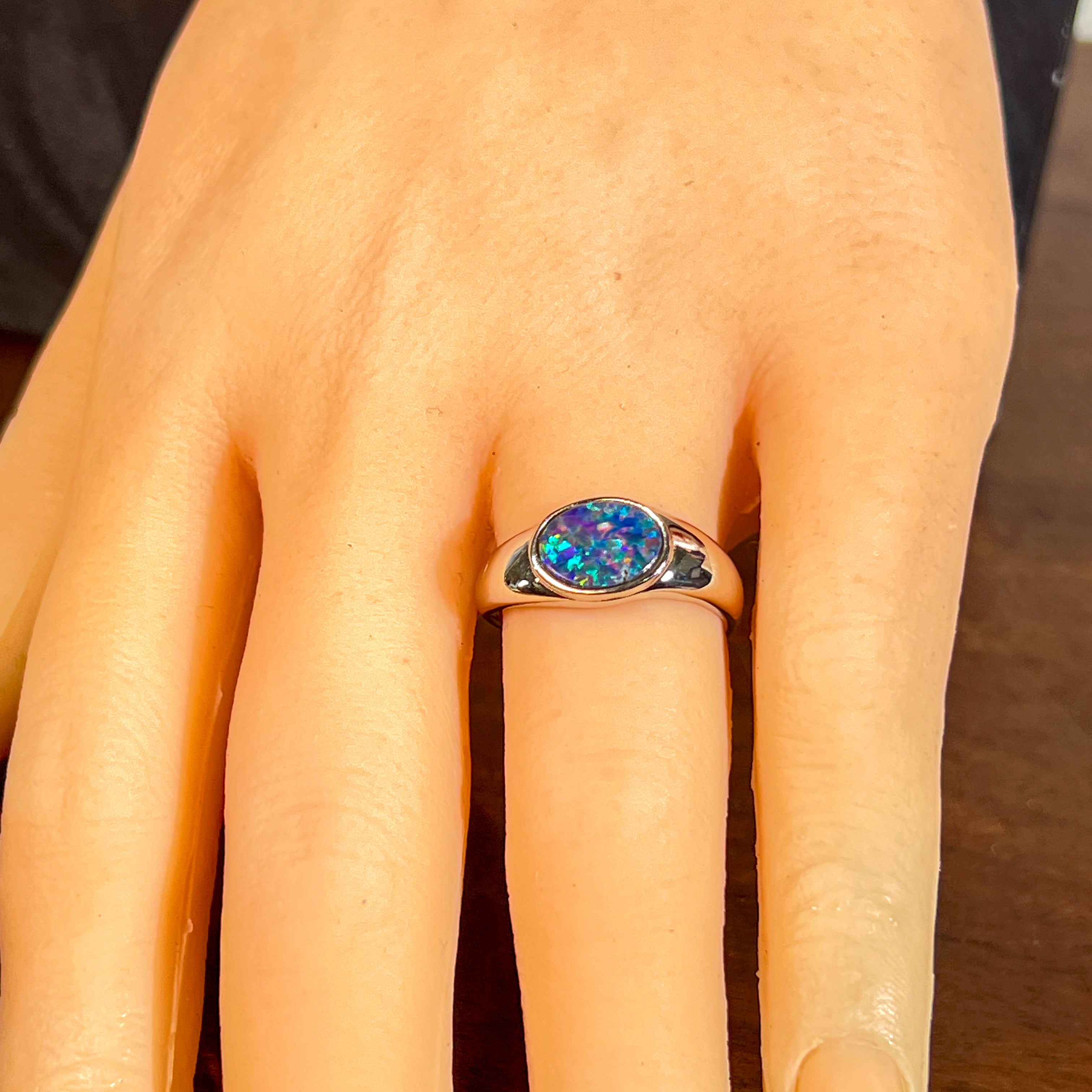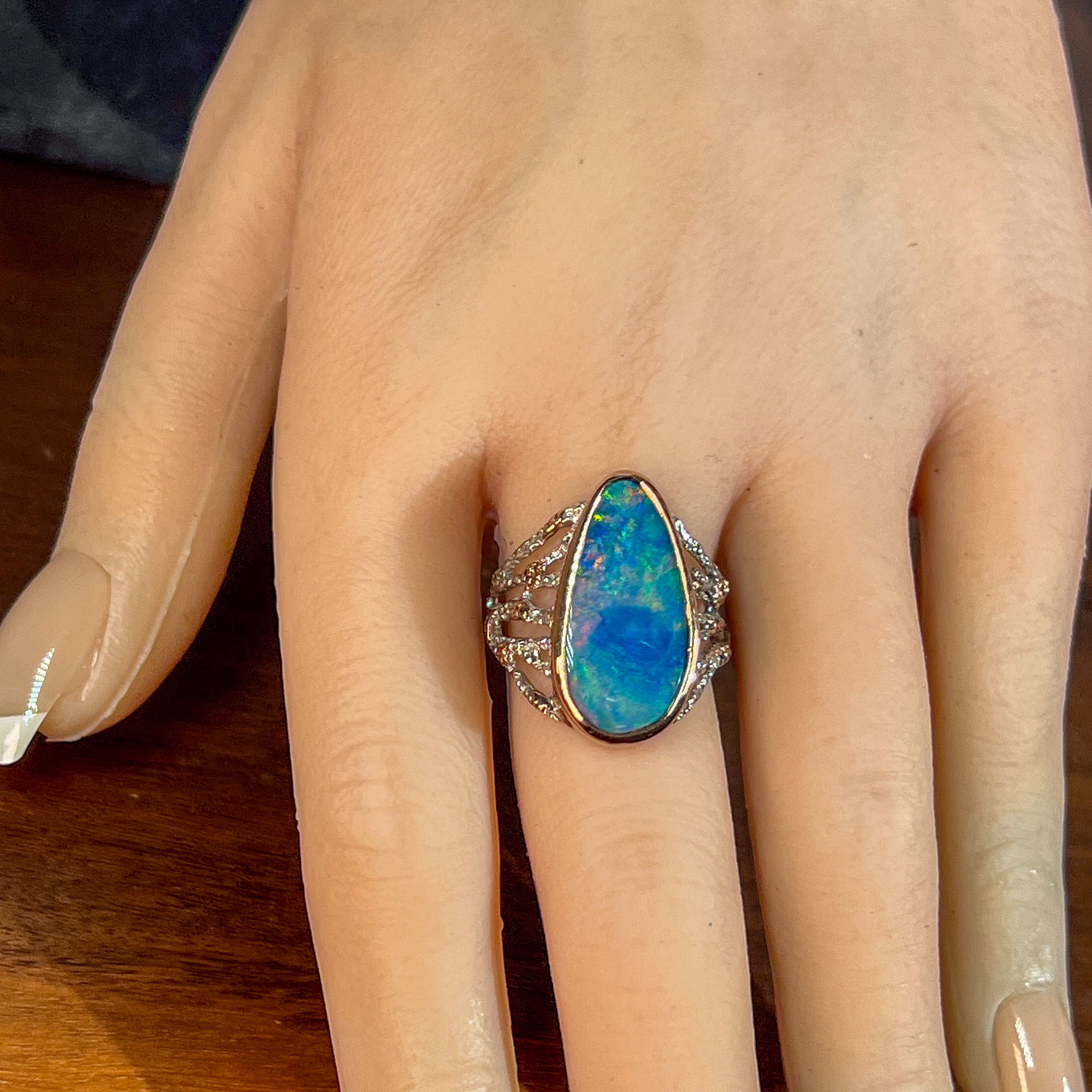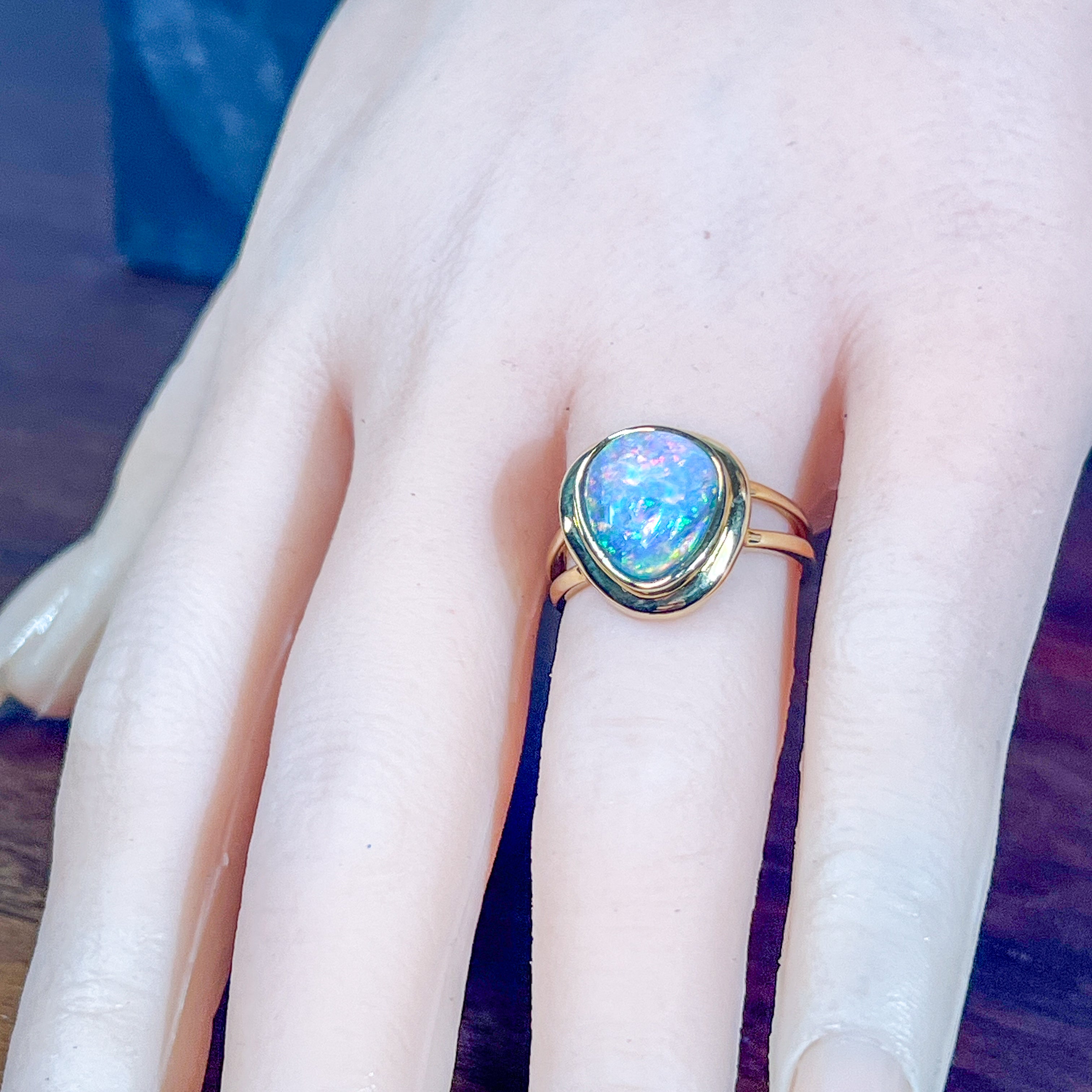Meanwhile, blue opal rings are the perfect accessories to complement orange, green or purple outfits. Blue opal rings are also perfect as a gift or a wedding ring. Take a look at our collection of blue opal rings in our shop.