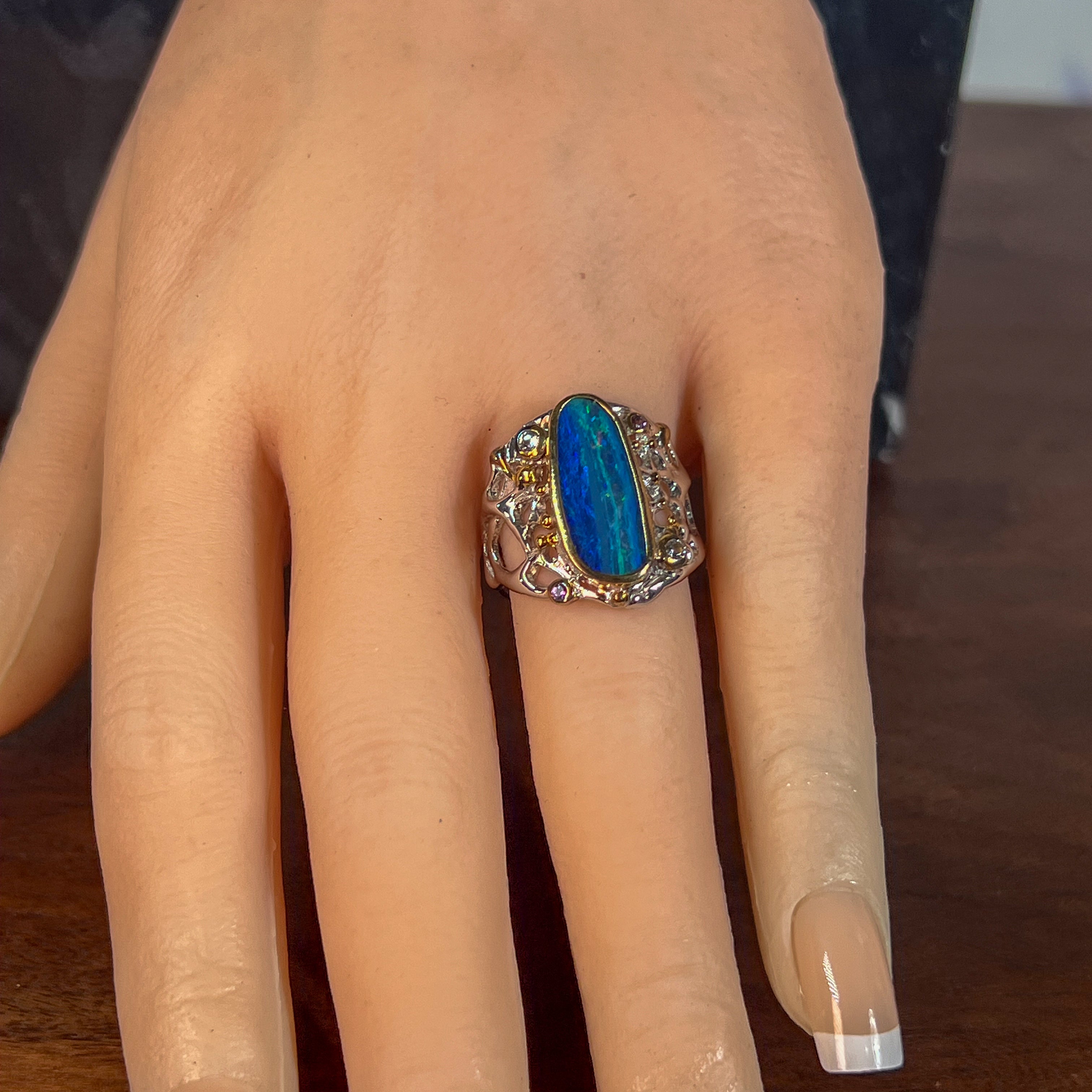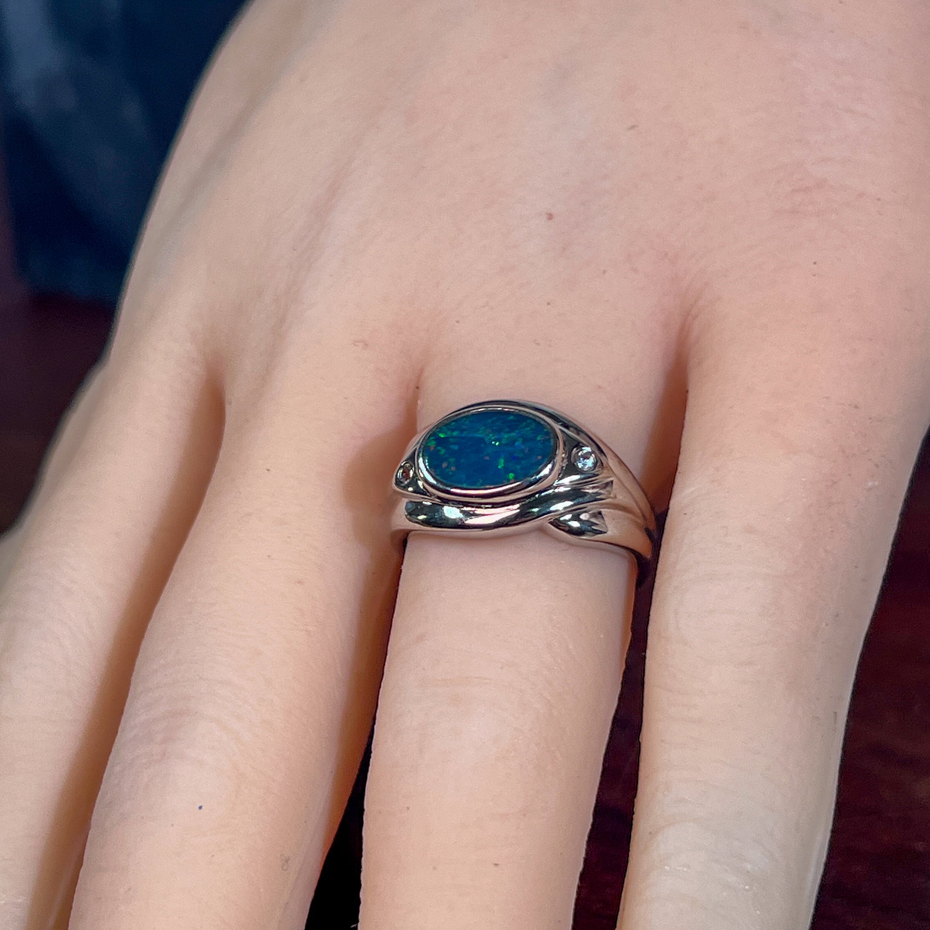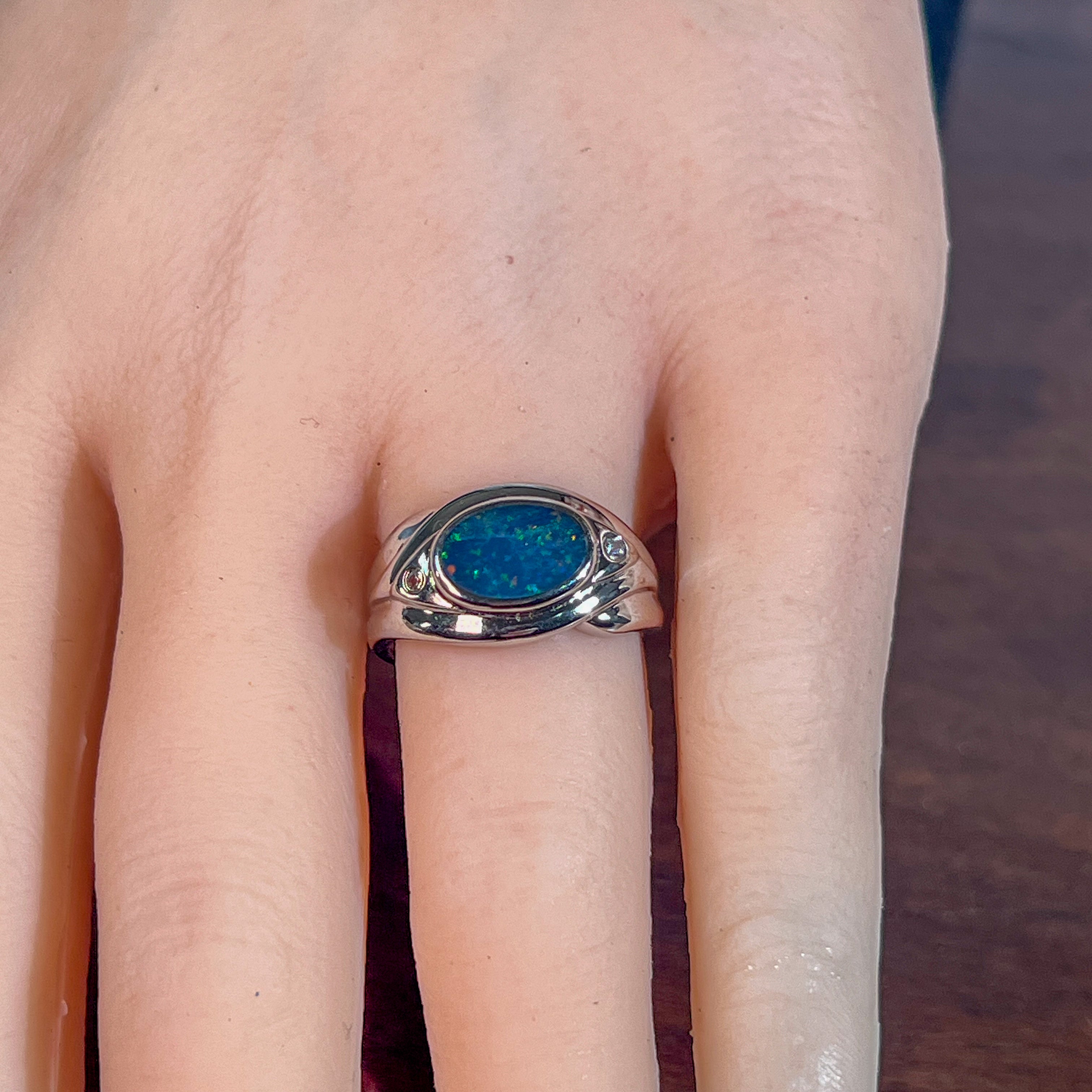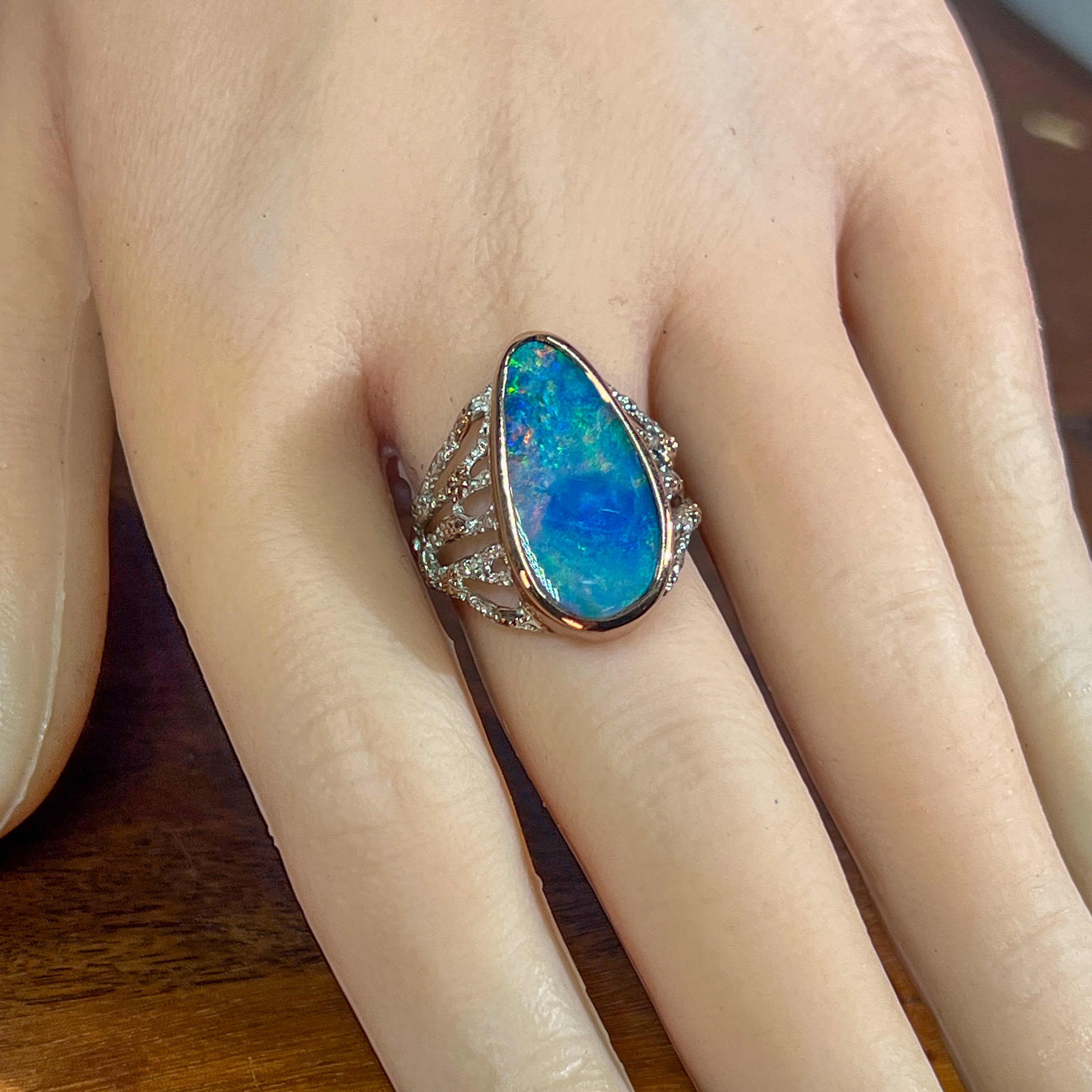 Meanwhile, blue opal rings are the perfect accessories to complement orange, green or purple outfits. Blue opal rings are also perfect as a gift or a wedding ring. Take a look at our collection of blue opal rings in our shop.