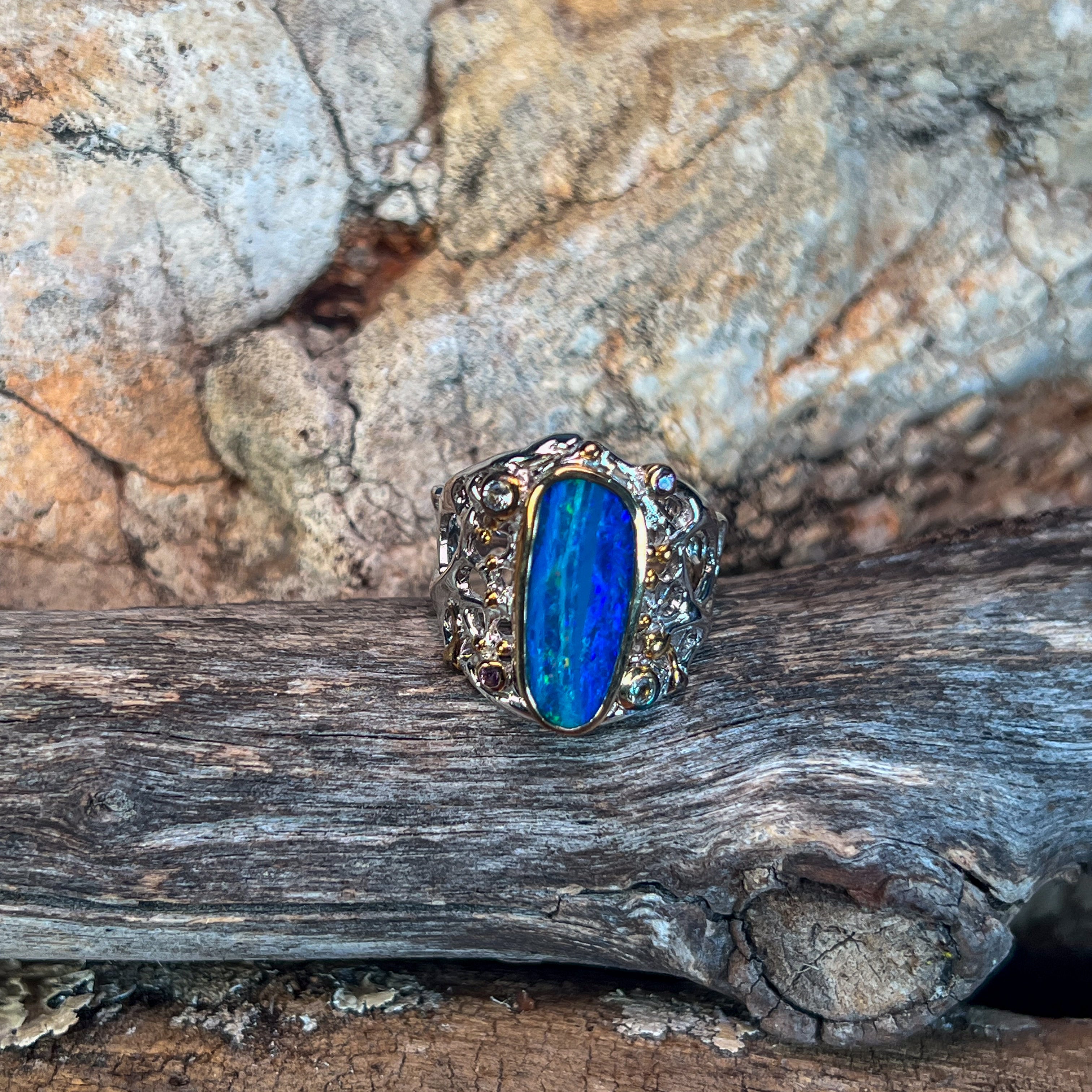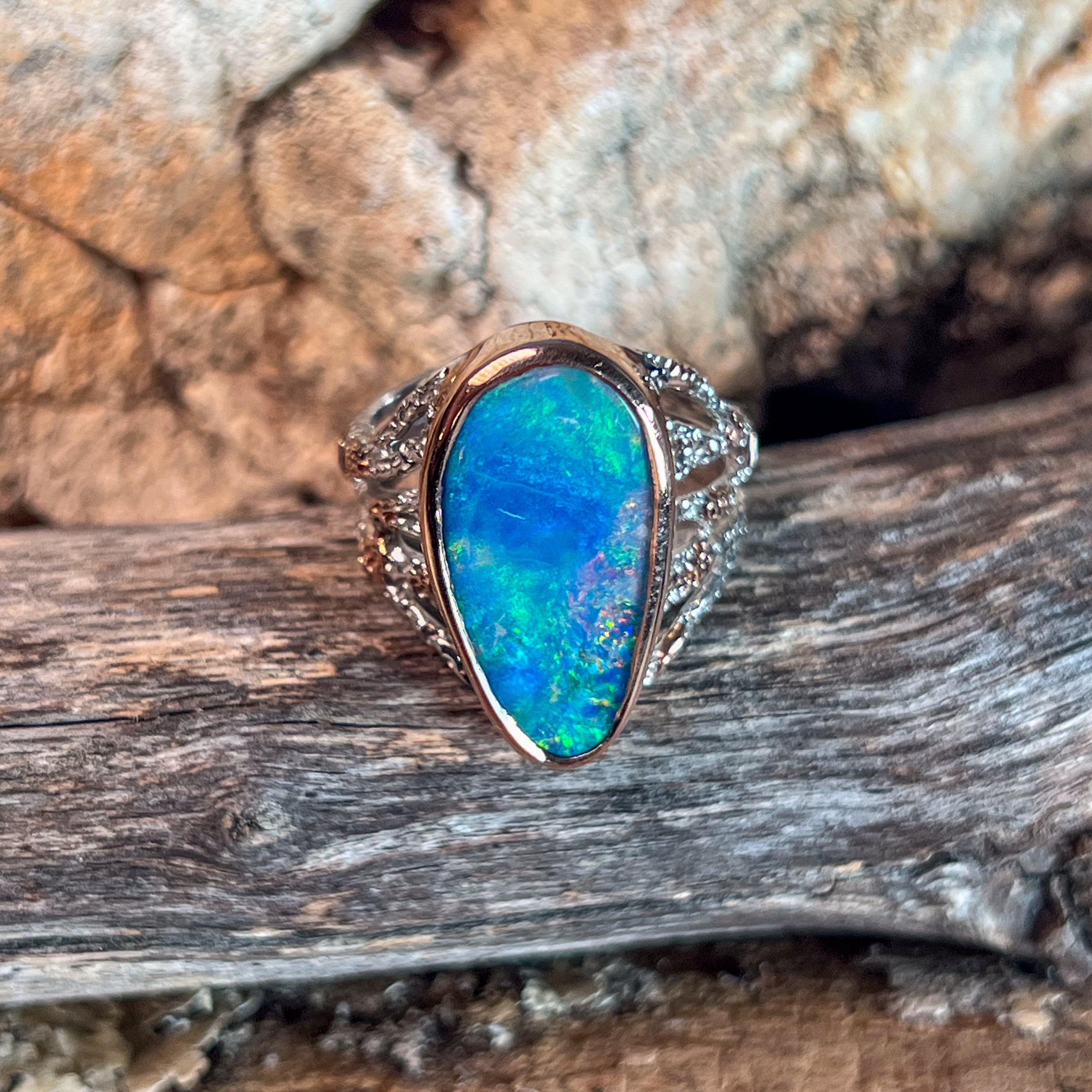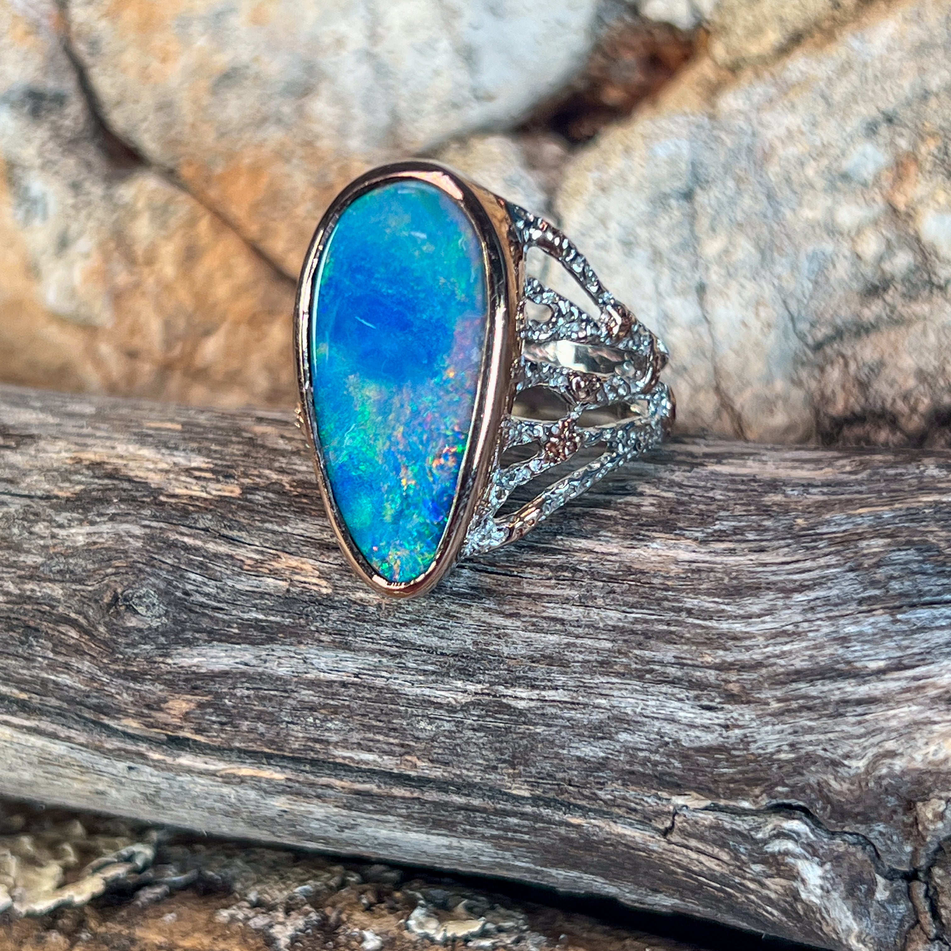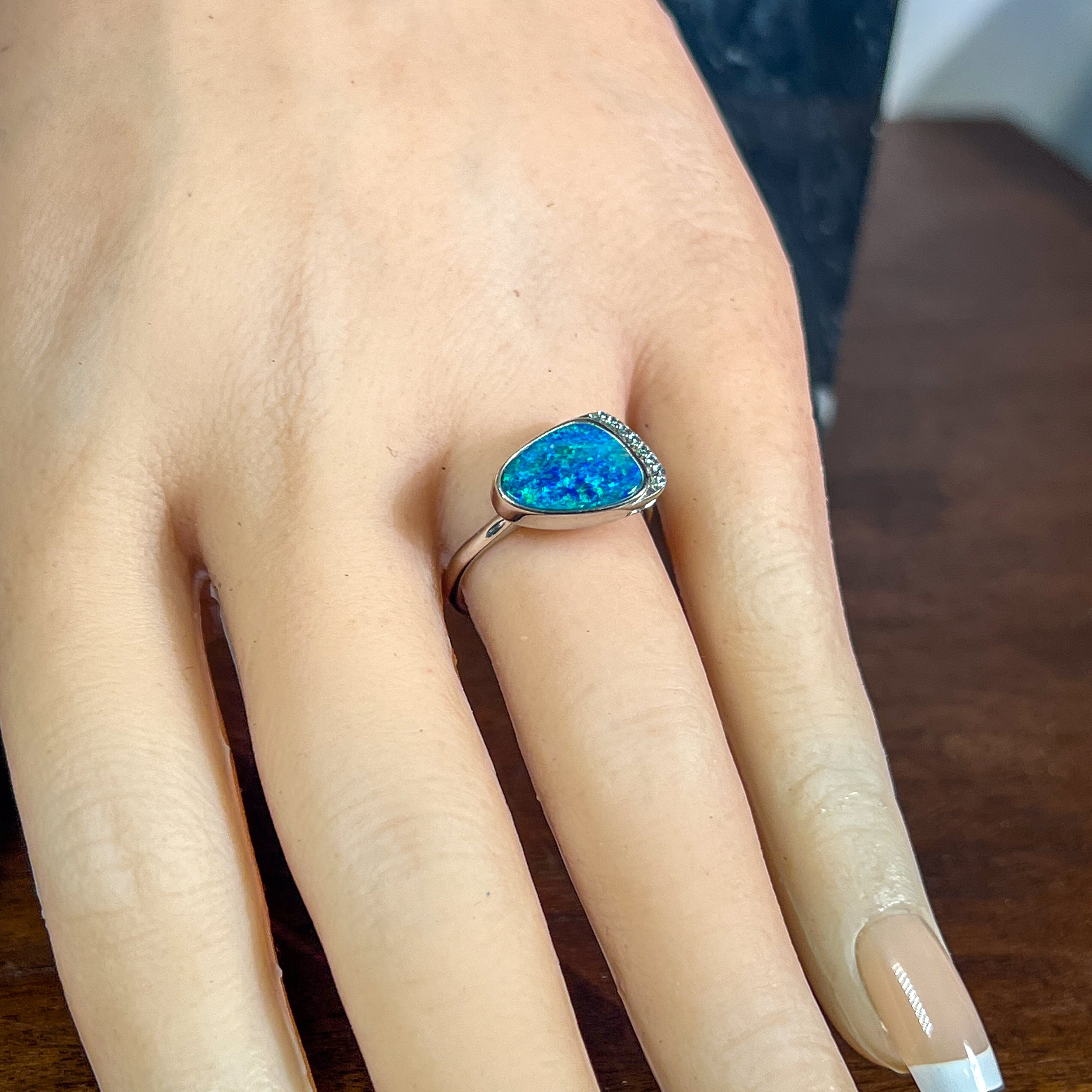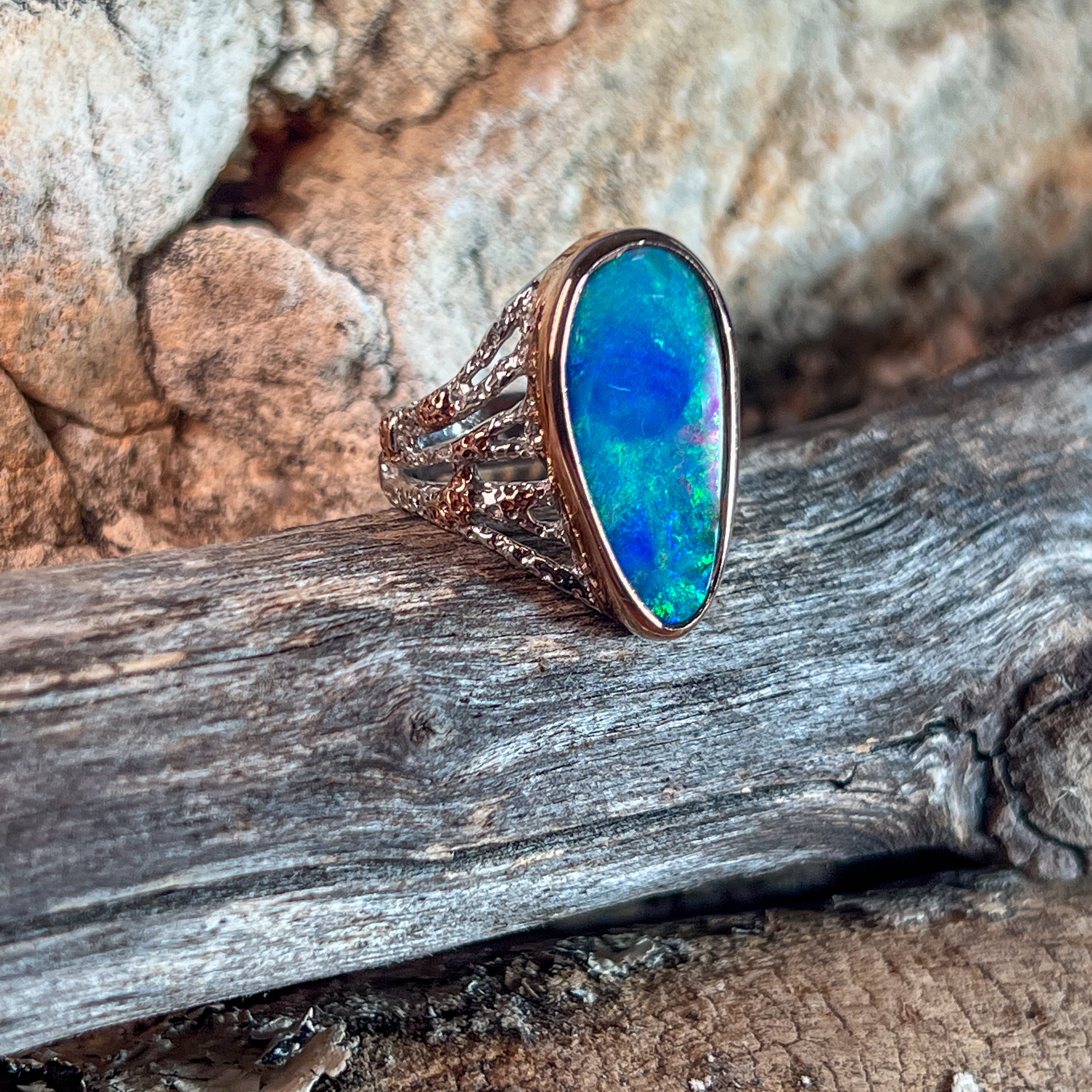 Meanwhile, blue opal rings are the perfect accessories to complement orange, green or purple outfits. Blue opal rings are also perfect as a gift or a wedding ring. Take a look at our collection of blue opal rings in our shop.