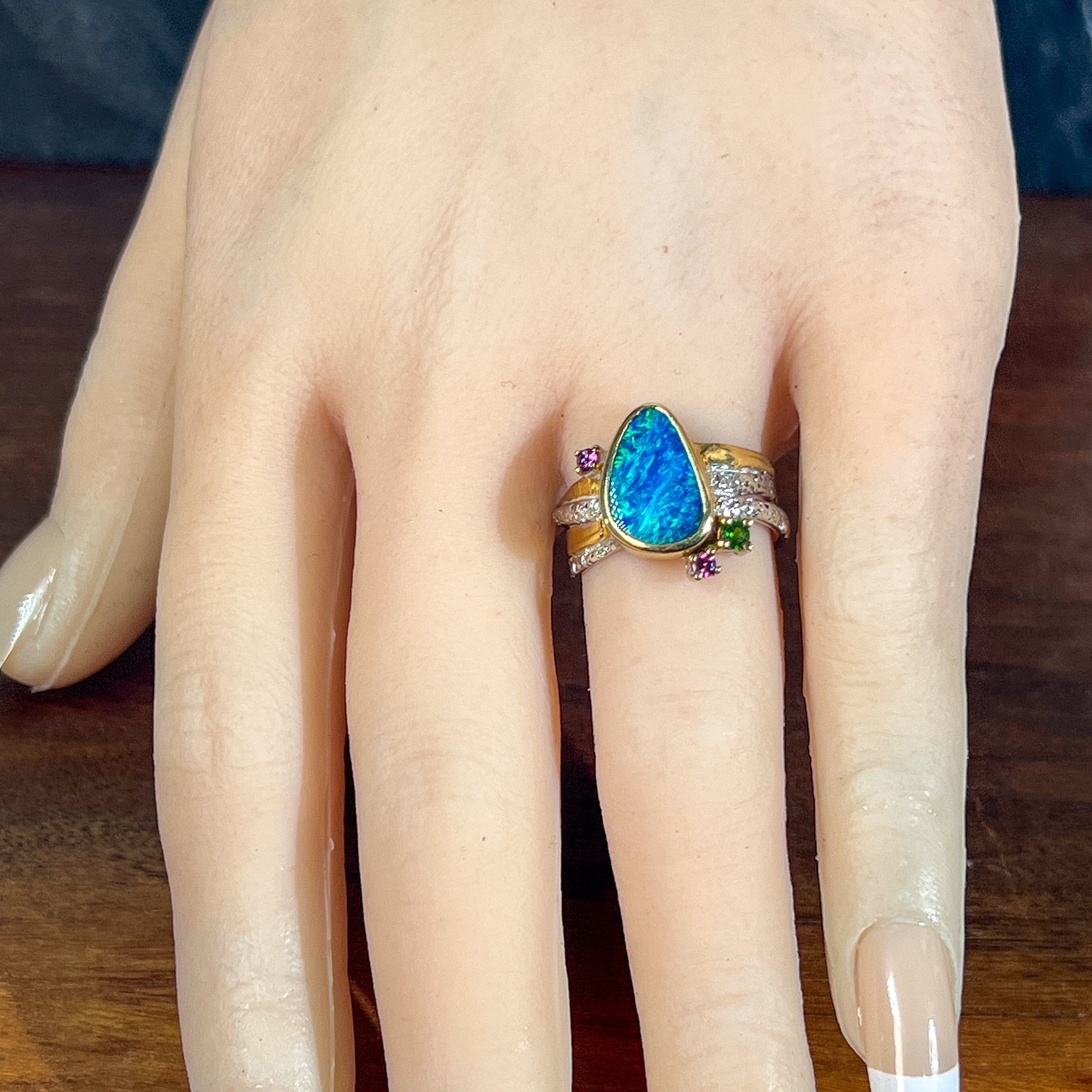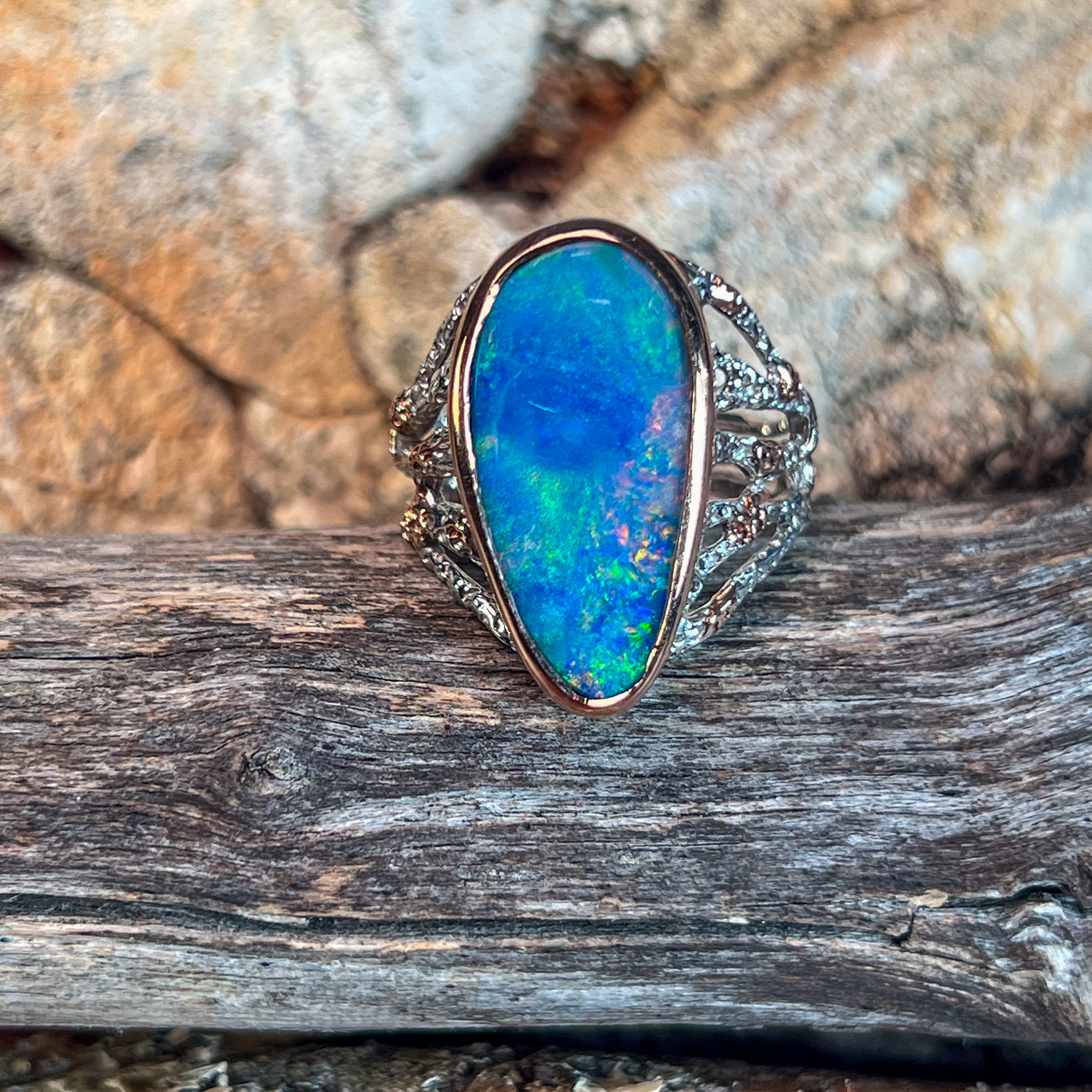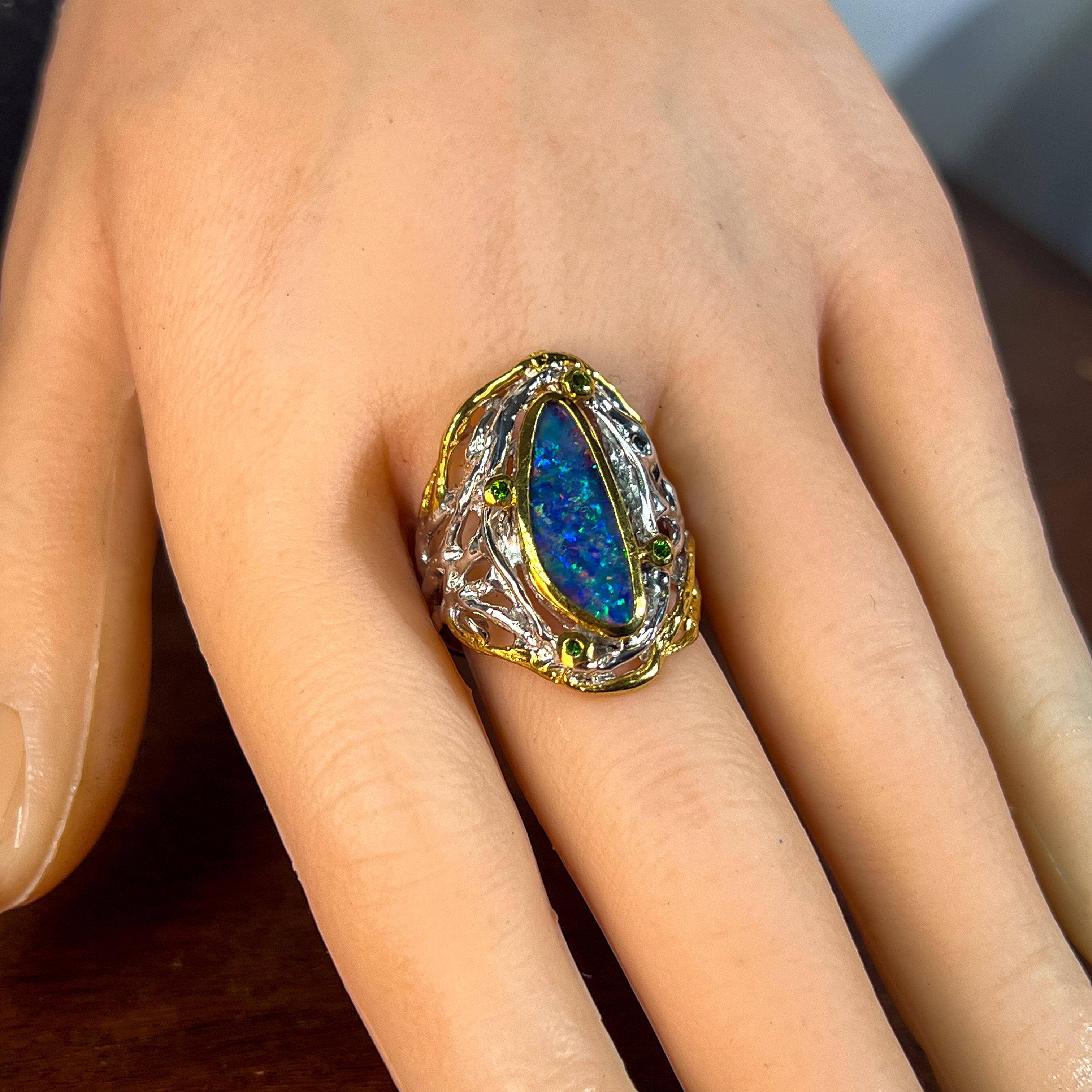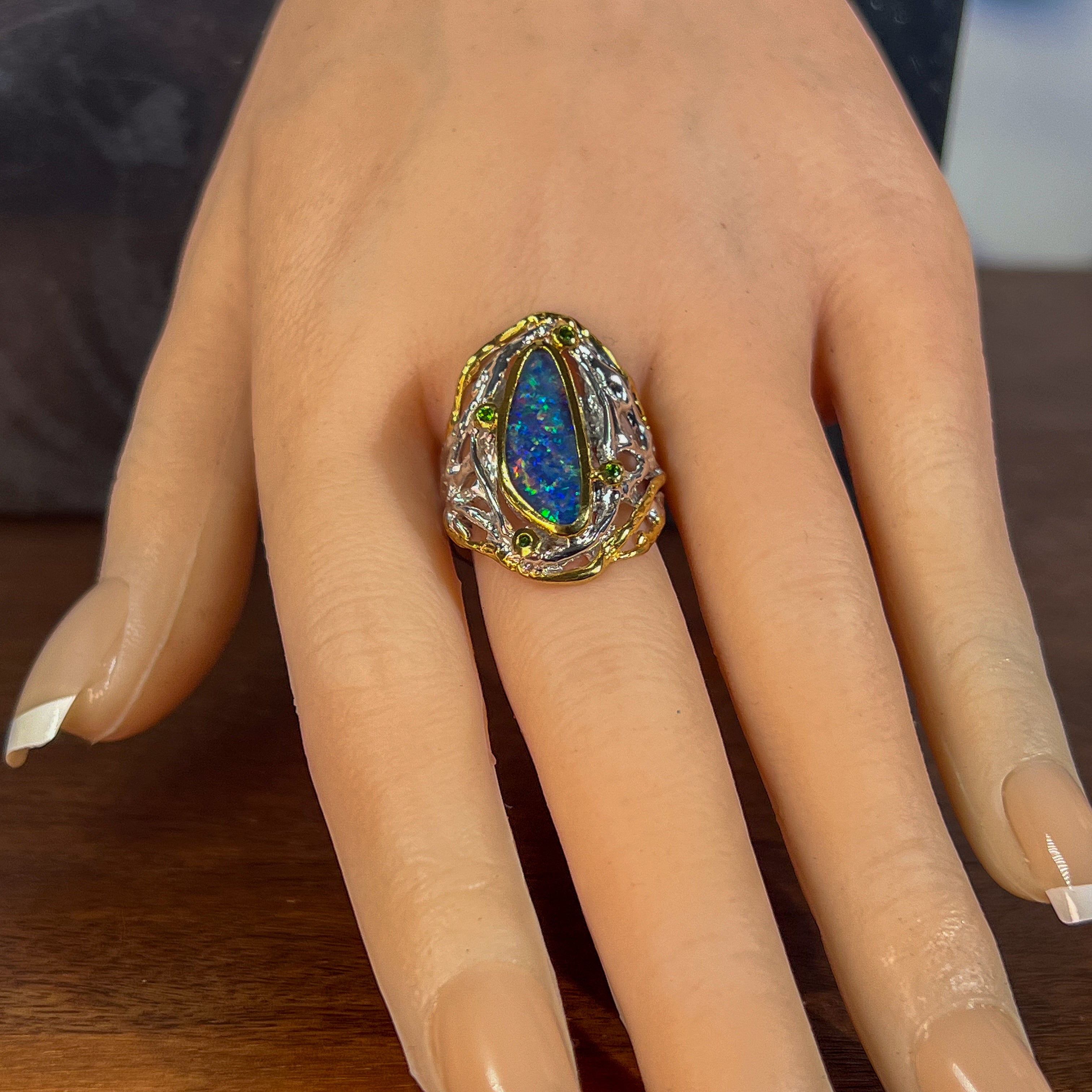 Meanwhile, blue opal rings are the perfect accessories to complement orange, green or purple outfits. Blue opal rings are also perfect as a gift or a wedding ring. Take a look at our collection of blue opal rings in our shop.