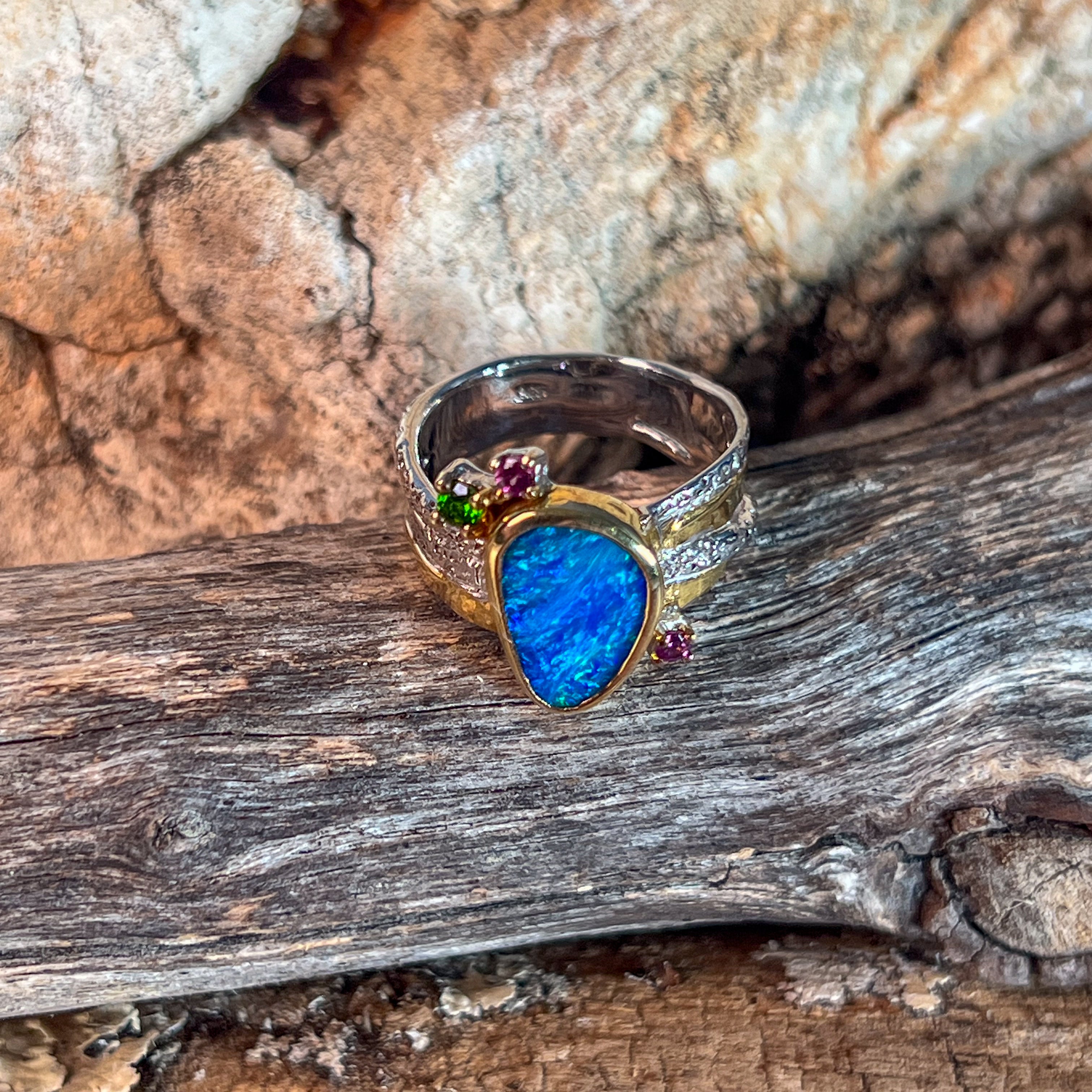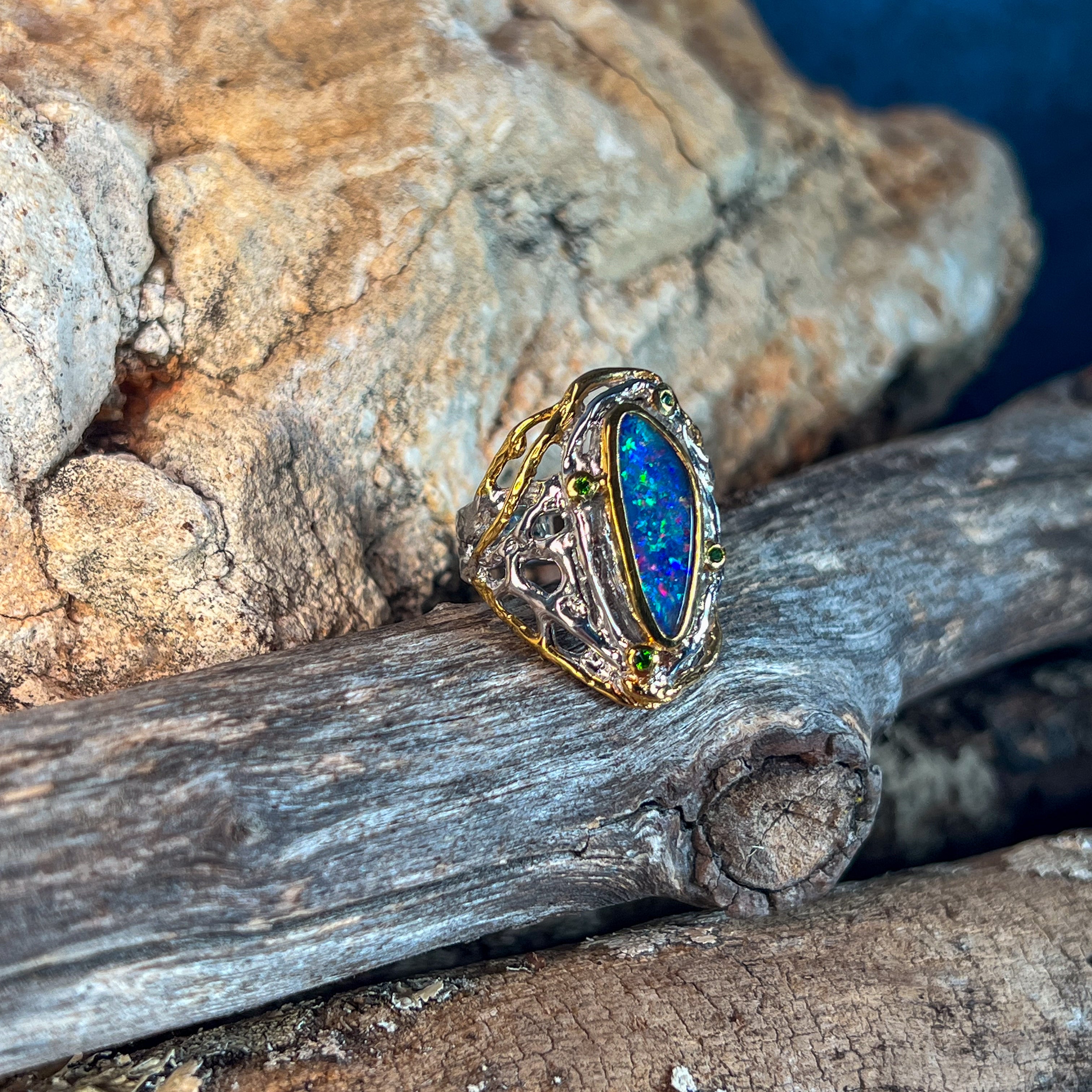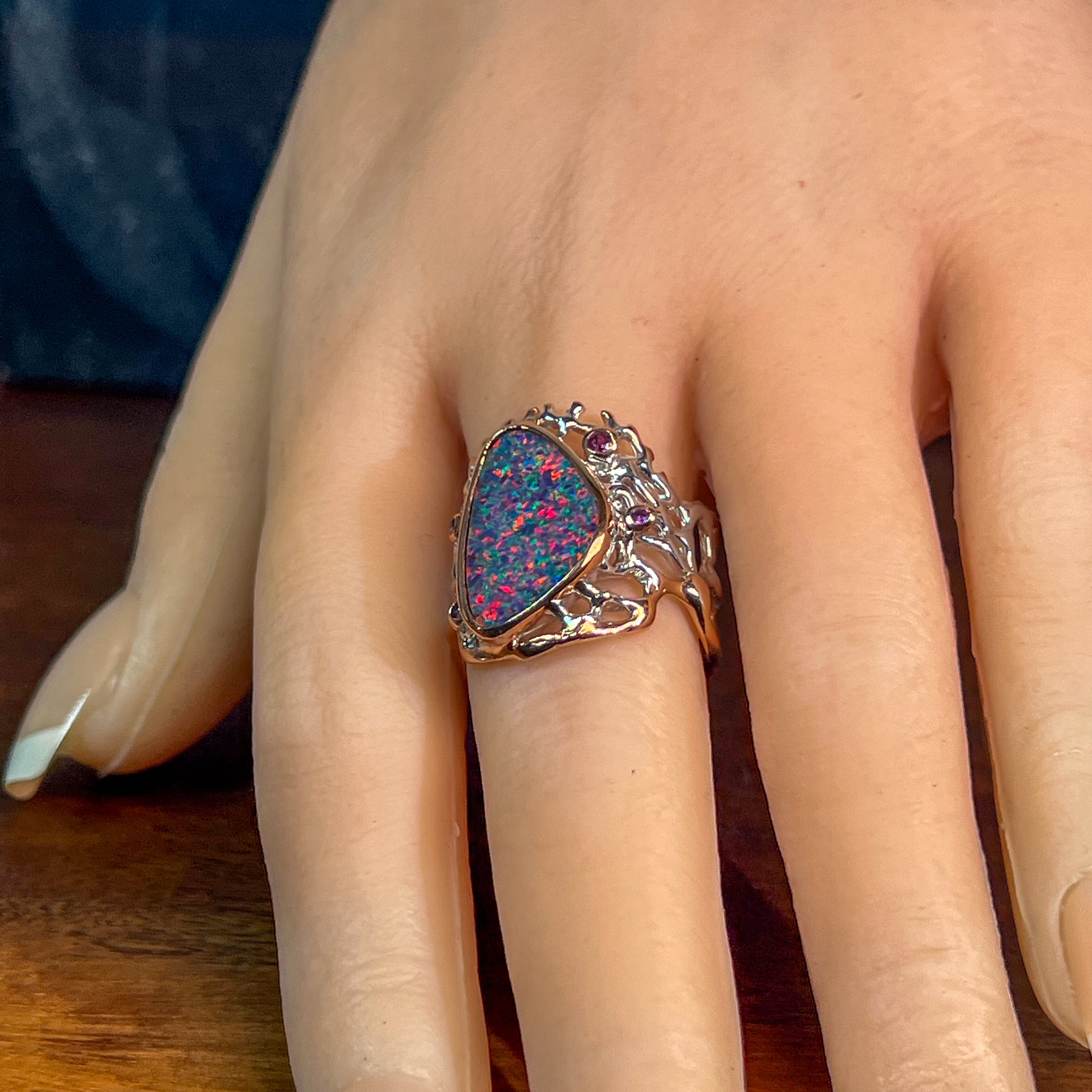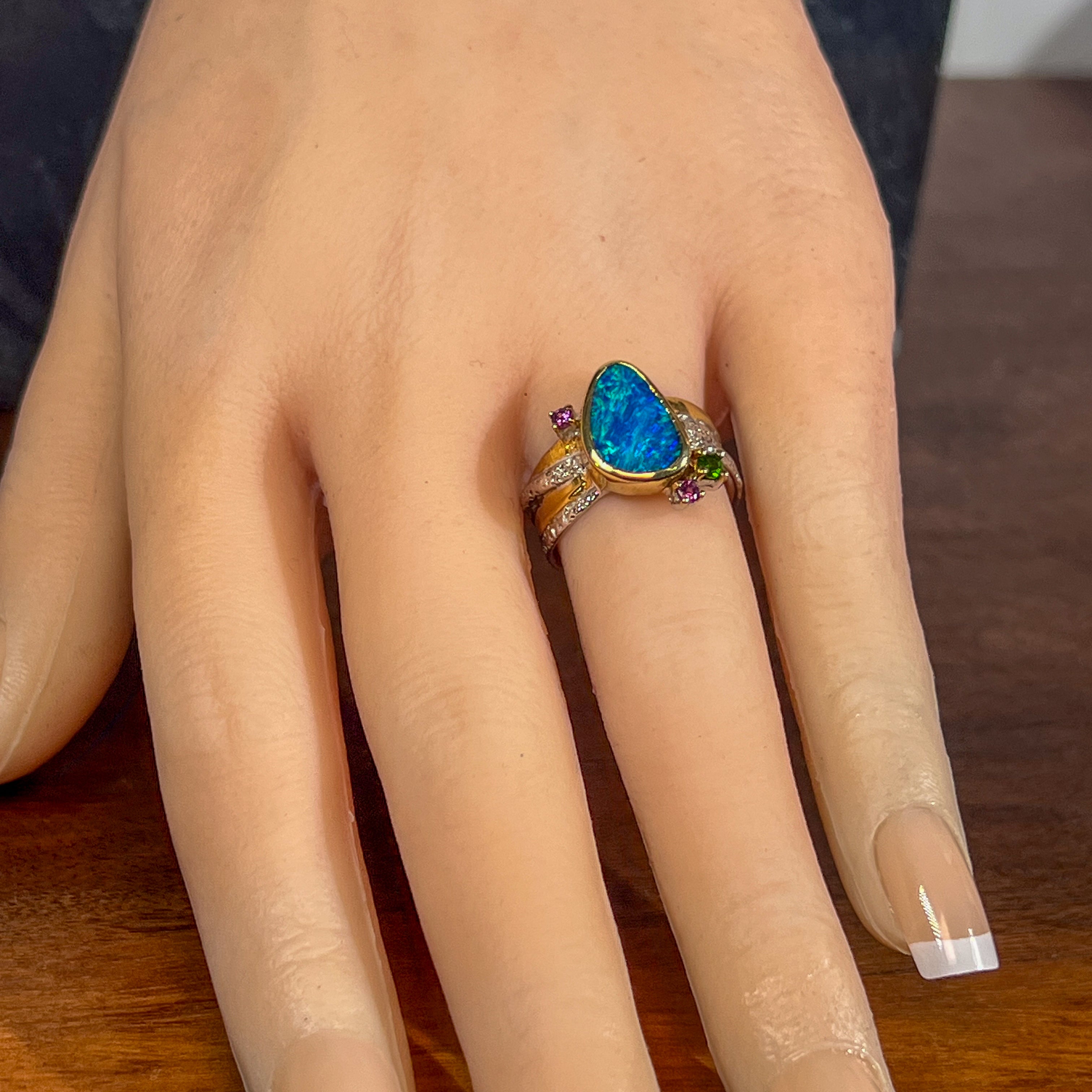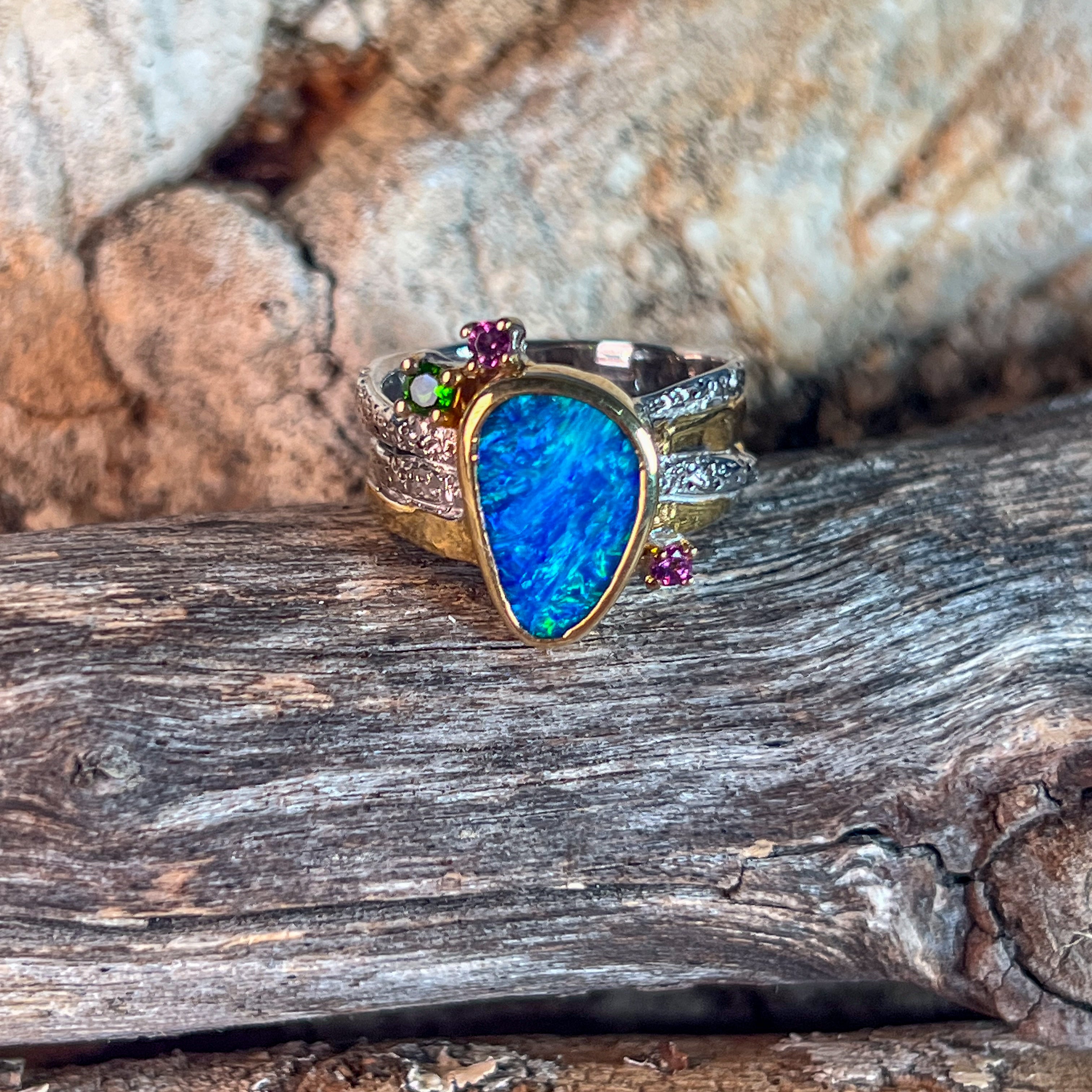 Meanwhile, blue opal rings are the perfect accessories to complement orange, green or purple outfits. Blue opal rings are also perfect as a gift or a wedding ring. Take a look at our collection of blue opal rings in our shop.