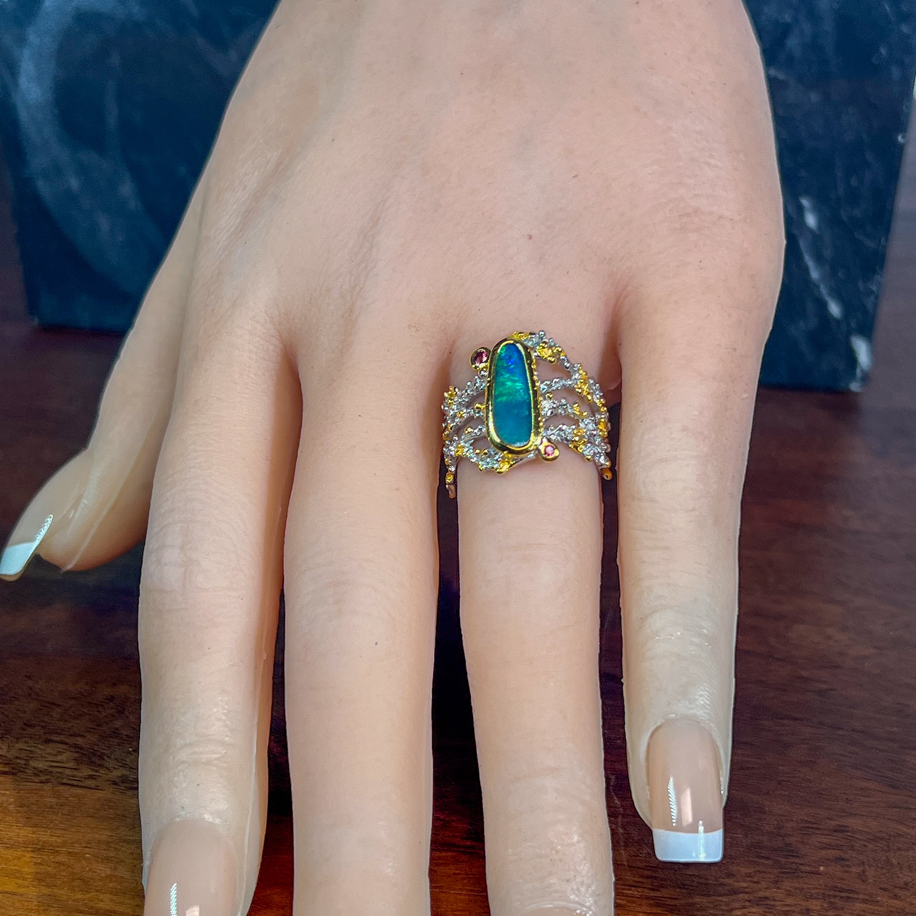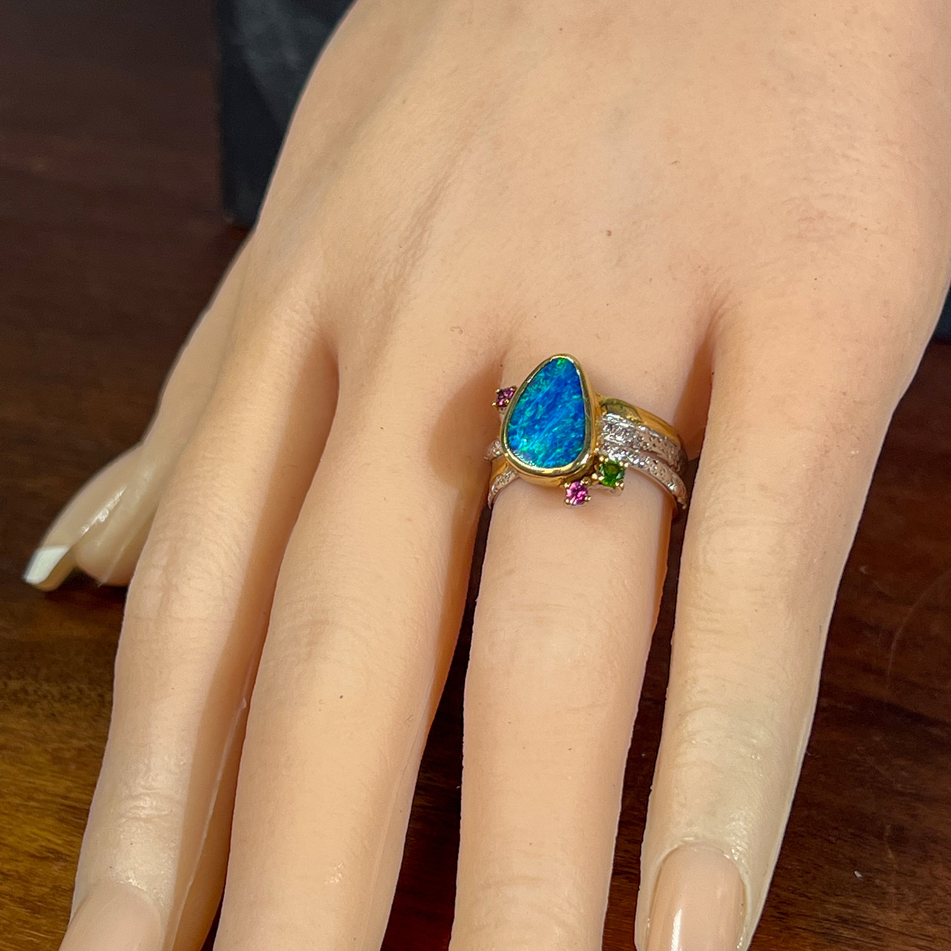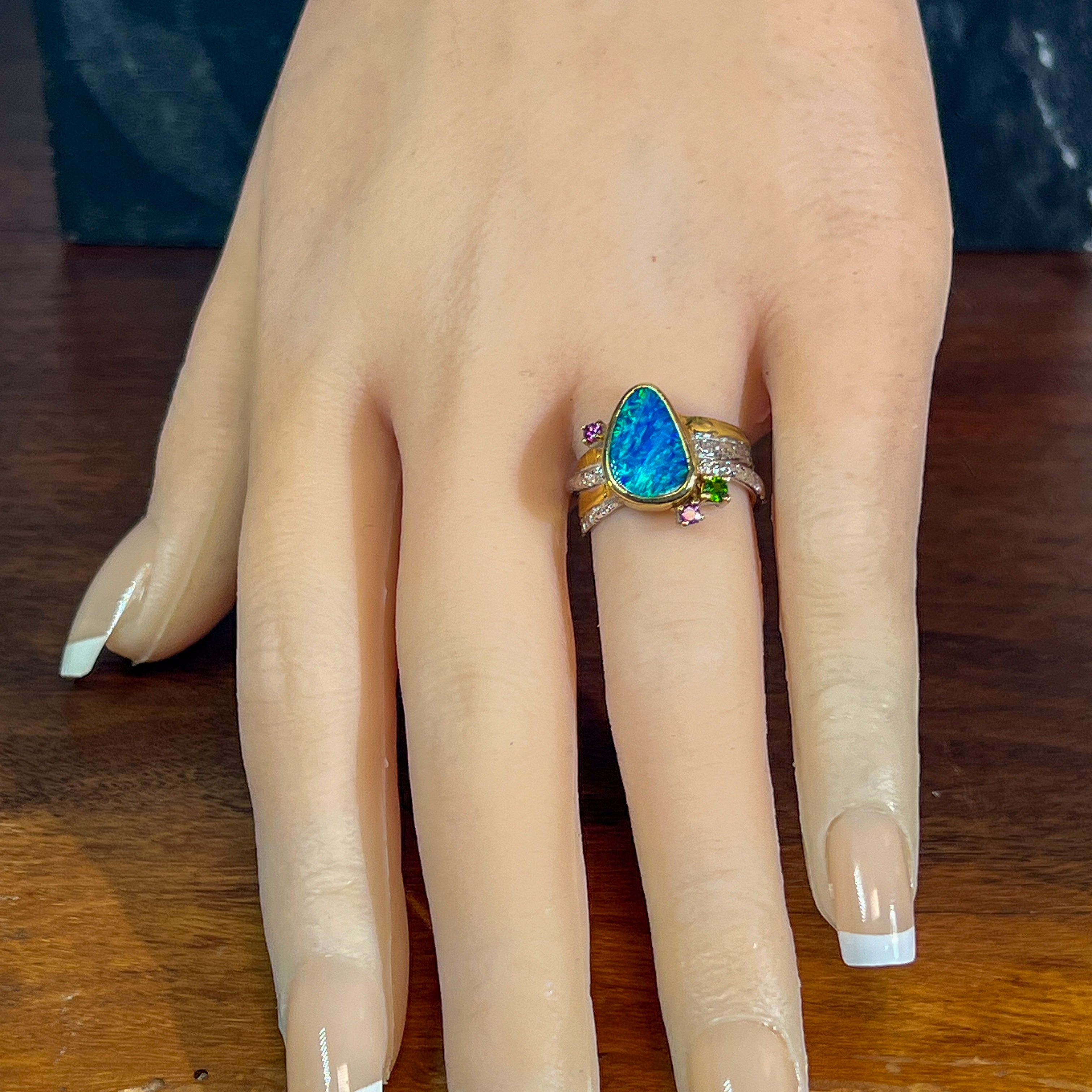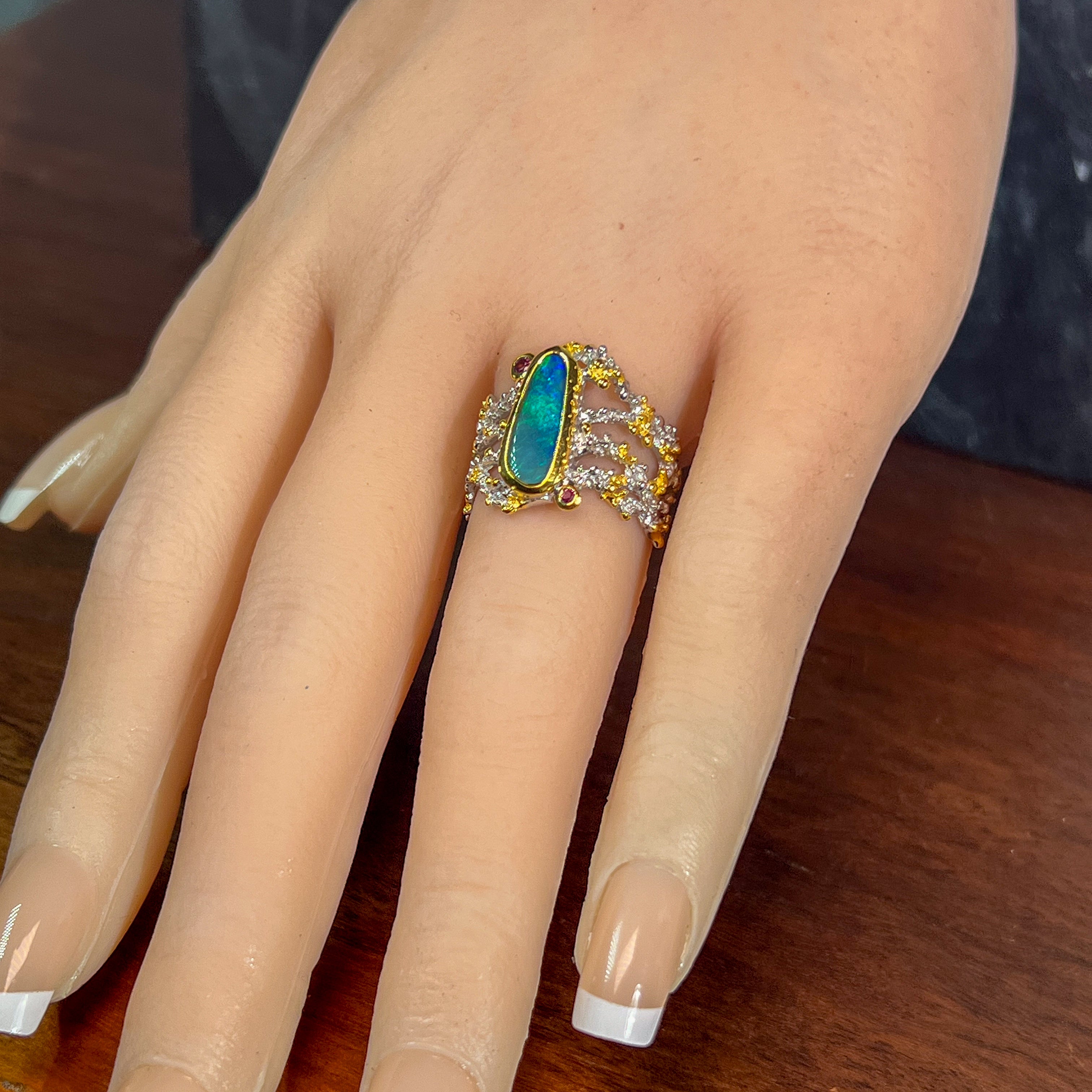 Meanwhile, blue opal rings are the perfect accessories to complement orange, green or purple outfits. Blue opal rings are also perfect as a gift or a wedding ring. Take a look at our collection of blue opal rings in our shop.