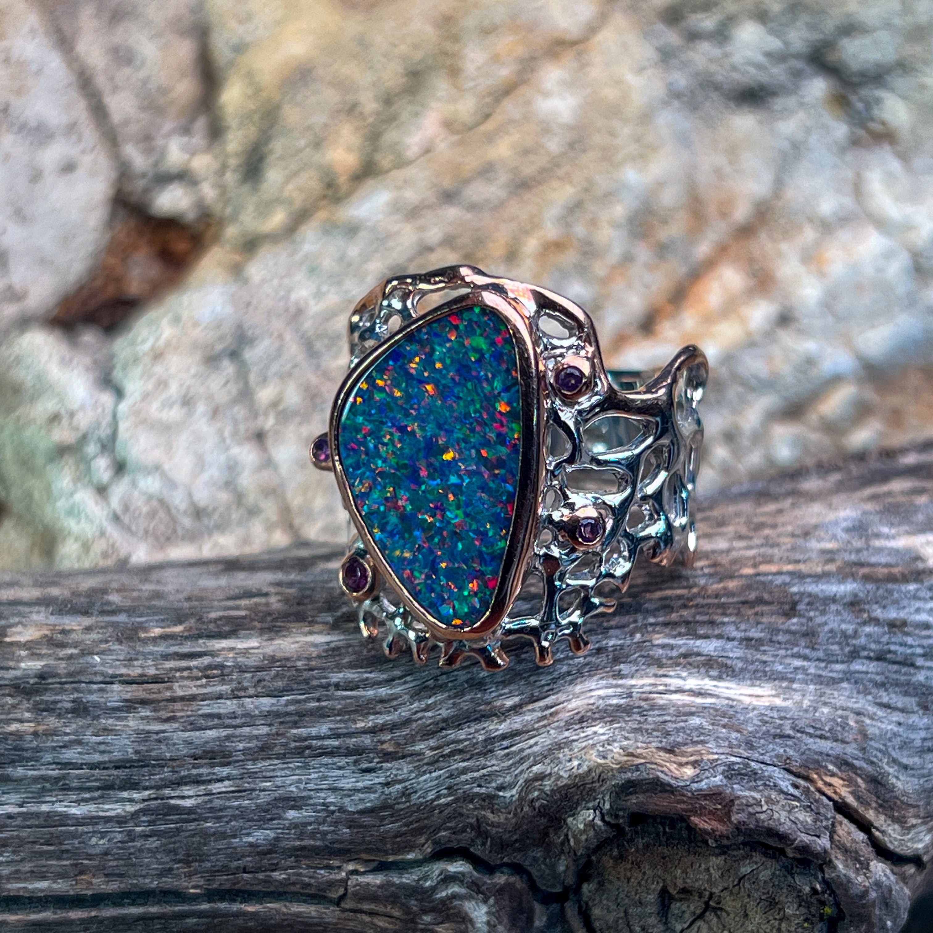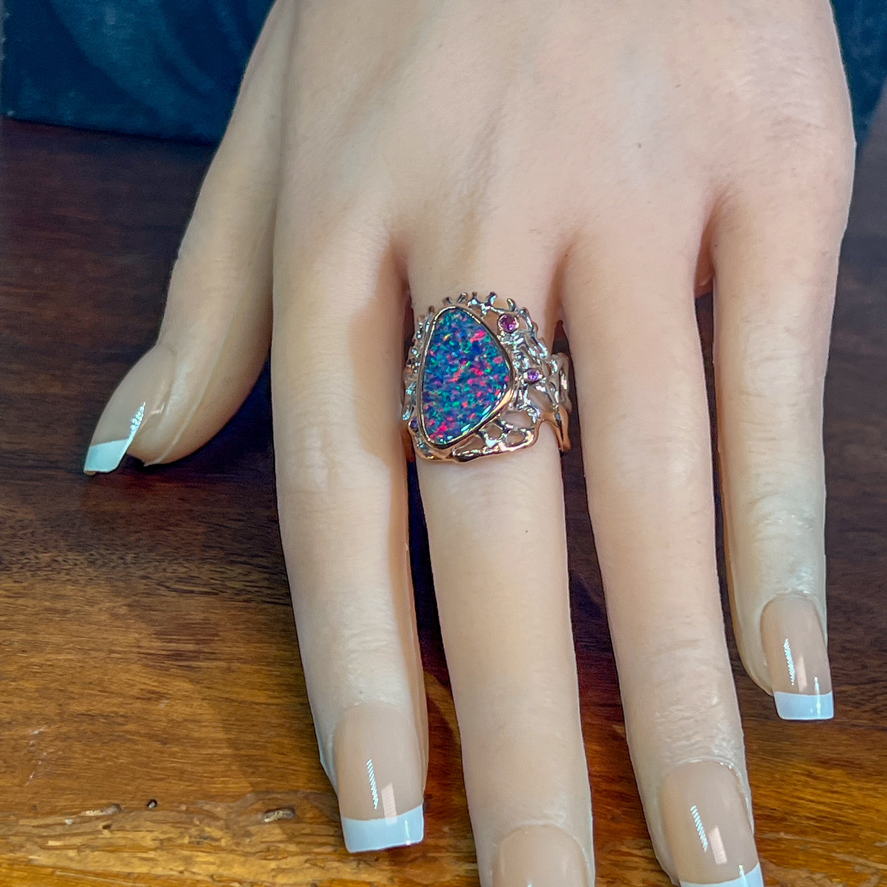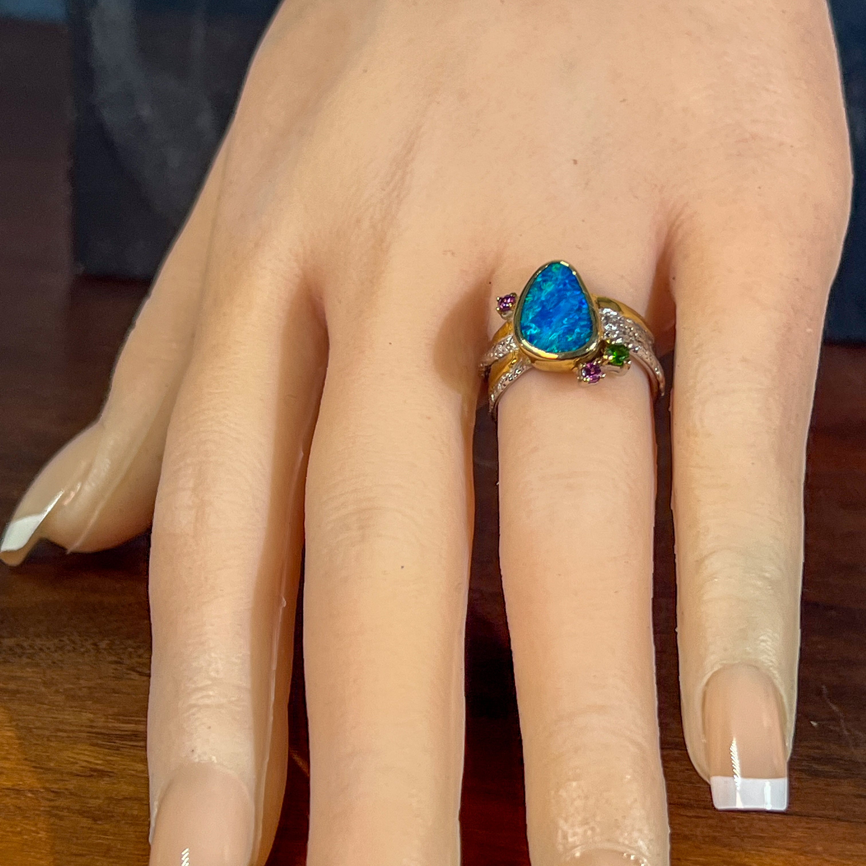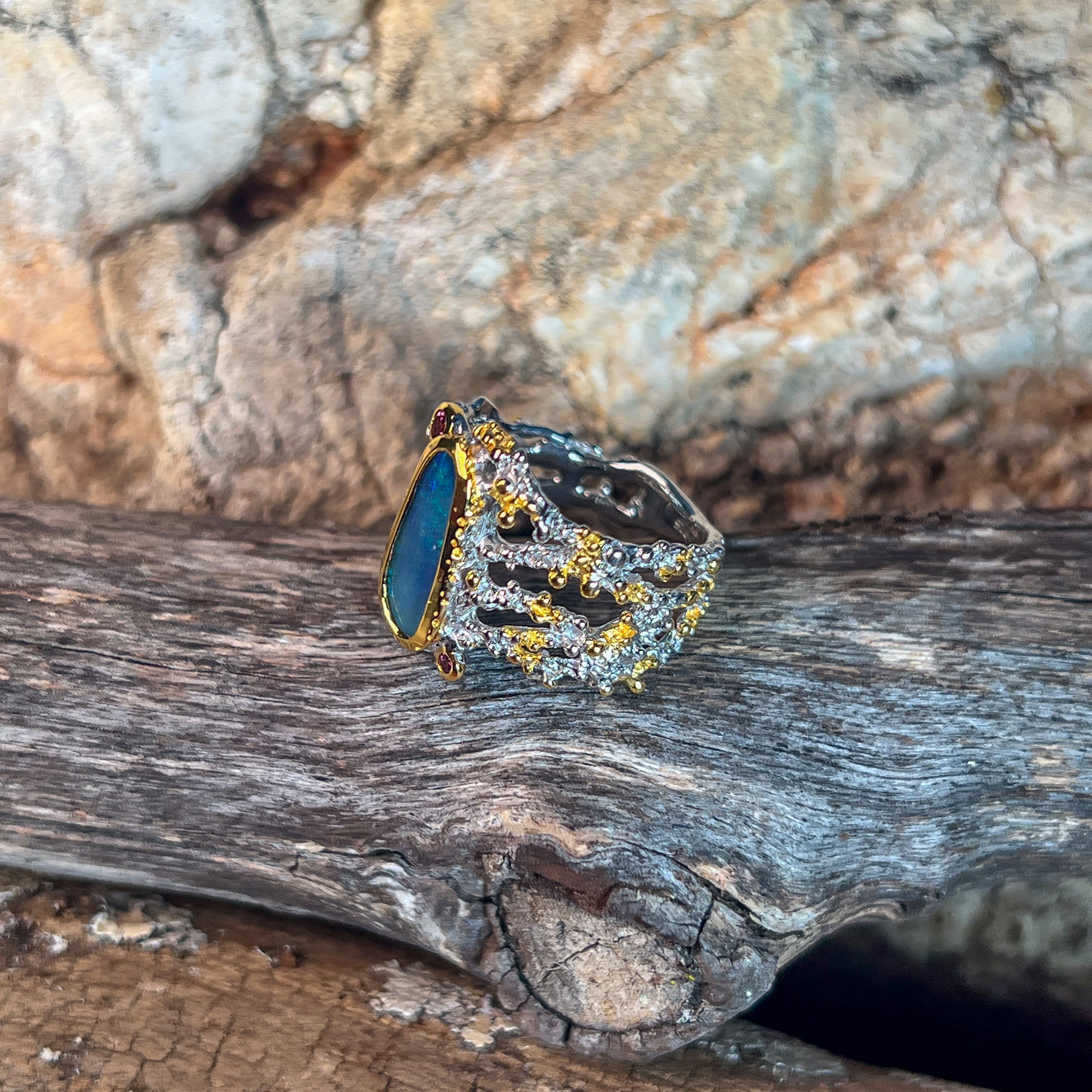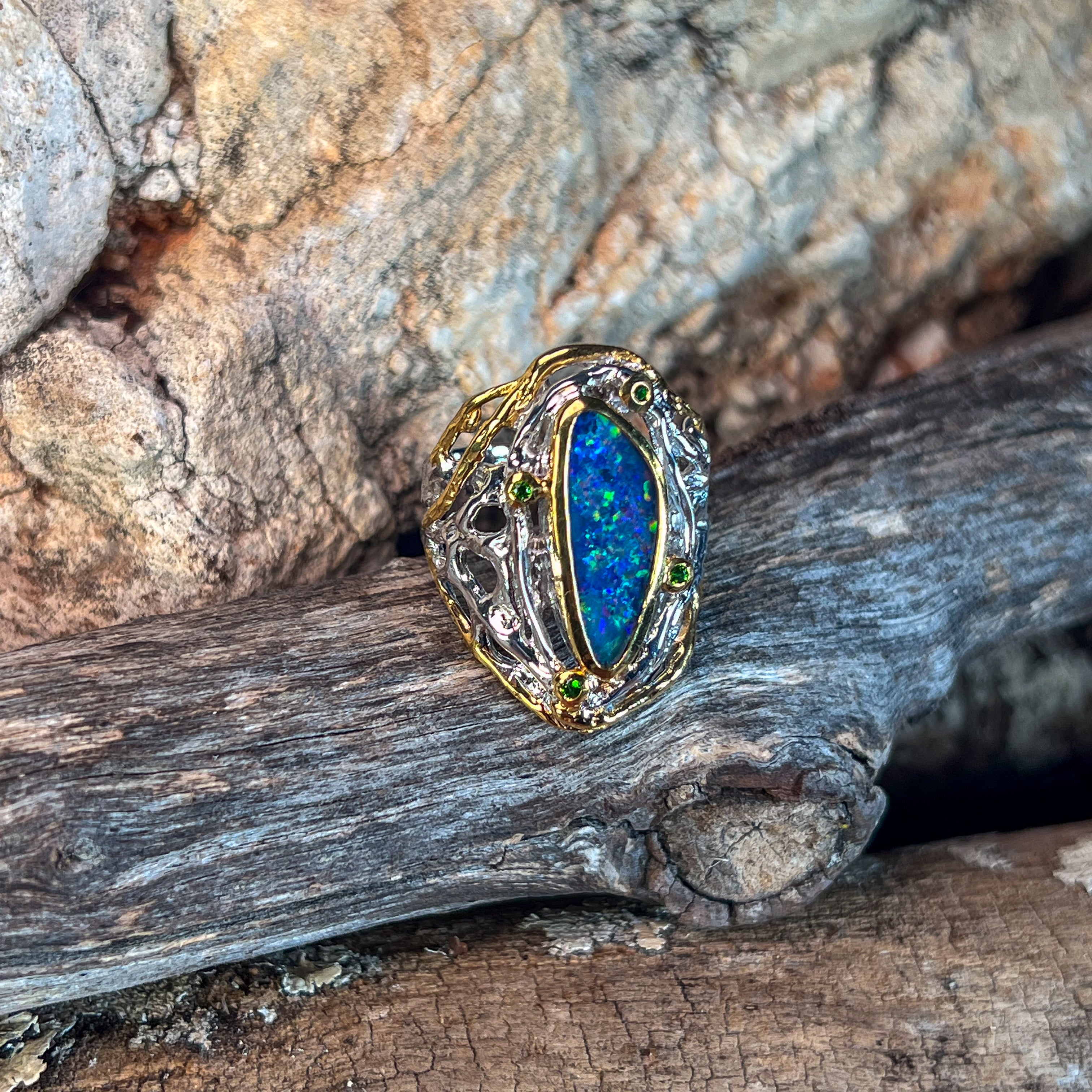 Meanwhile, blue opal rings are the perfect accessories to complement orange, green or purple outfits. Blue opal rings are also perfect as a gift or a wedding ring. Take a look at our collection of blue opal rings in our shop.