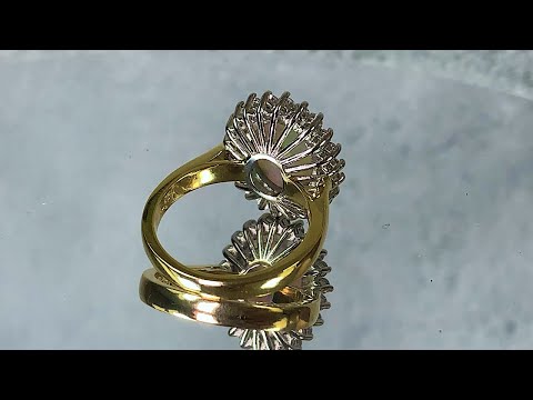 Elevate your style with our Platinum and 18kt Yellow Gold classic cluster ring adorned with mesmerizing Black Opal and sparkling Diamonds. The classic cluster setting adds an elegant touch to any outfit, making it a must-have for any jewelry lover. Embrace the luxurious combination of precious metals and gems and make a statement wherever you go.