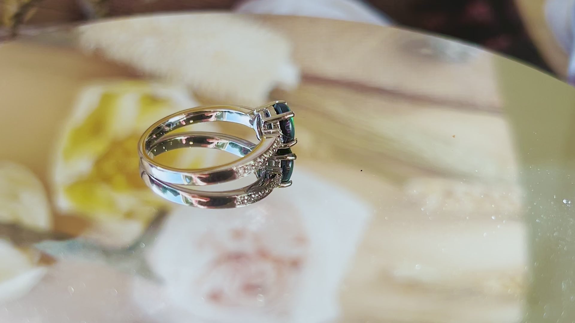 Make a shimmering statement with our Platinum Black Opal 0.67ct and Diamond Ring! Featuring a stunning black opal green flash opal, this ring is sure to make your heart swoon. Accented with dazzling diamonds, you'll be sure to turn heads with this dreamy piece. Shine on!