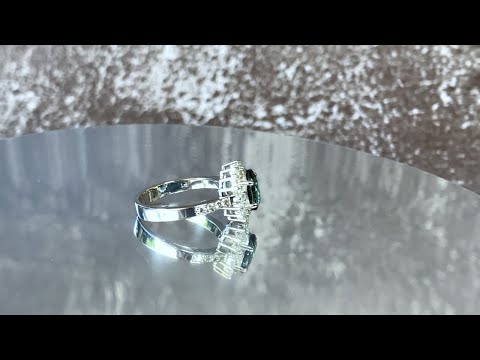 Platinum Teal sapphire 2.07ct and Diamond cluster ring