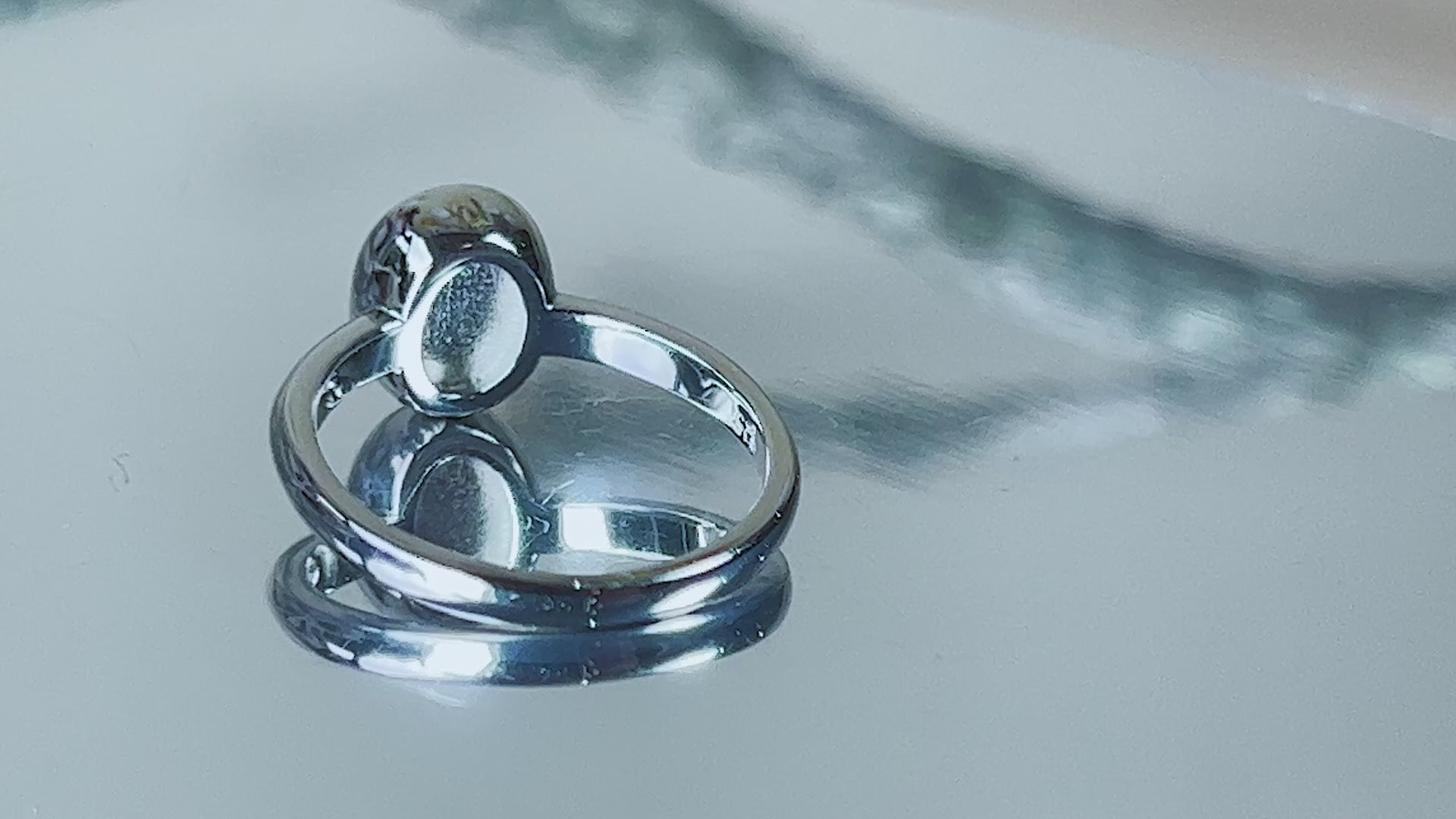 Bezel Solitaire Triplet Opal Ring - Sterling Silver - Dainty Women's Blue, Silver & Gold Opal Jewelry 9x7mm