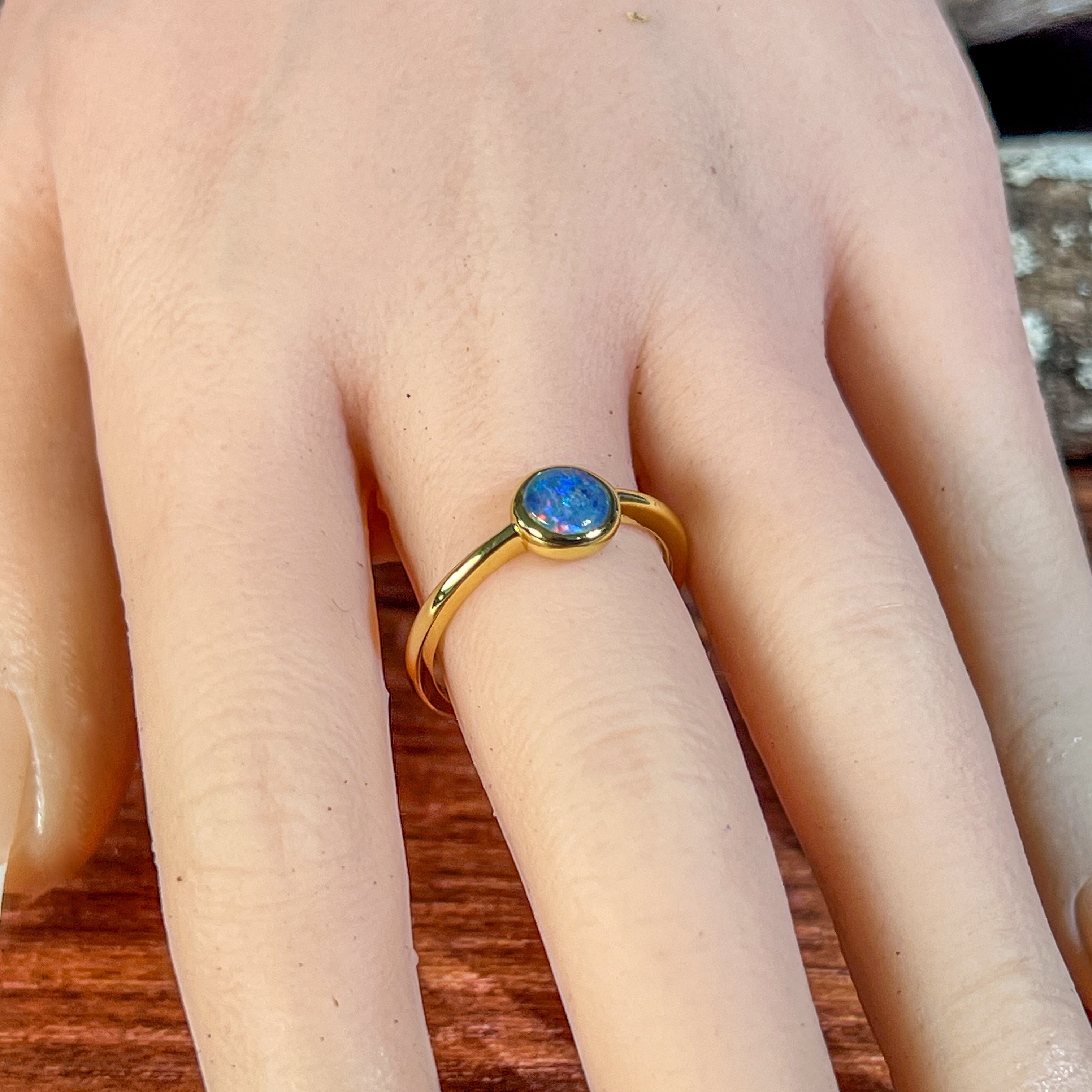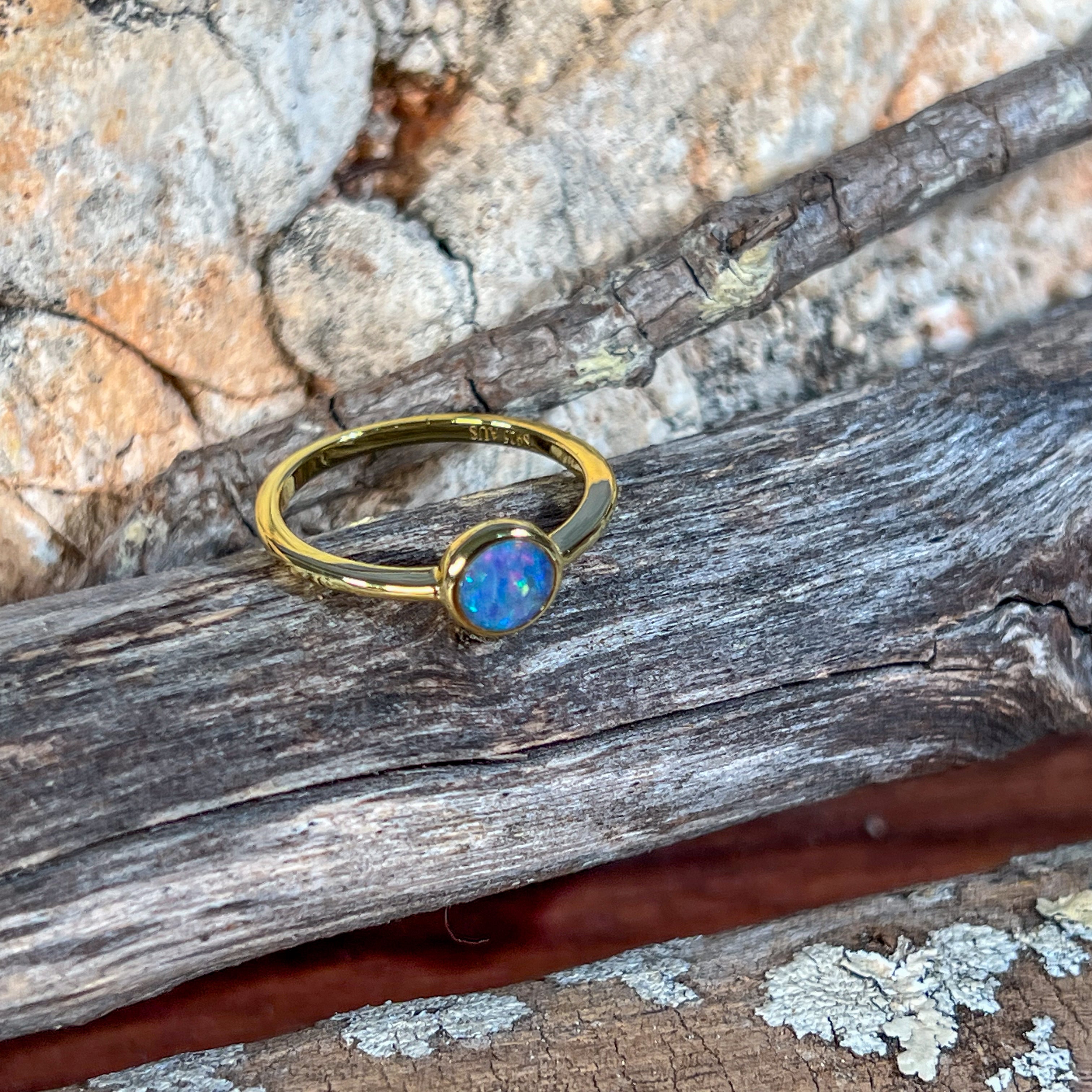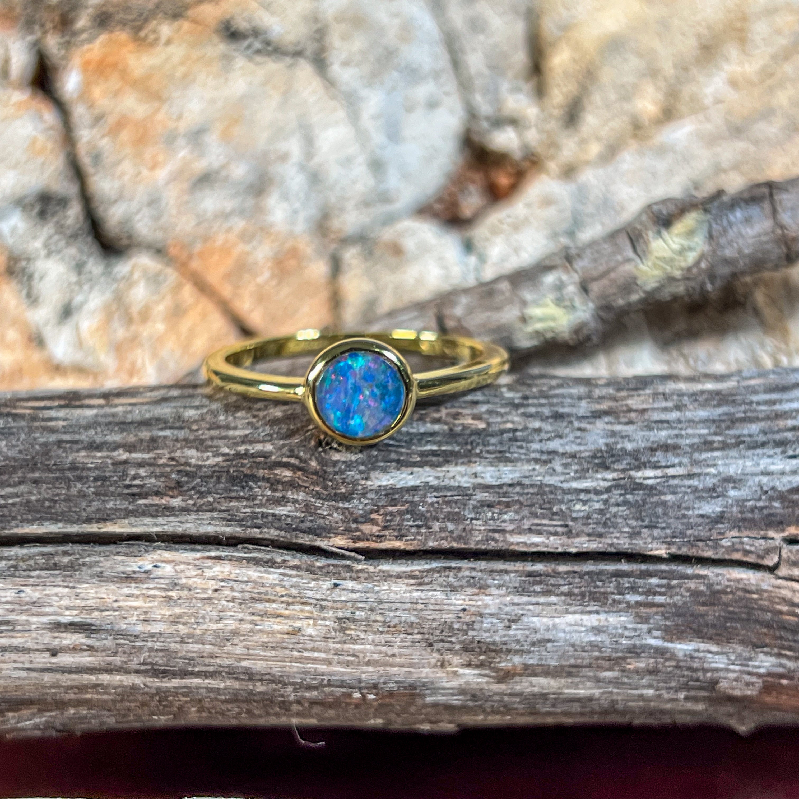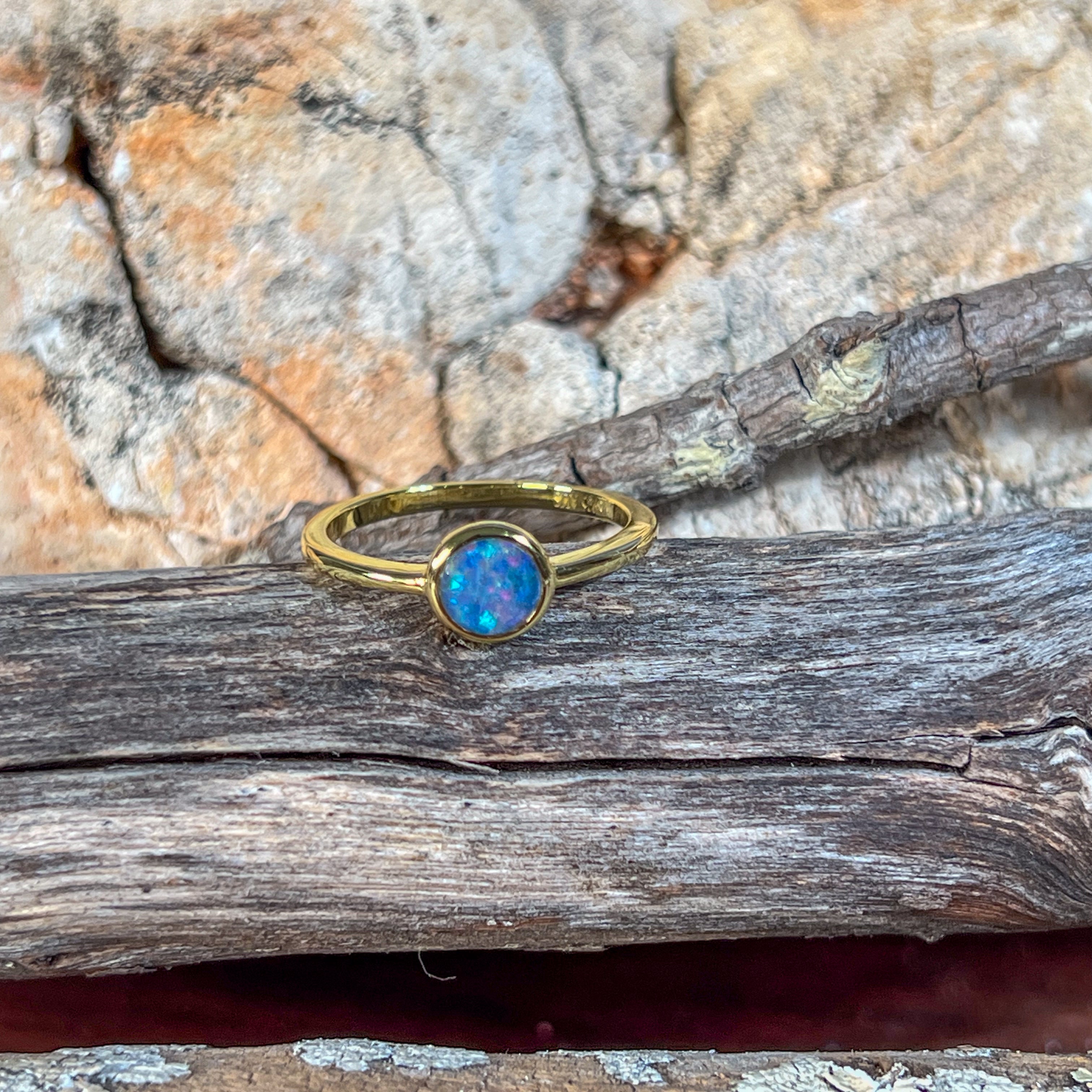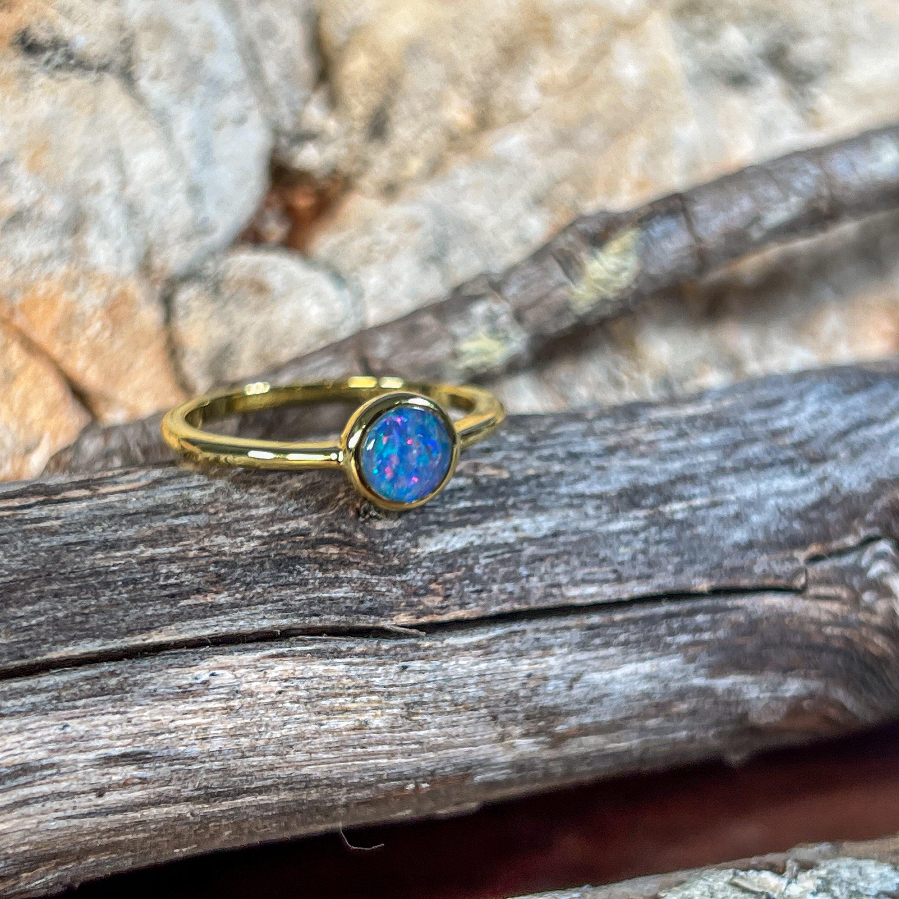 Gold Plated Silver 6mm Round Opal triplet ring bezel set