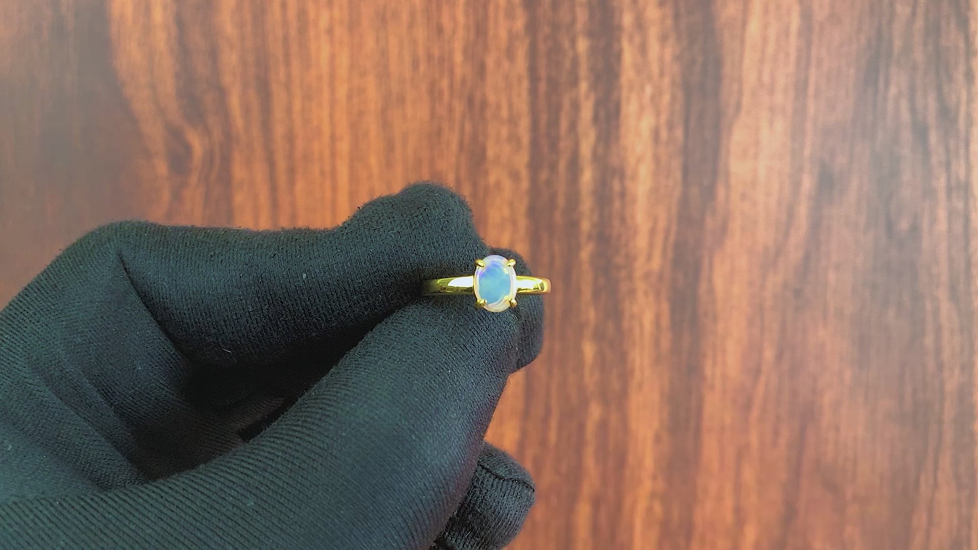 One Gold Plated Sterling Silver solitaire ring claw setOne 8x6mm Oval Solid Australian White Opal