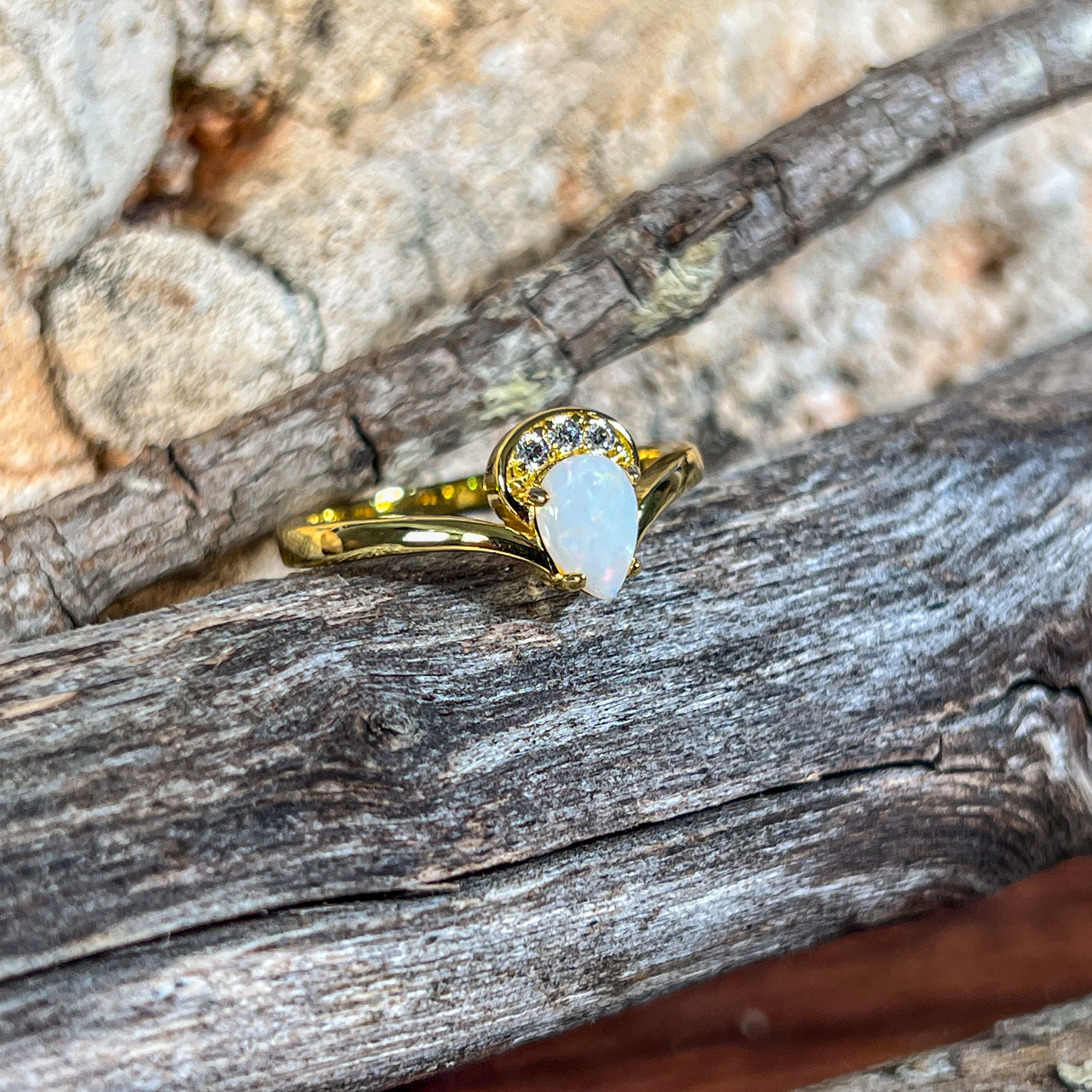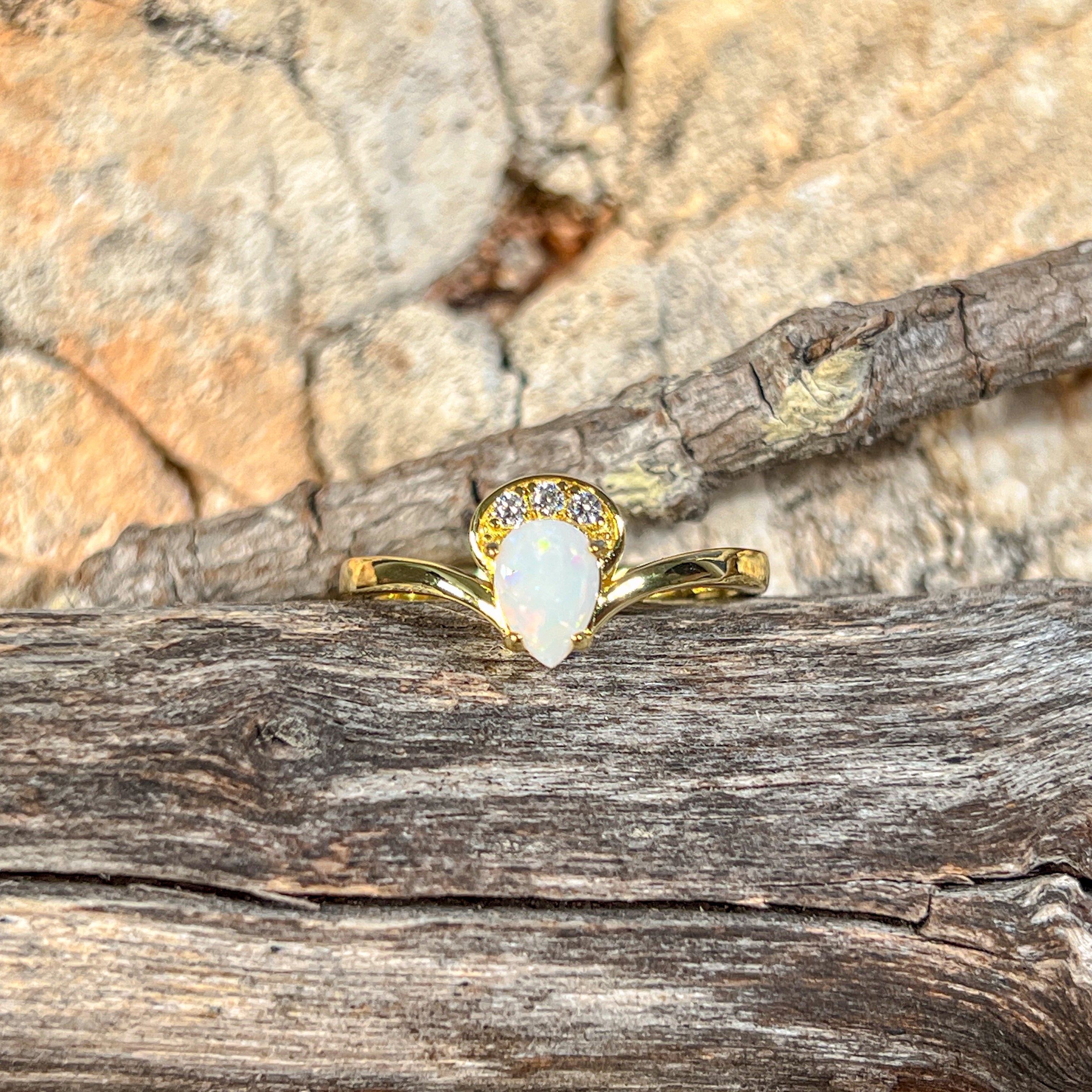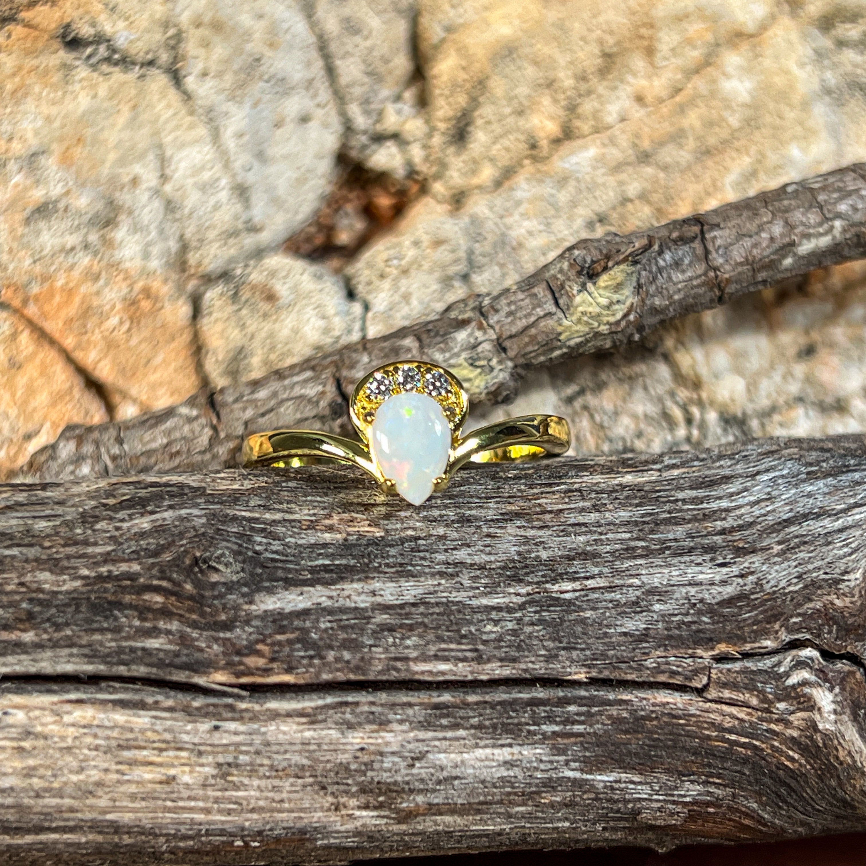 Gold Plated Silver White Opal pear shape 7x5mm ring