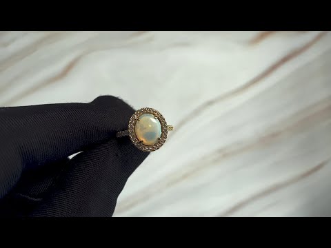 Gold Plated Sterling Silver 10x8mm White Opal halo cluster ring