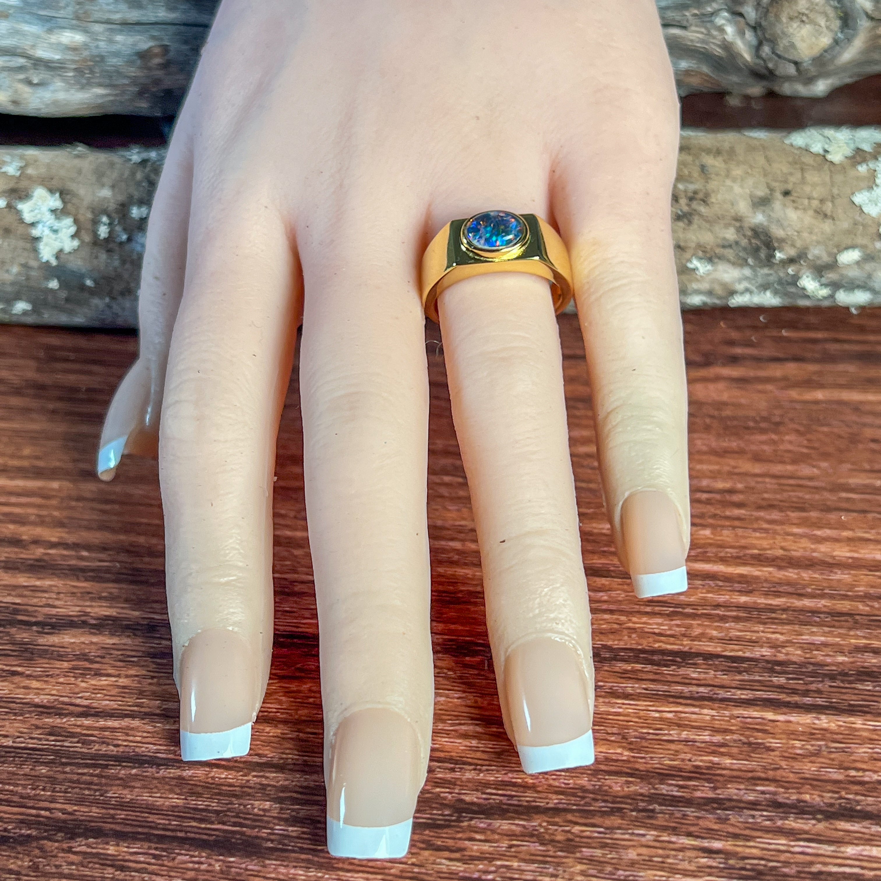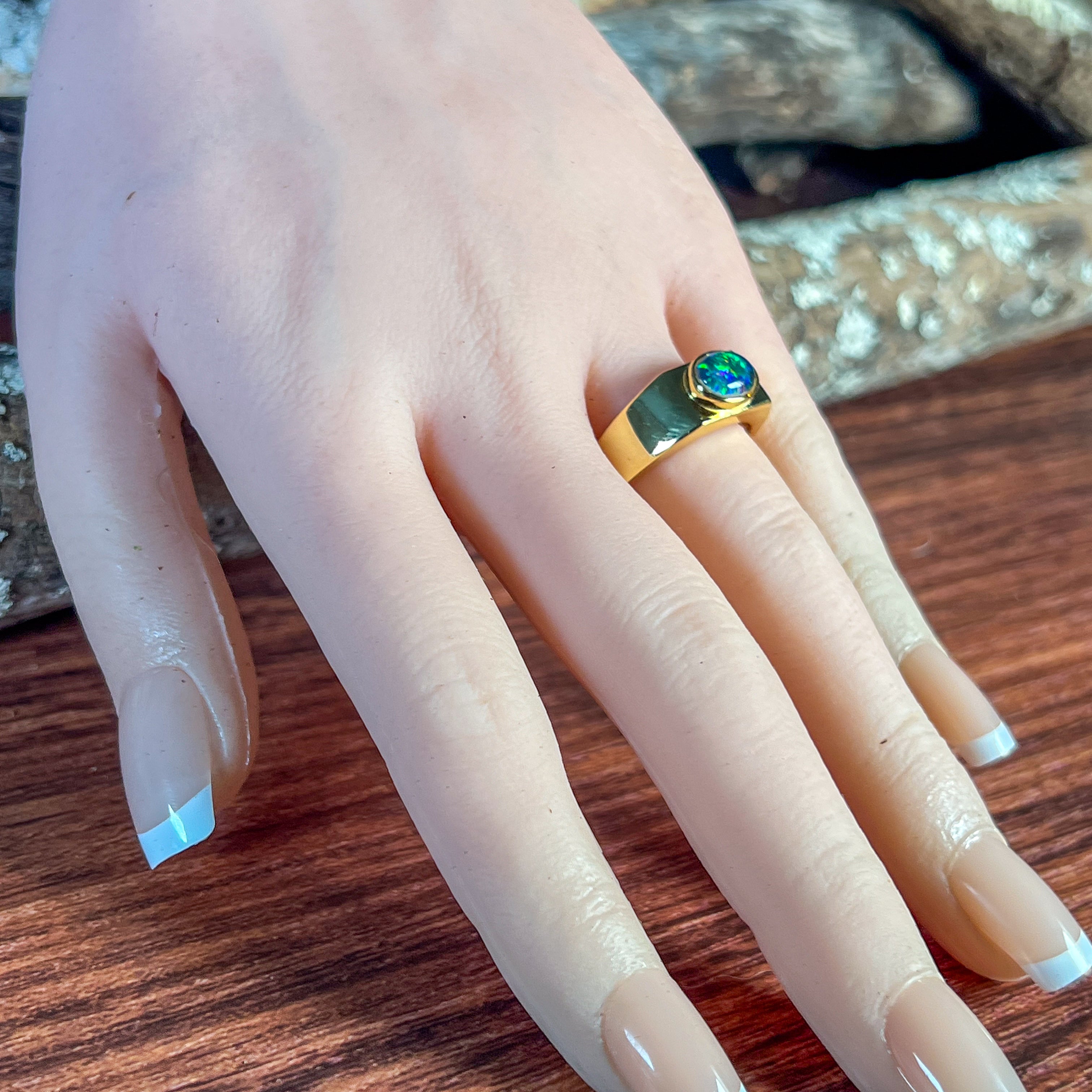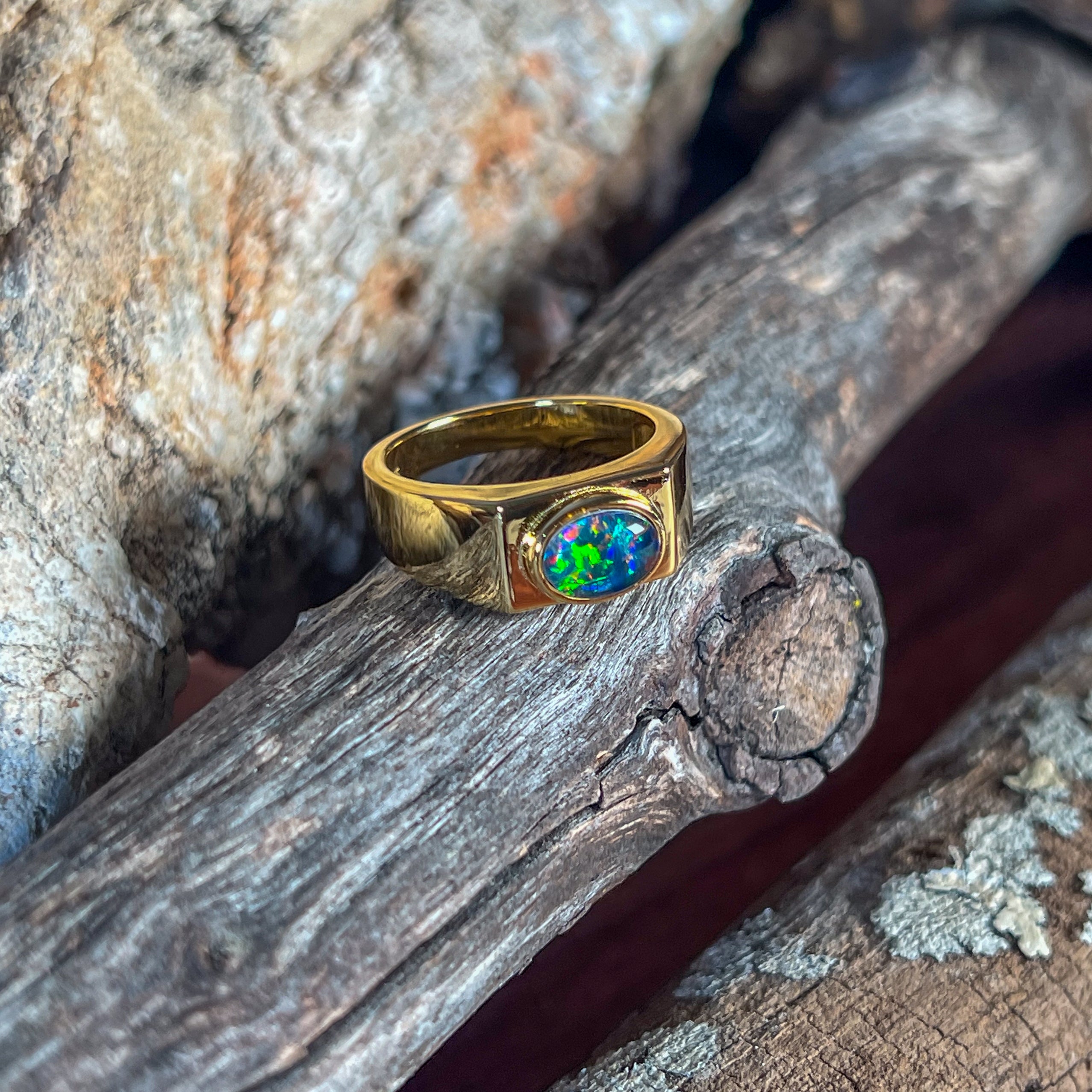 Gold plated Sterling Silver 8x6mm horizontal set Opal triplet rectangular shape ring