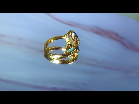 Indulge in luxury with our Gold Plated Sterling Silver Slanted Black Opal ring. This stunning piece features a 0.71ct black opal and sparkling cubic zirconia stones. The perfect gift for her, this ring will add a touch of elegance and style to any outfit. Elevate your accessory game with this one-of-a-kind piece.
