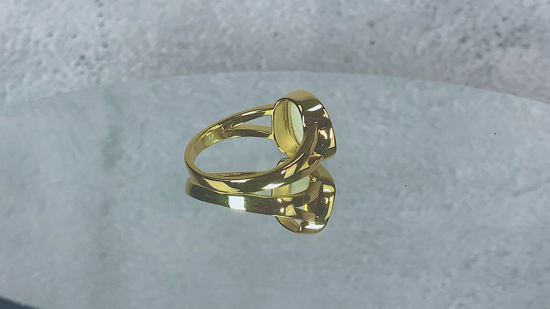 Gold Plated Sterling Silver solitaire bezel set white opal 3.1ct ring