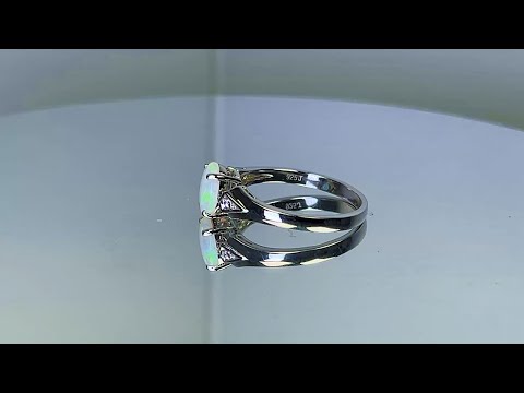 One Sterling Silver 8x6mm Light Opal and side cz ring