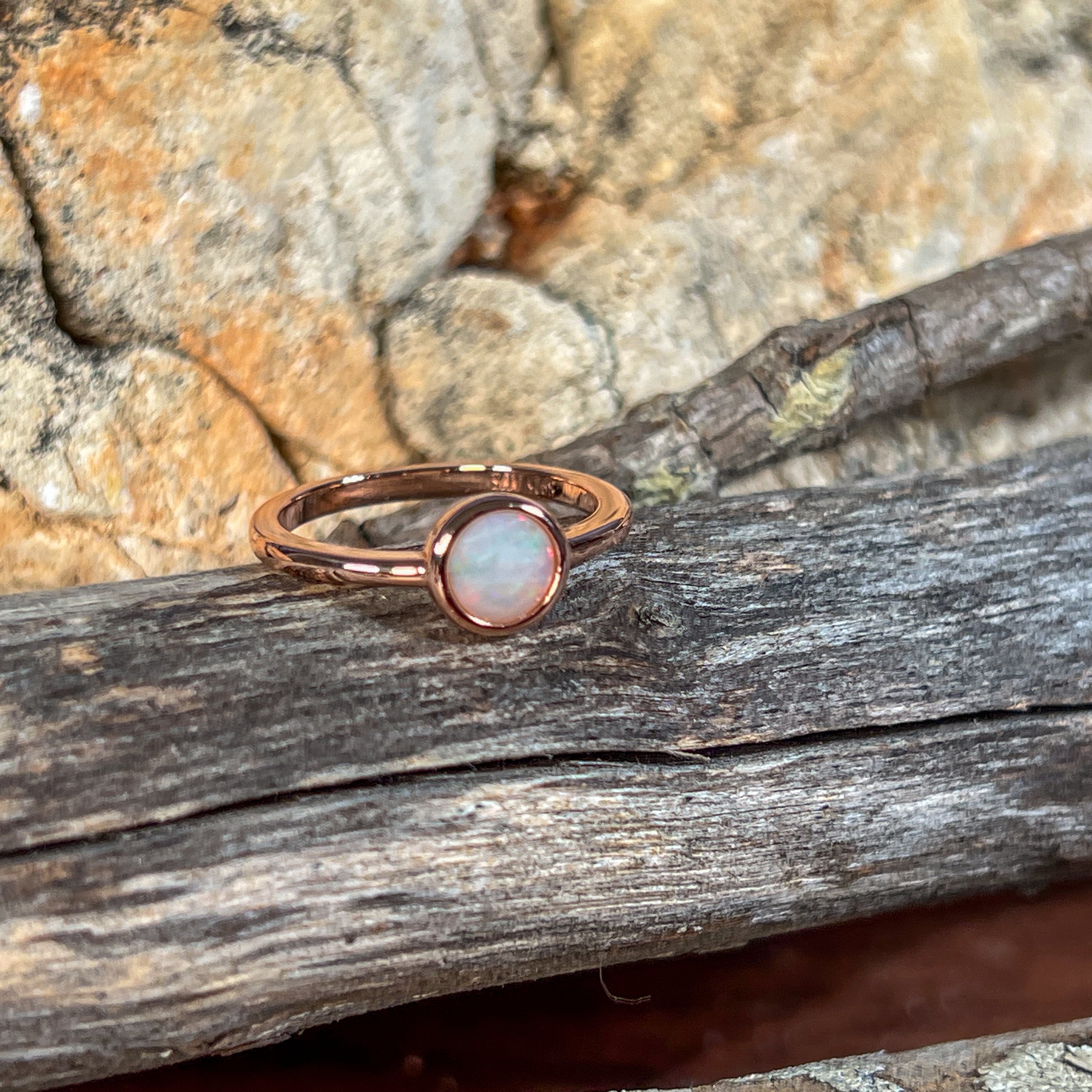 One Rose Gold Plated Sterling Silver solitaire round bezel set Opal ring
