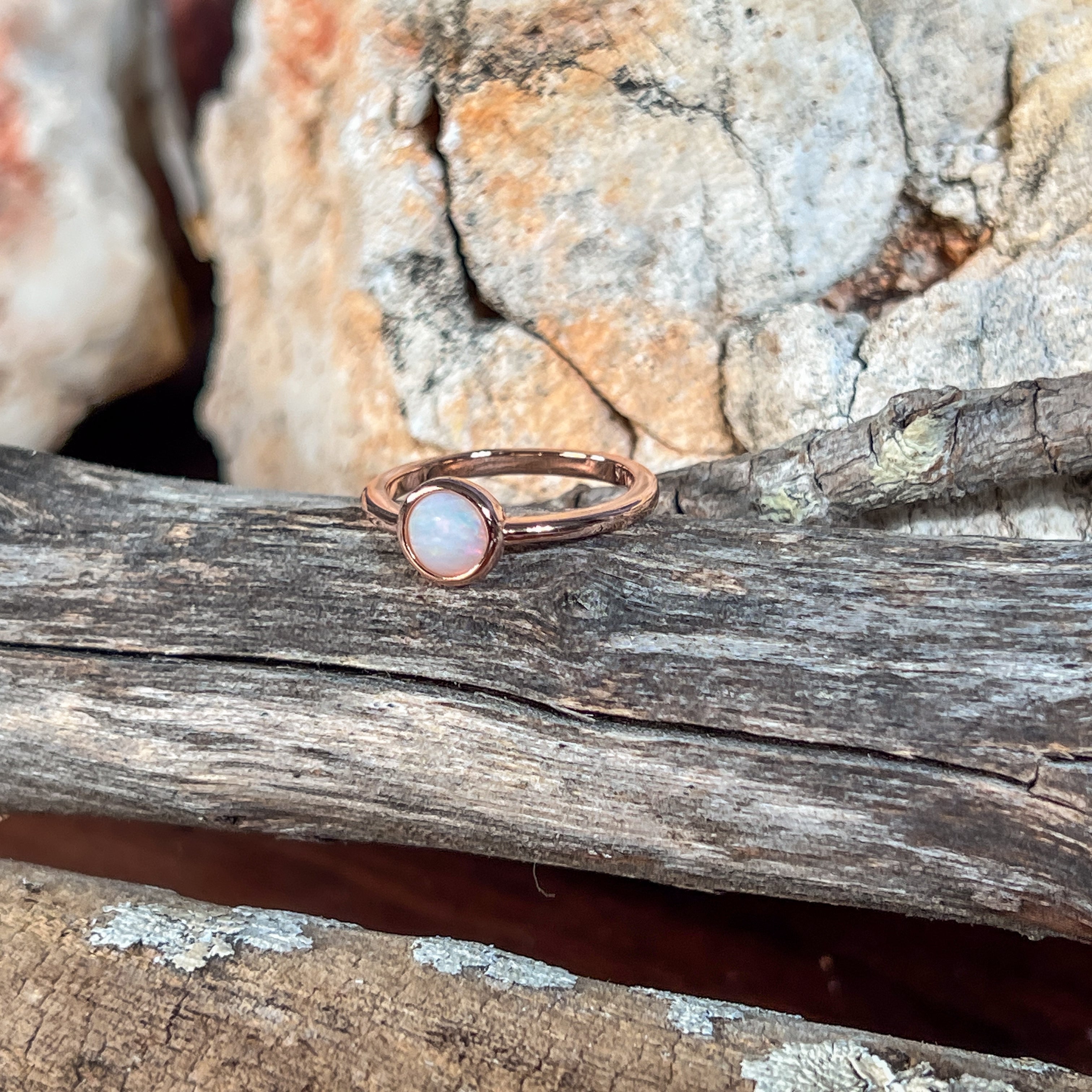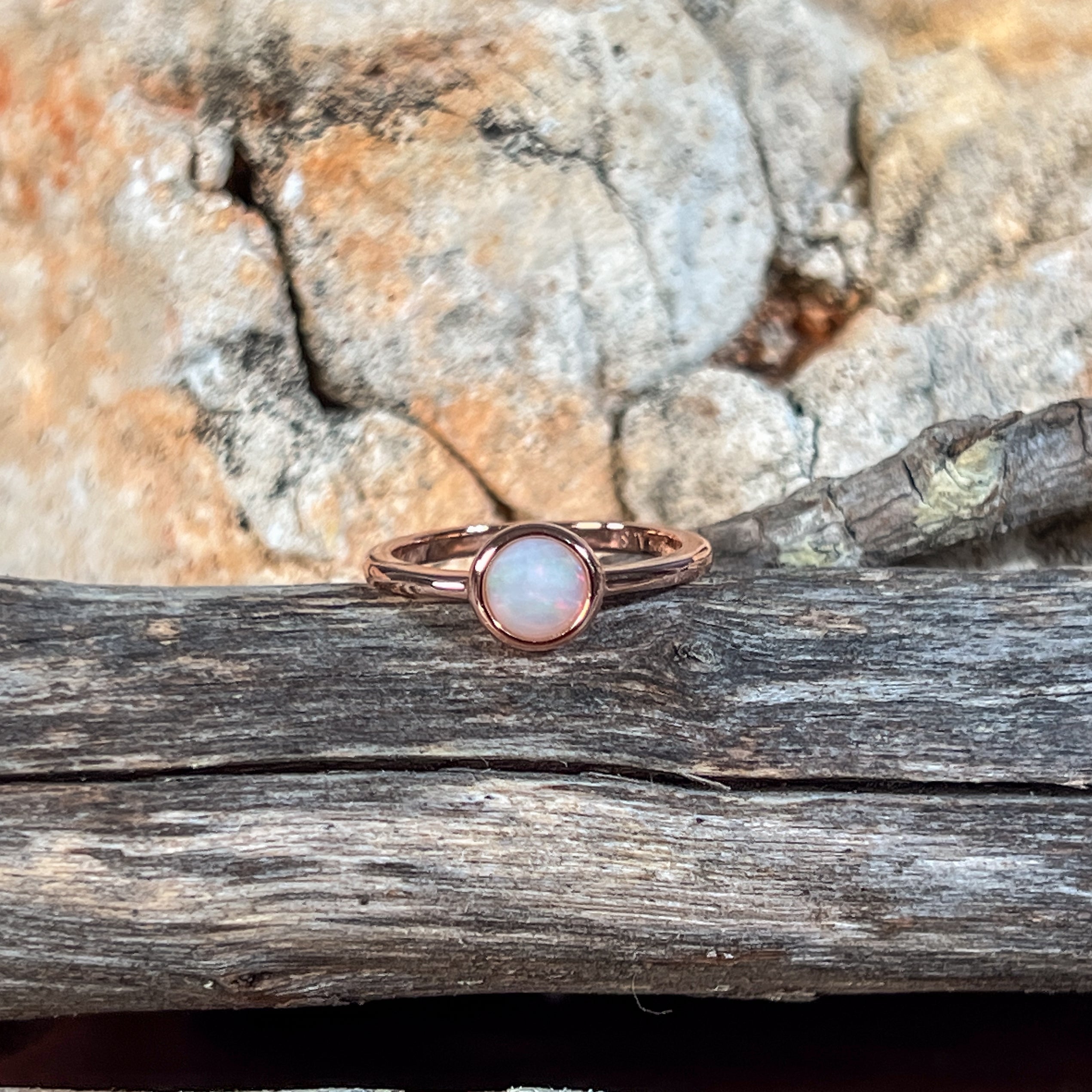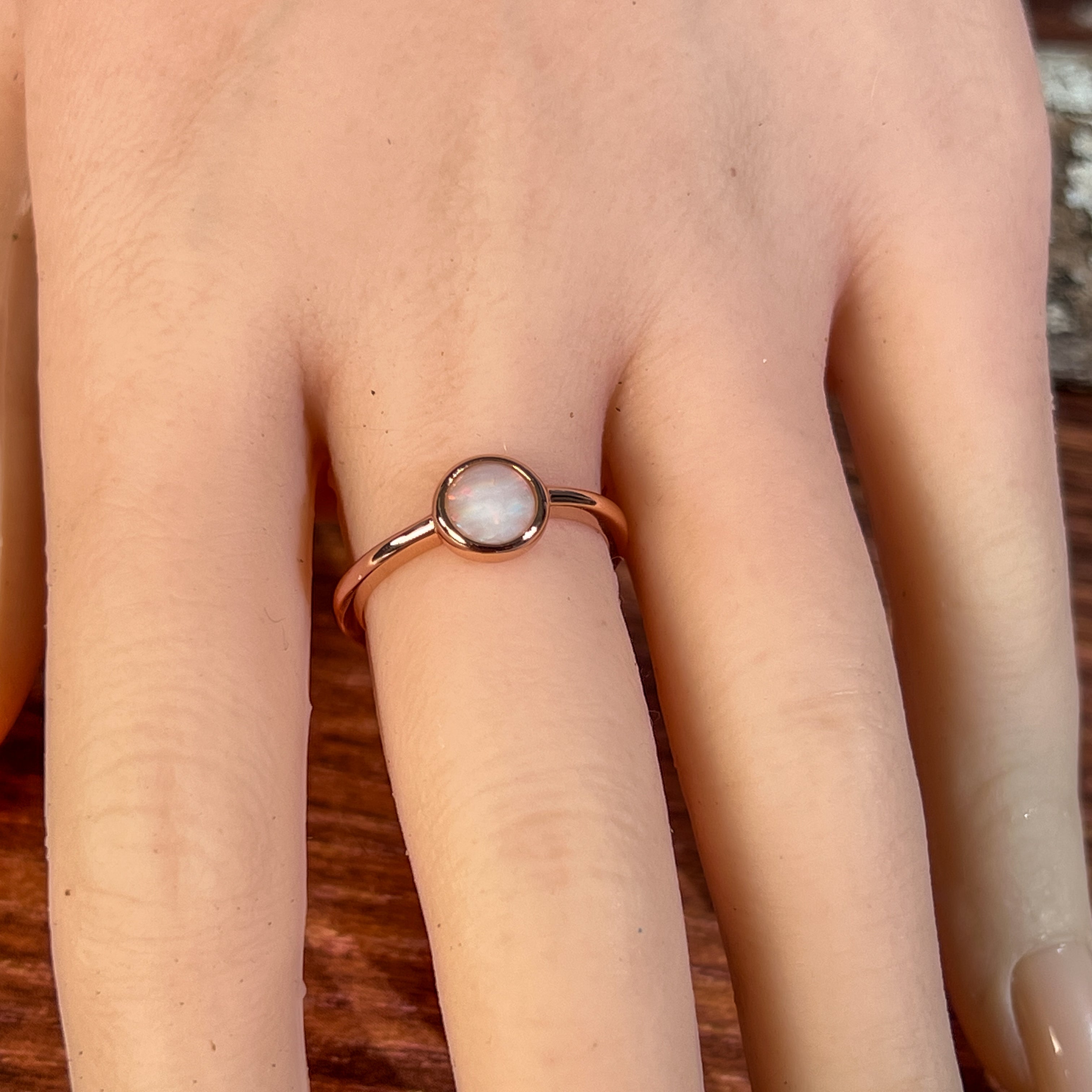Rose Gold plated silver 6mm White Opal solitaire ring