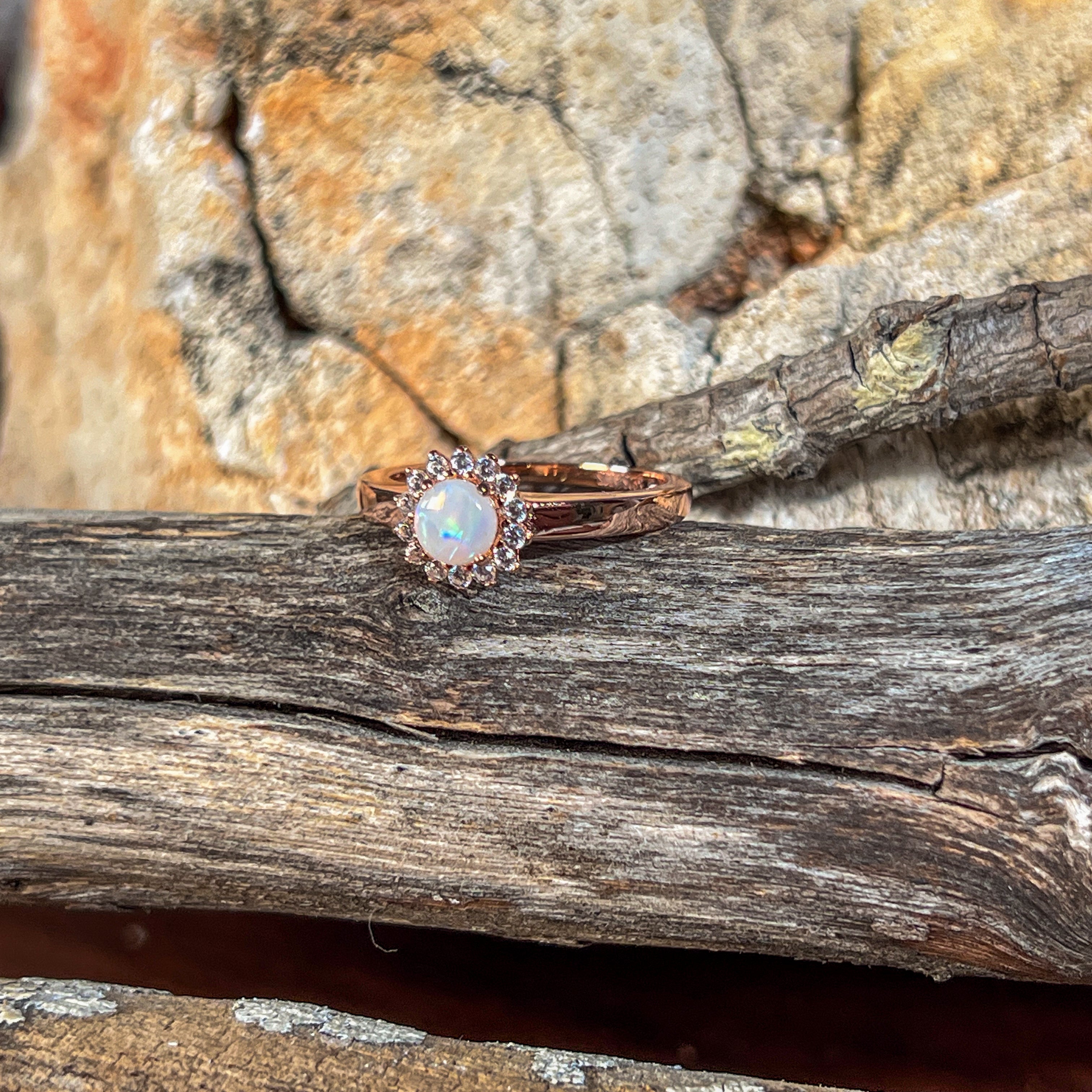 Rose Gold plated silver cluster ring 5mm Round White Opal ring