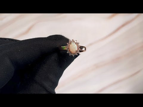 Rose Gold Sterling Silver Light Opal 7x5mm cluster ring