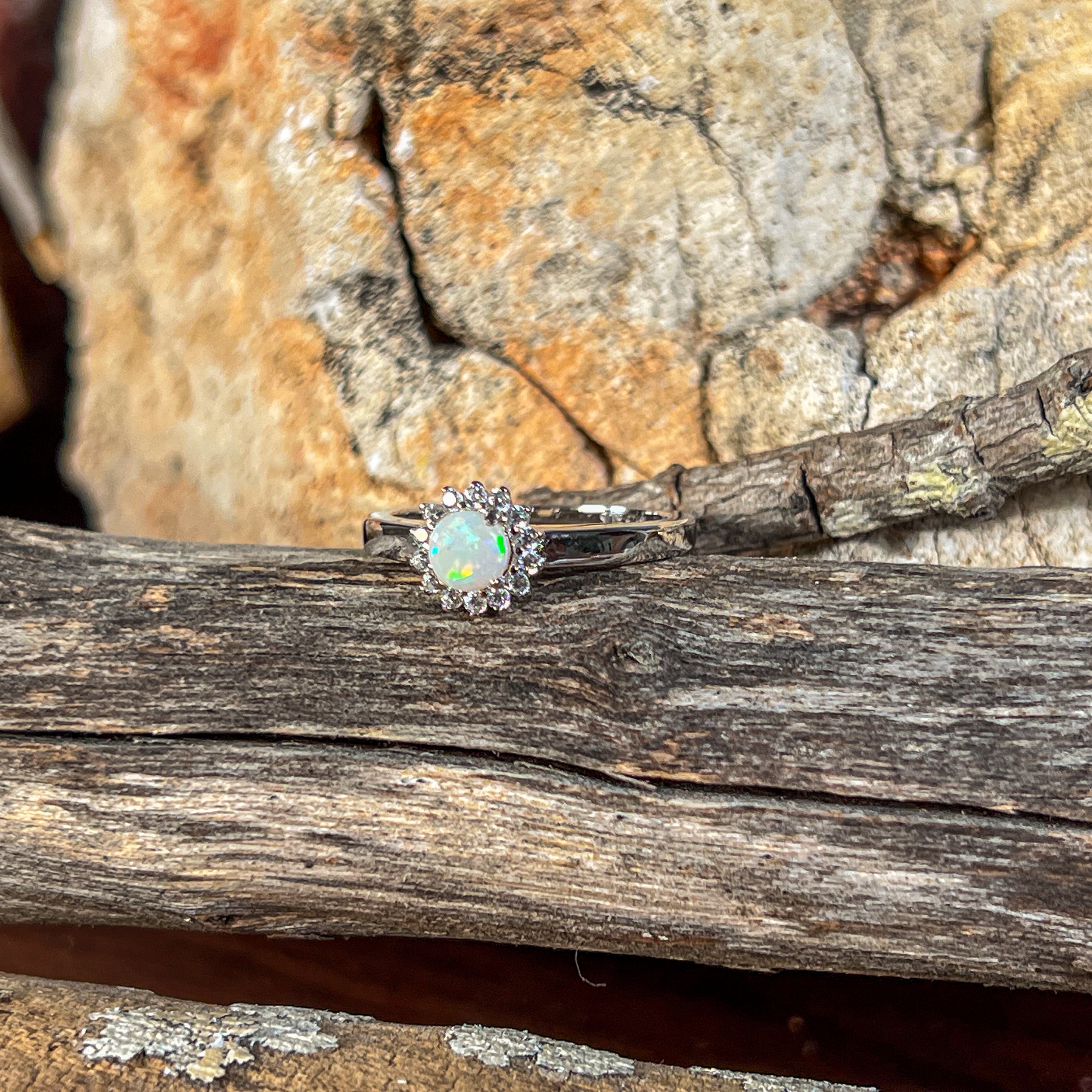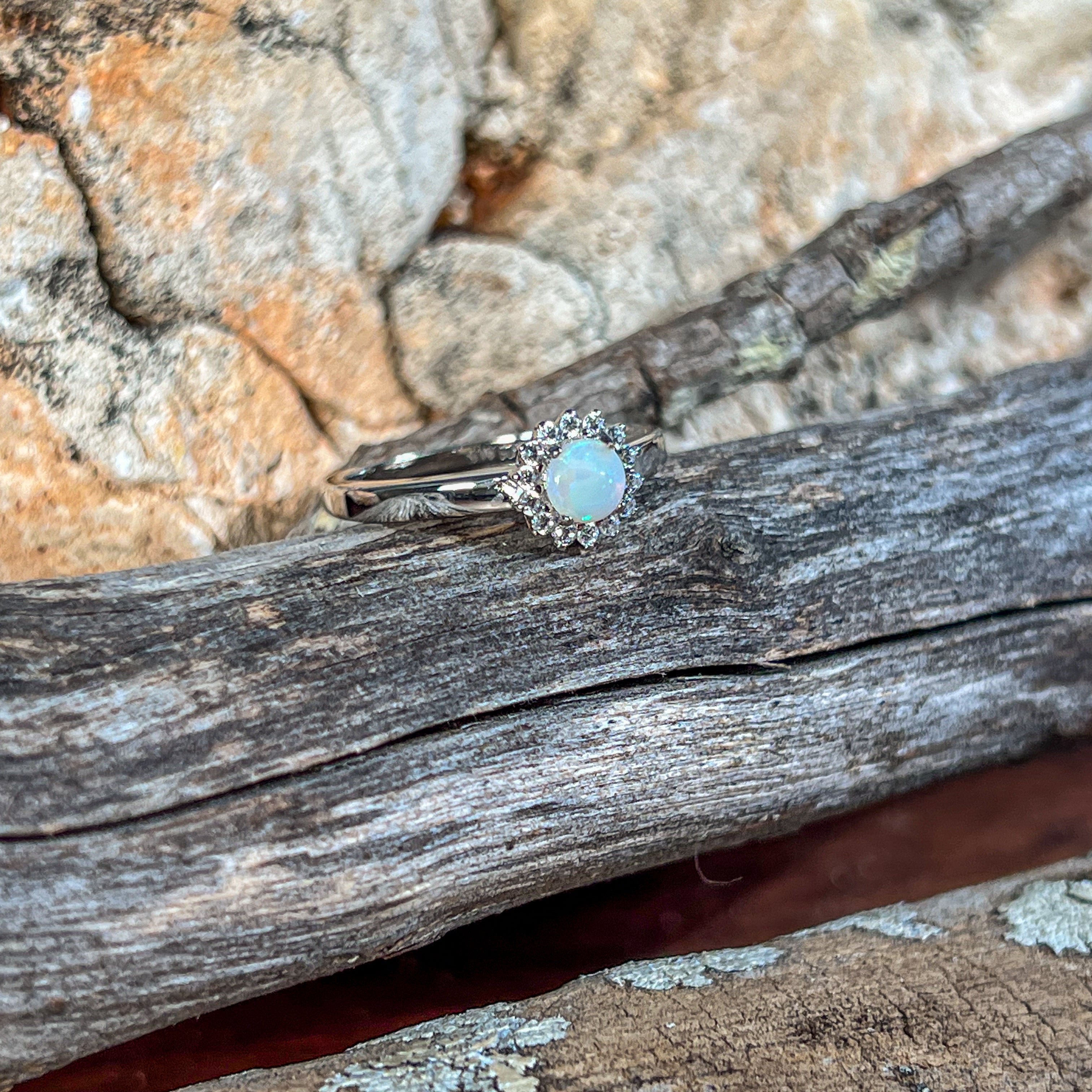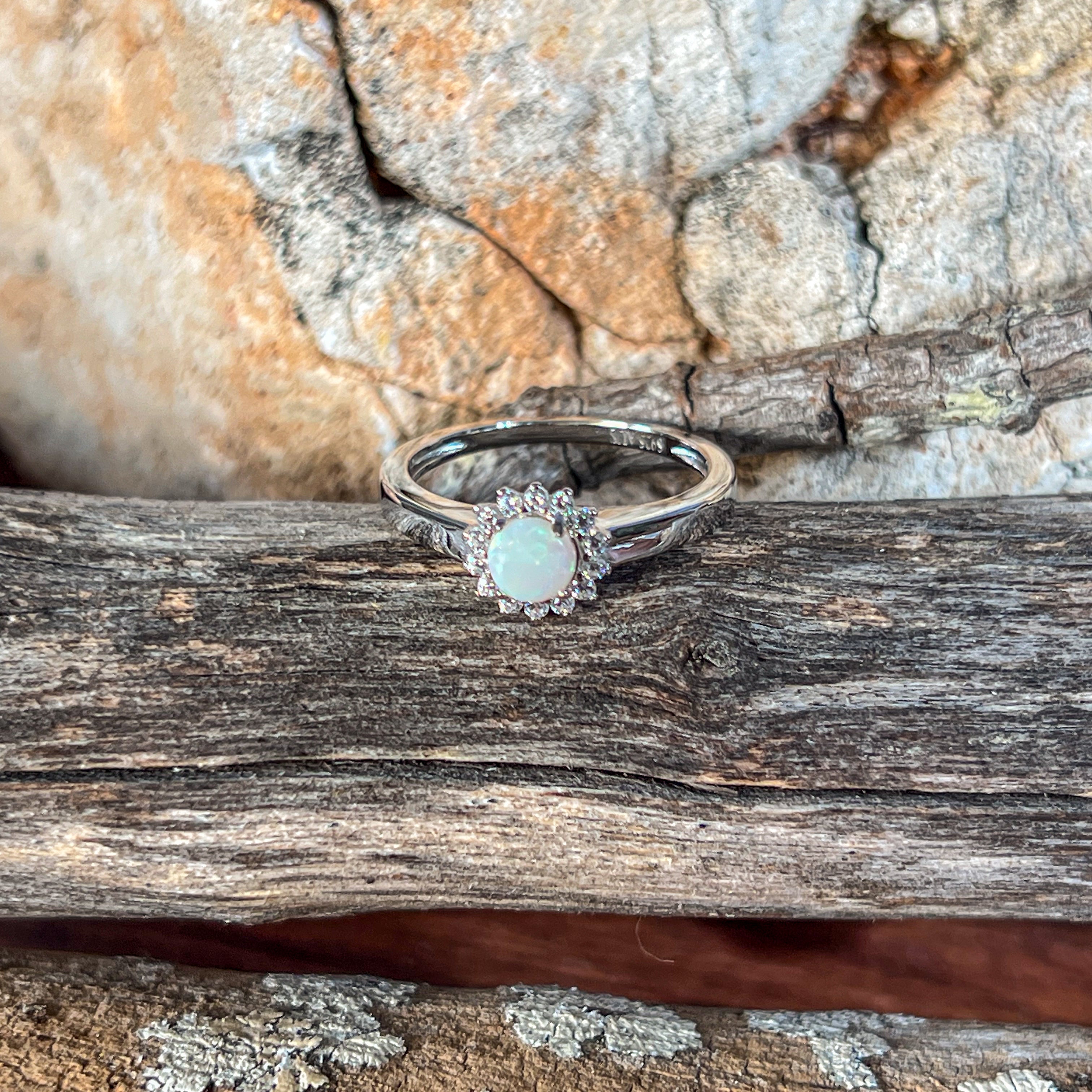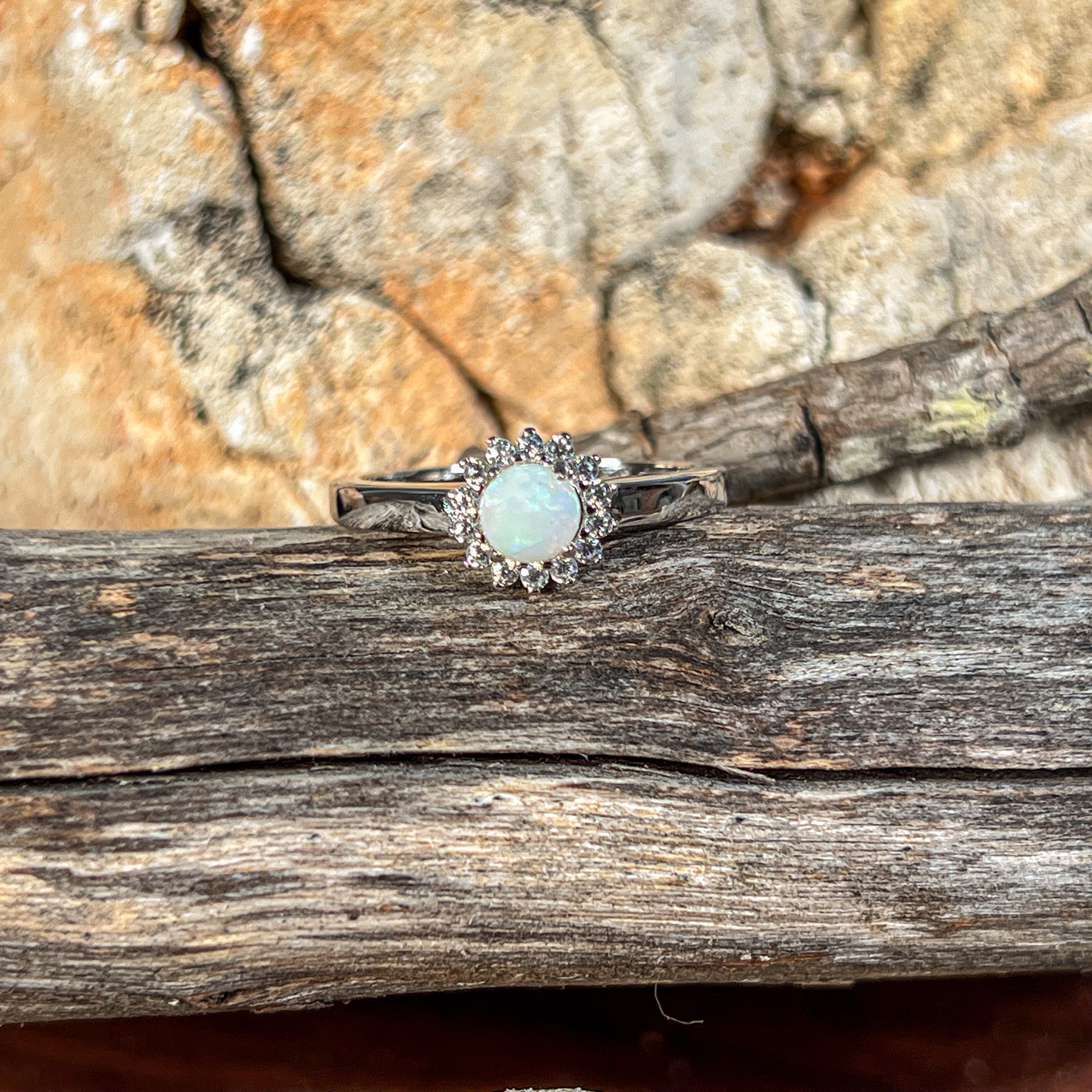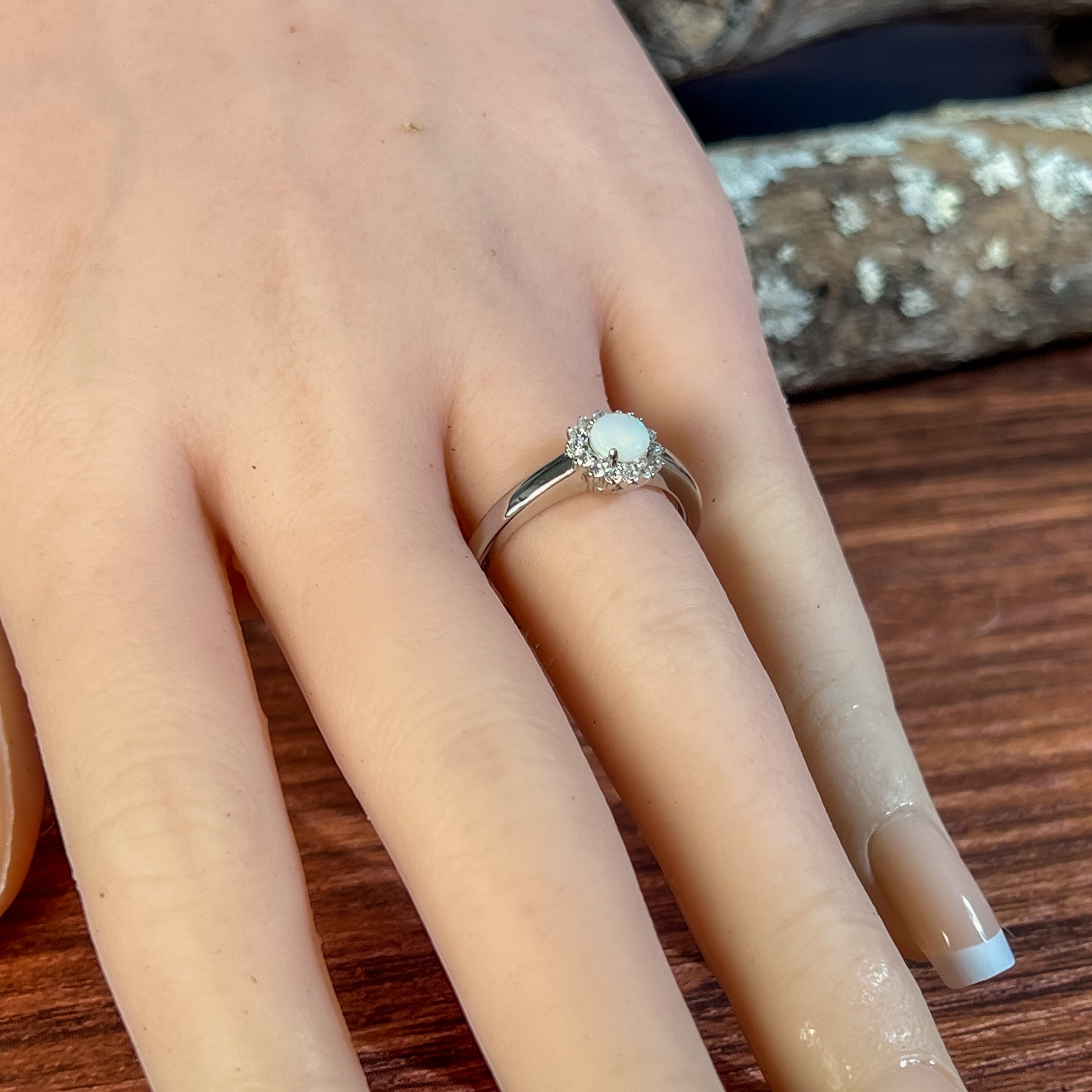 This classic Sterling Silver 5mm Round White Opal ring cluster adds a touch of elegance to any outfit. Crafted with high quality materials, its timeless design will make a statement for years to come. Perfect for any occasion, this ring will be sure to become a cherished piece in your jewelry collection.