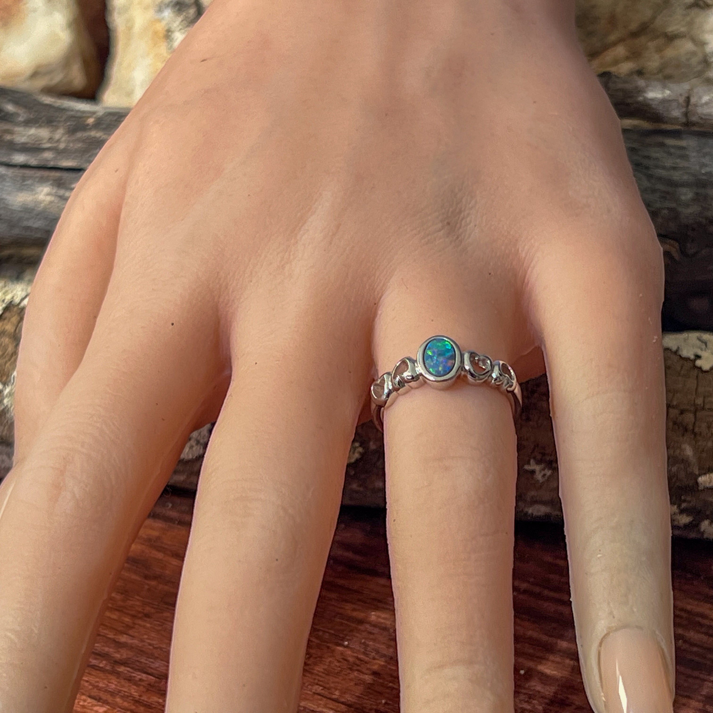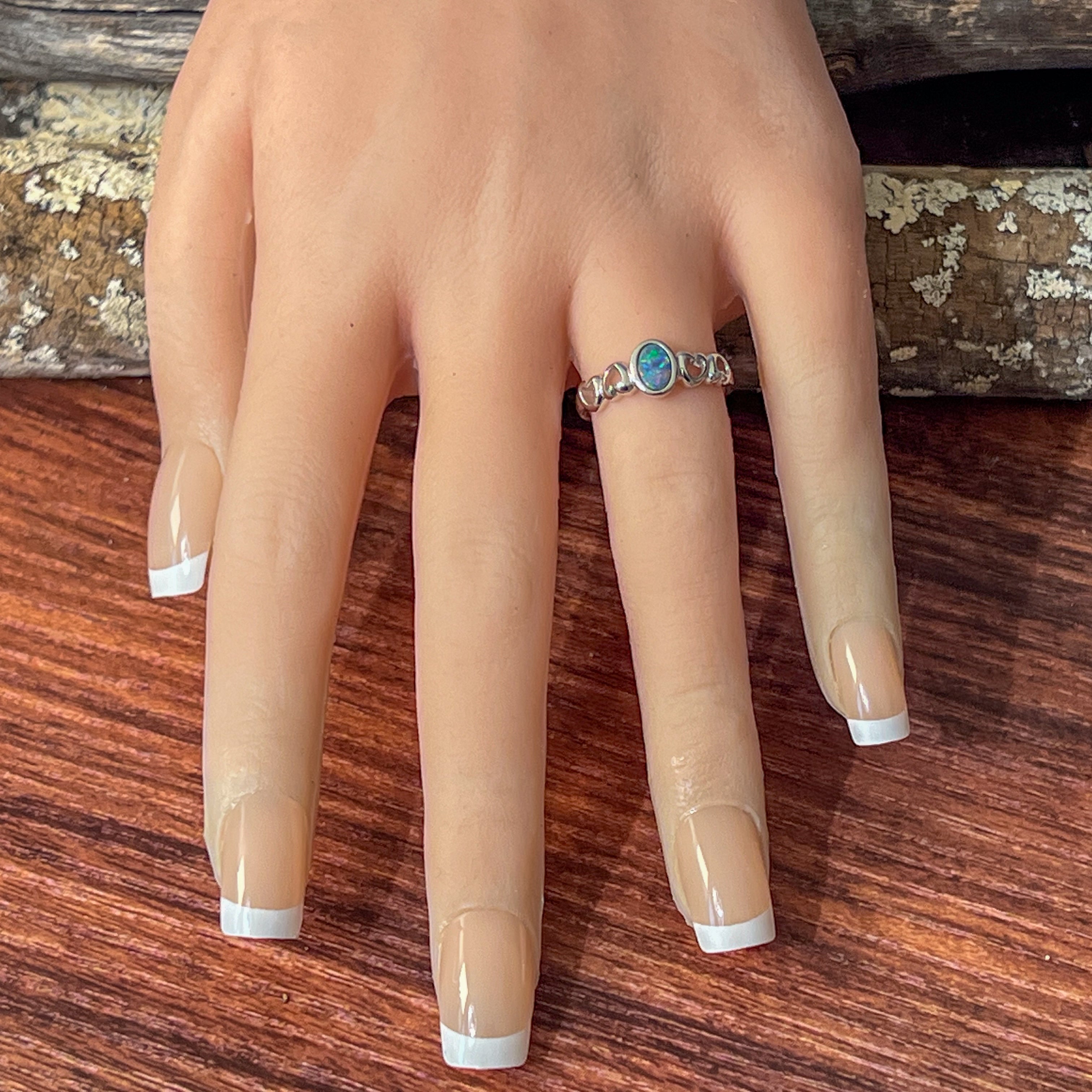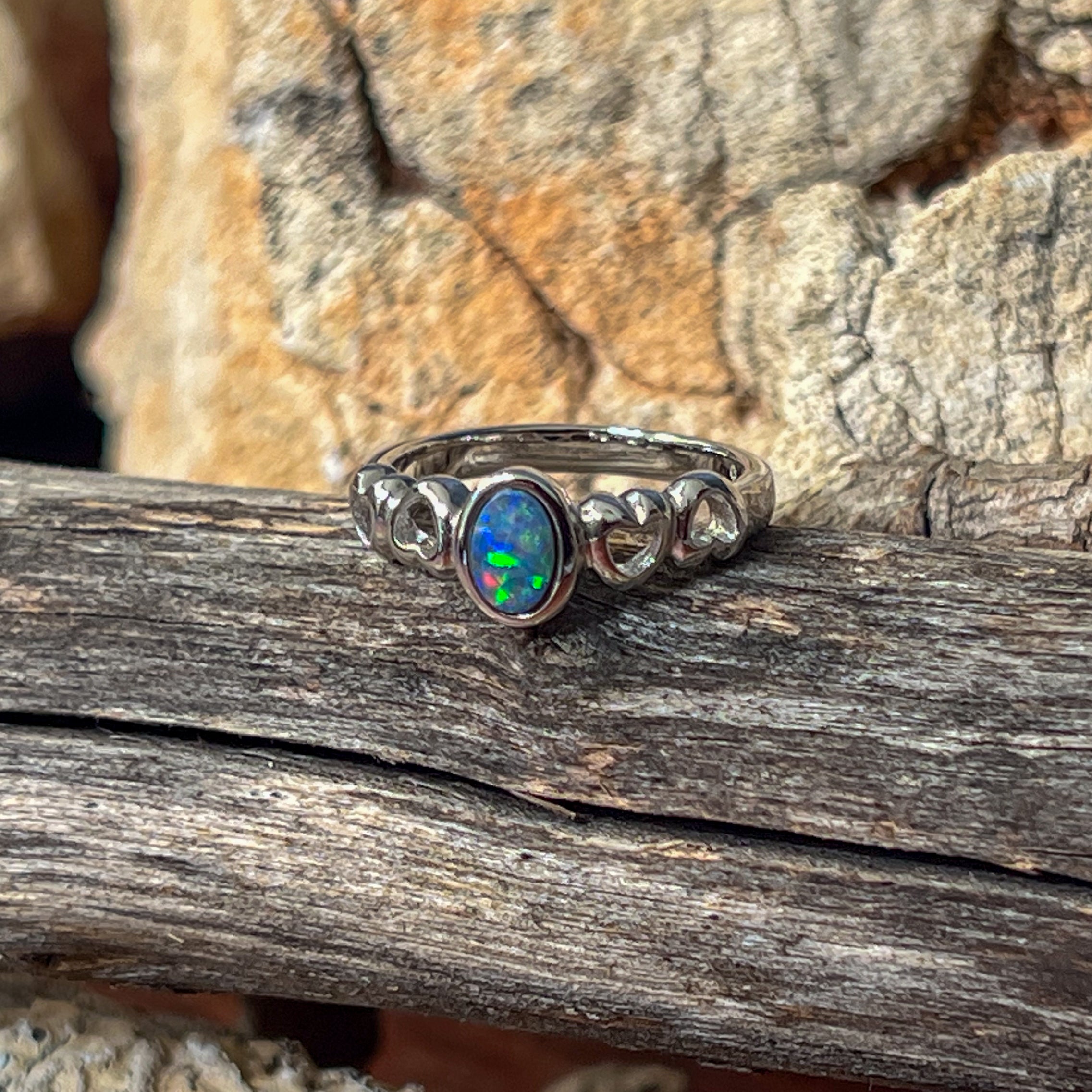 Sterling Silver 6x4mm Opal doublet heart cut out design ring