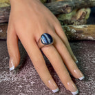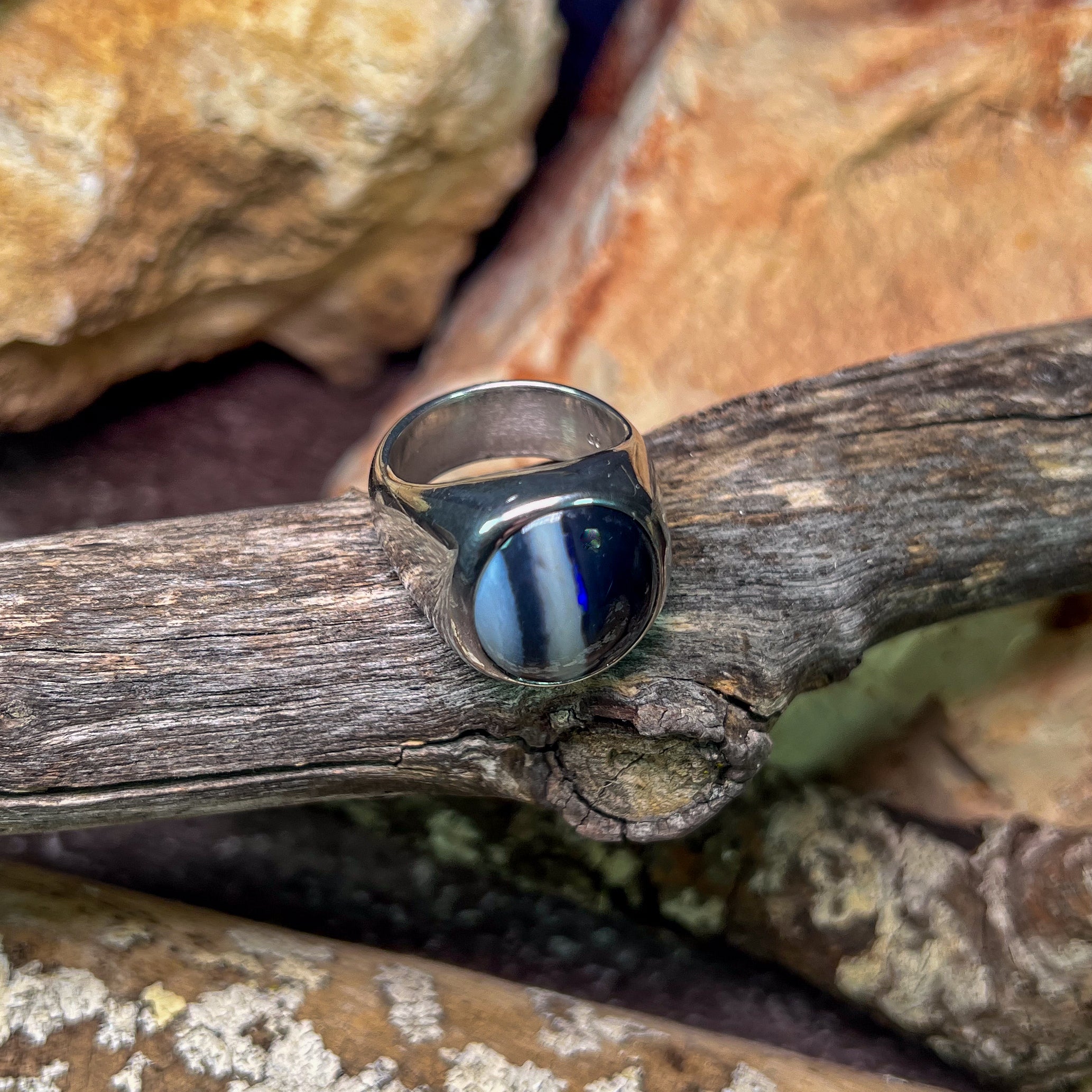 One Sterling Silver ring wth one 8.3ct Black Opal with white stripes