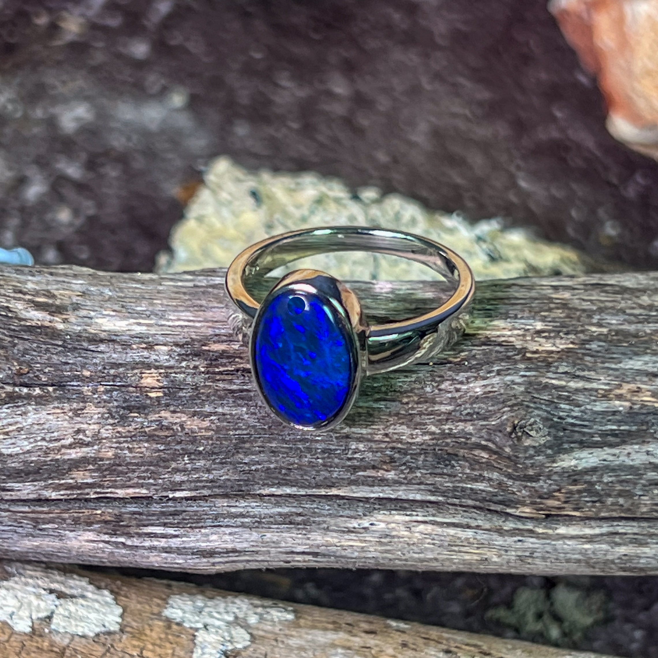 Sterling Silver Blue Black Opal 2.16ct bezel set ring