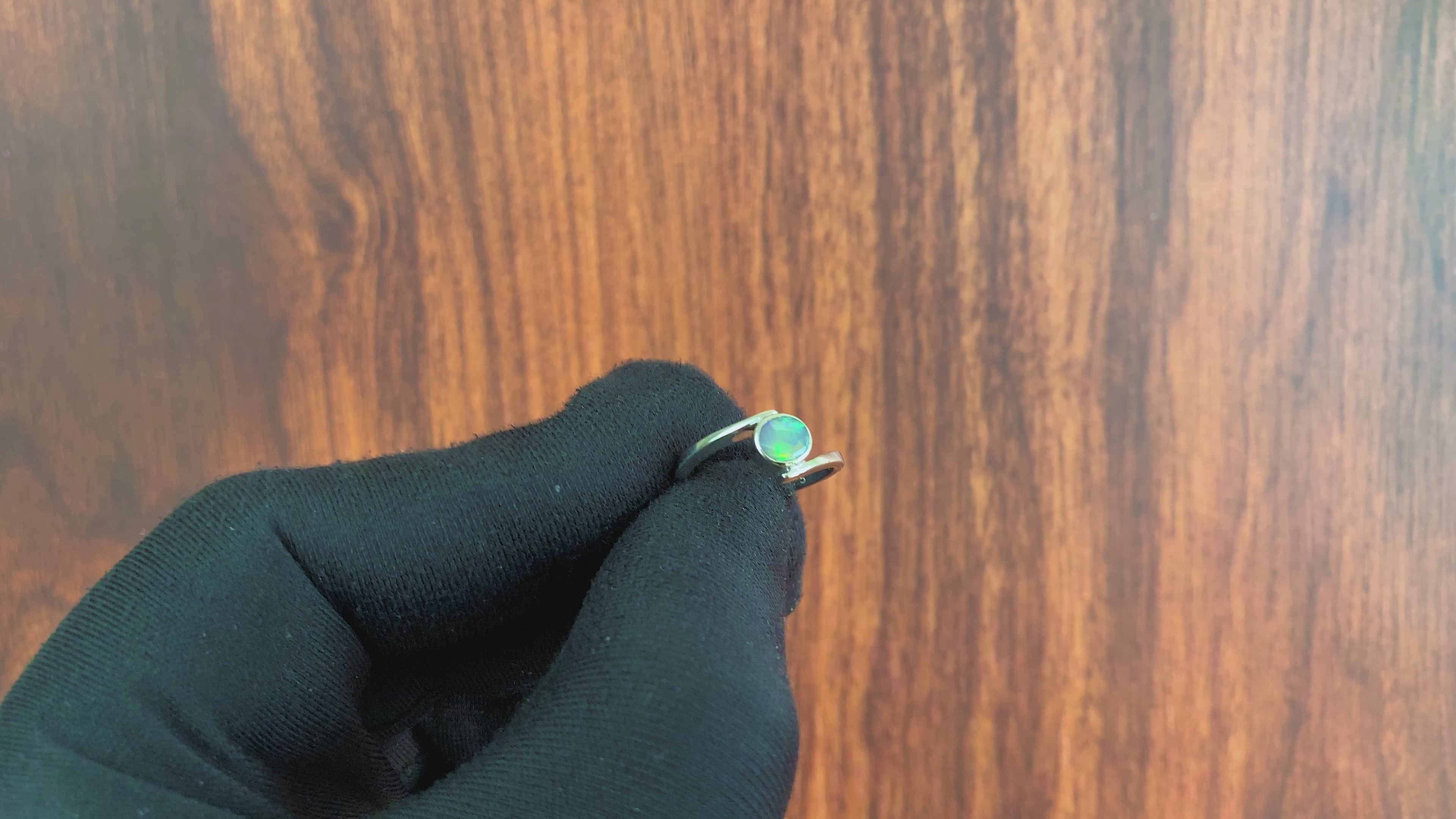 Sterling Silver cross over solitaire Black Opal ringAustralian Black Opal round
