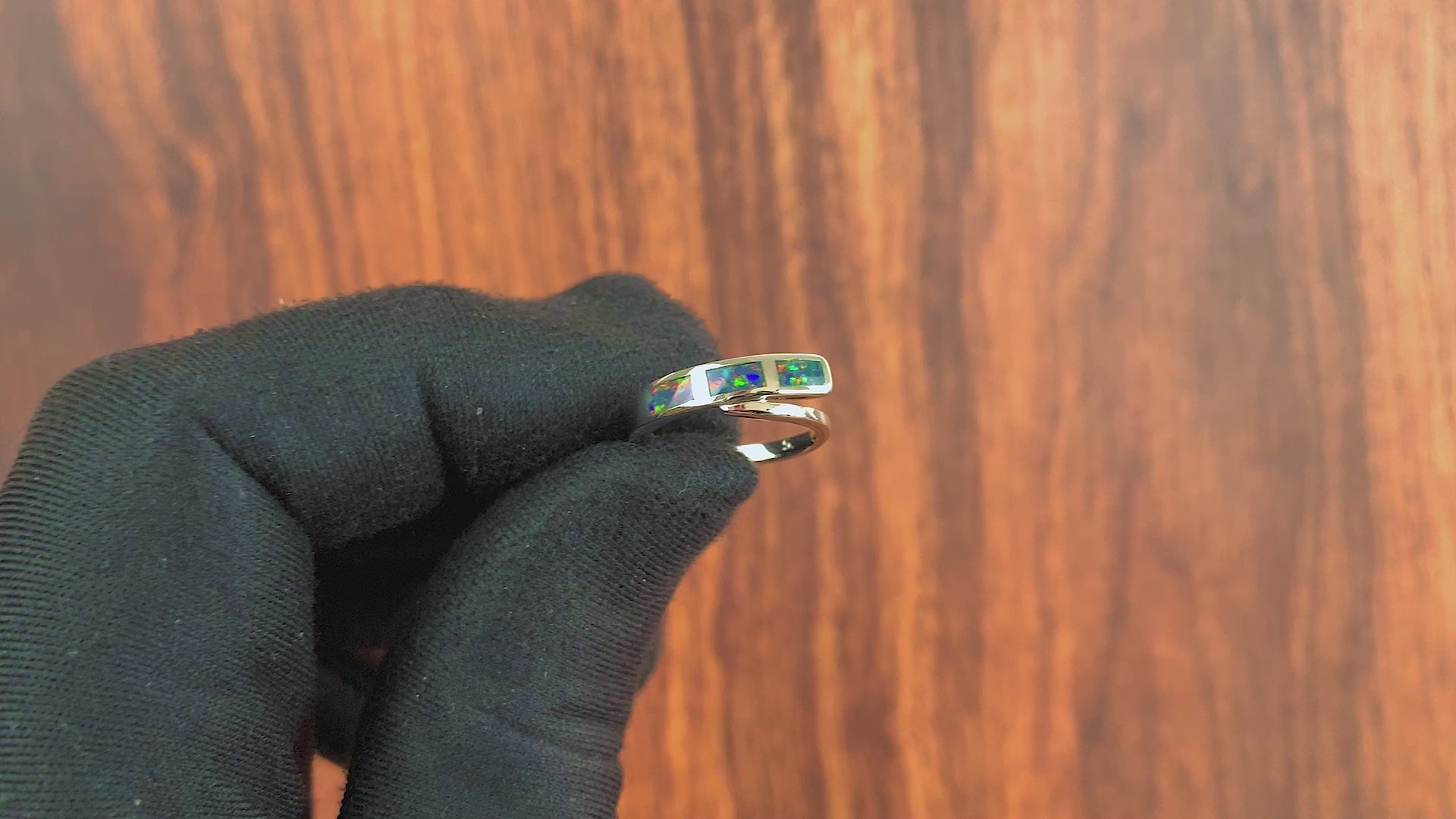 This beautiful sterling silver opal ring features an ornate cross over inlay for a unique, eye-catching look. Glistening opals will shimmer in the light, adding an elegant touch to any outfit. Enjoy a classic style with a twist!