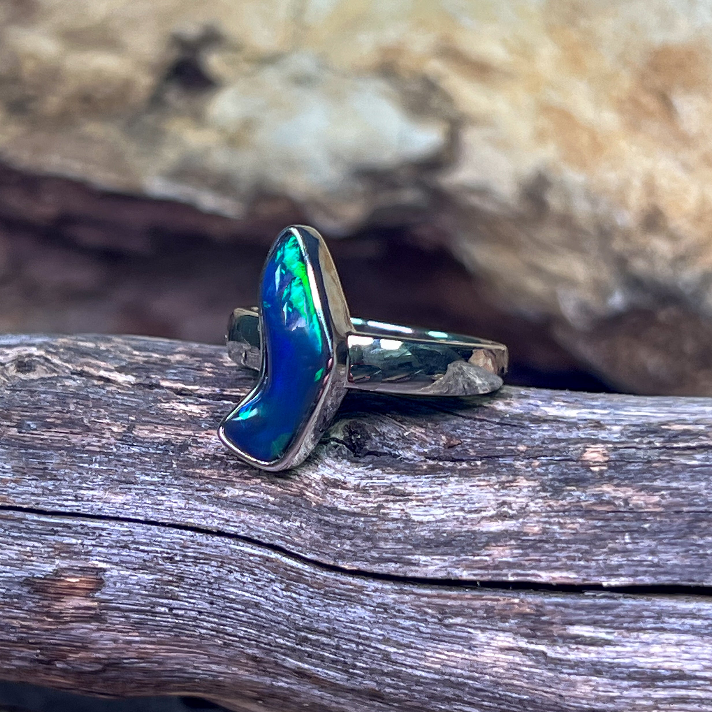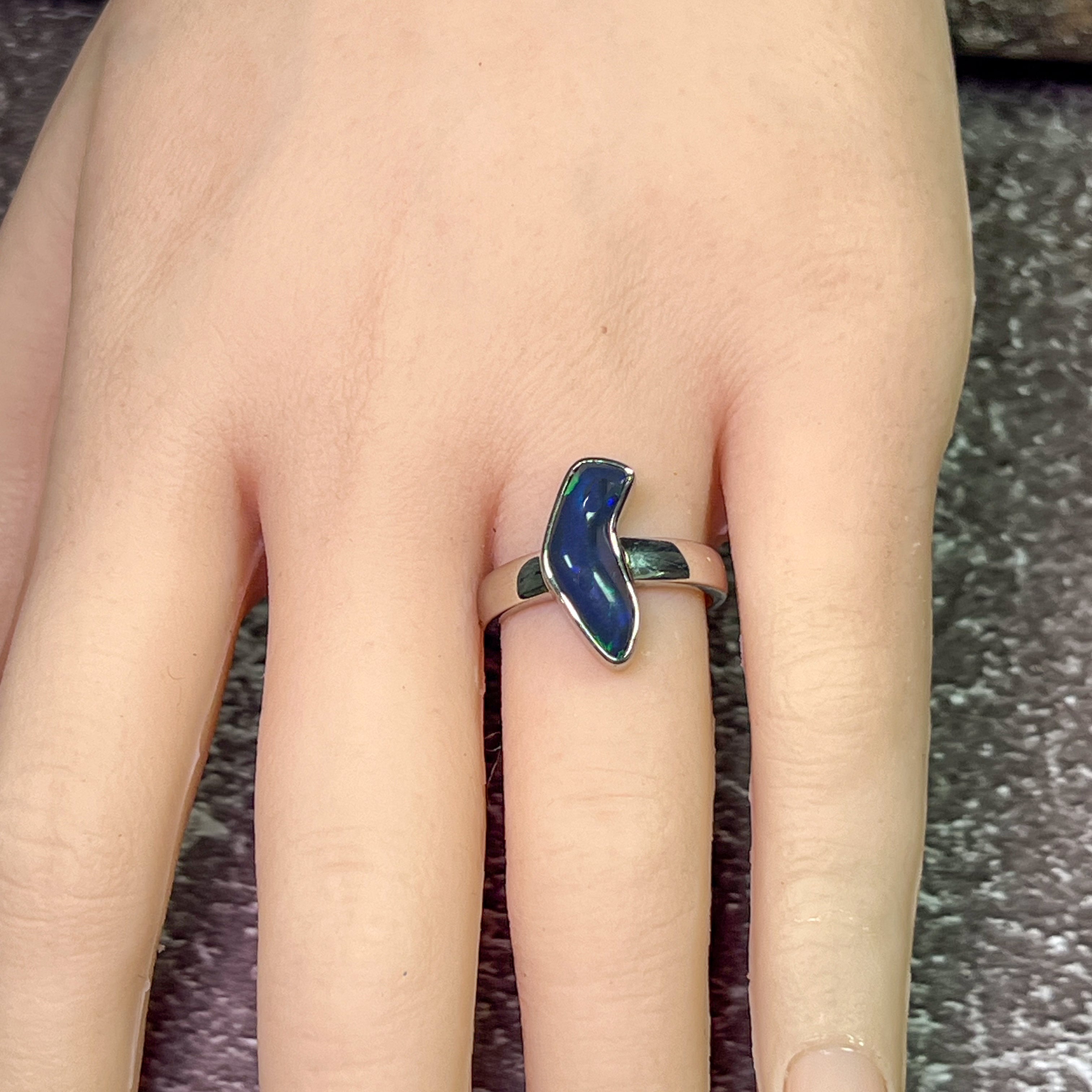 Sterling Silver Freeform Green Blue Black Opal 2.15ct ring