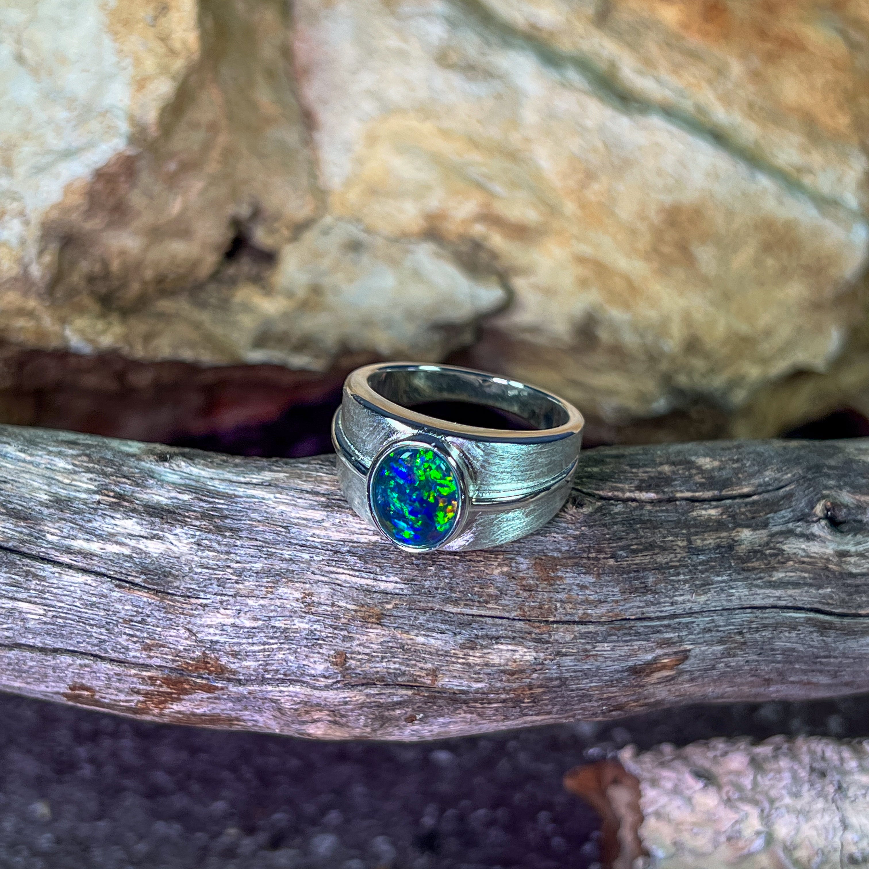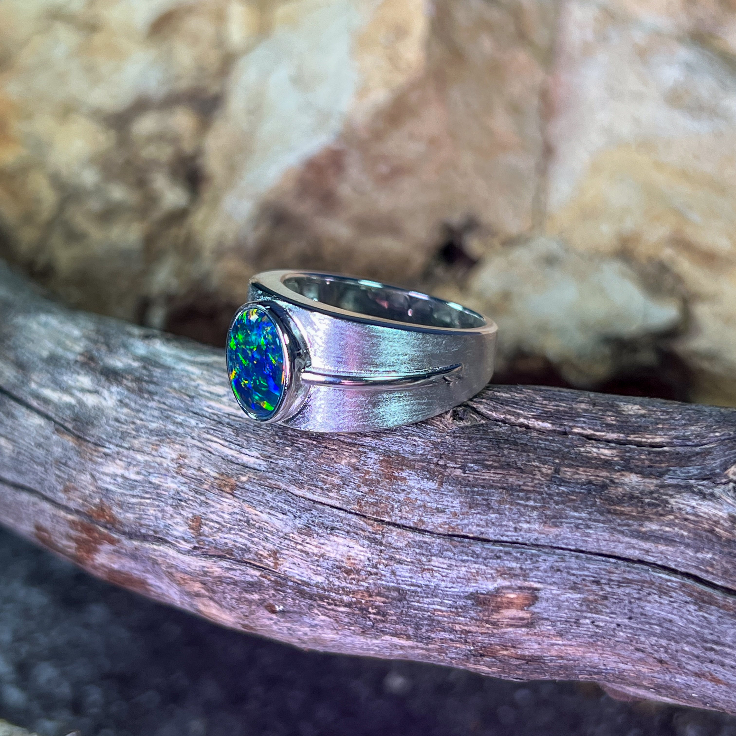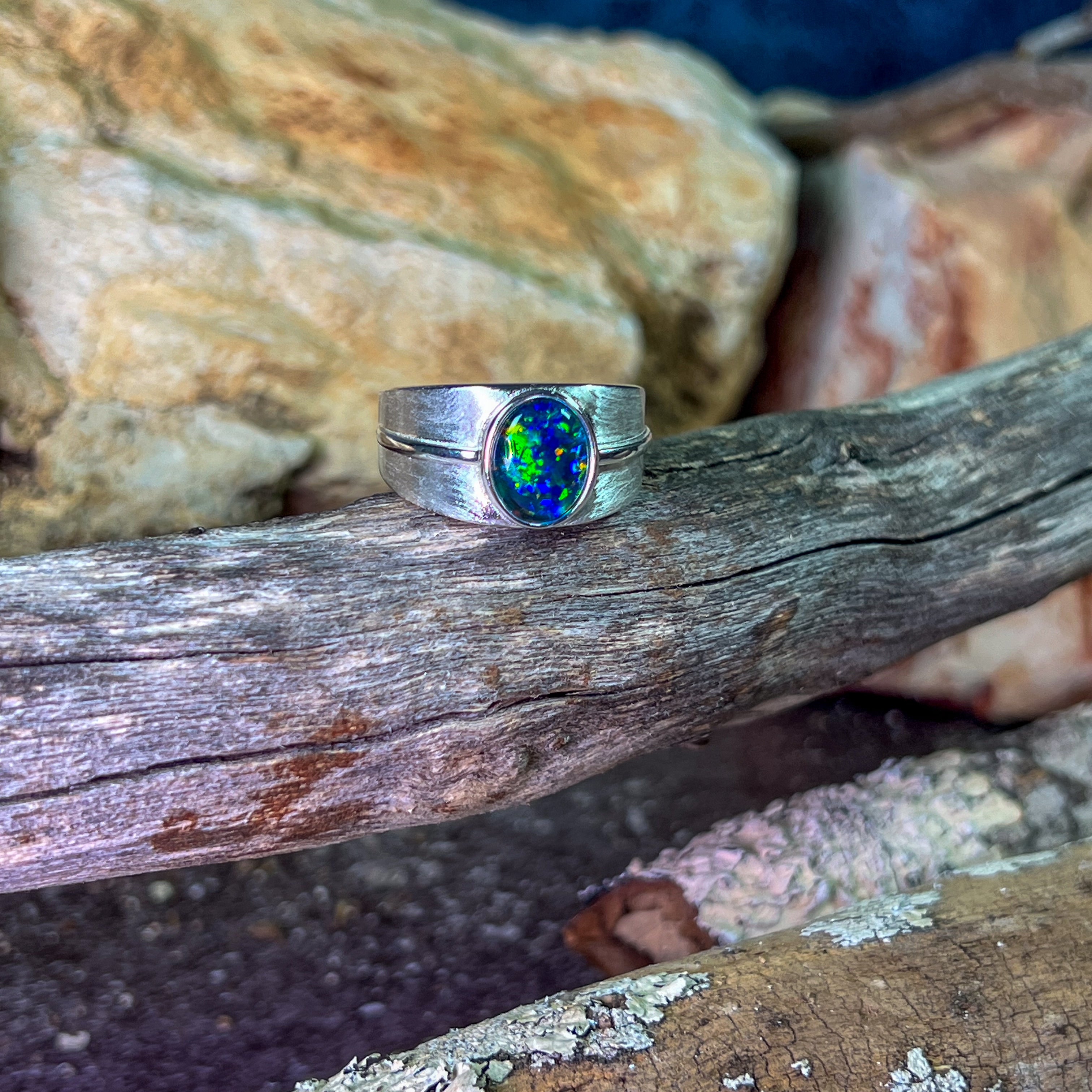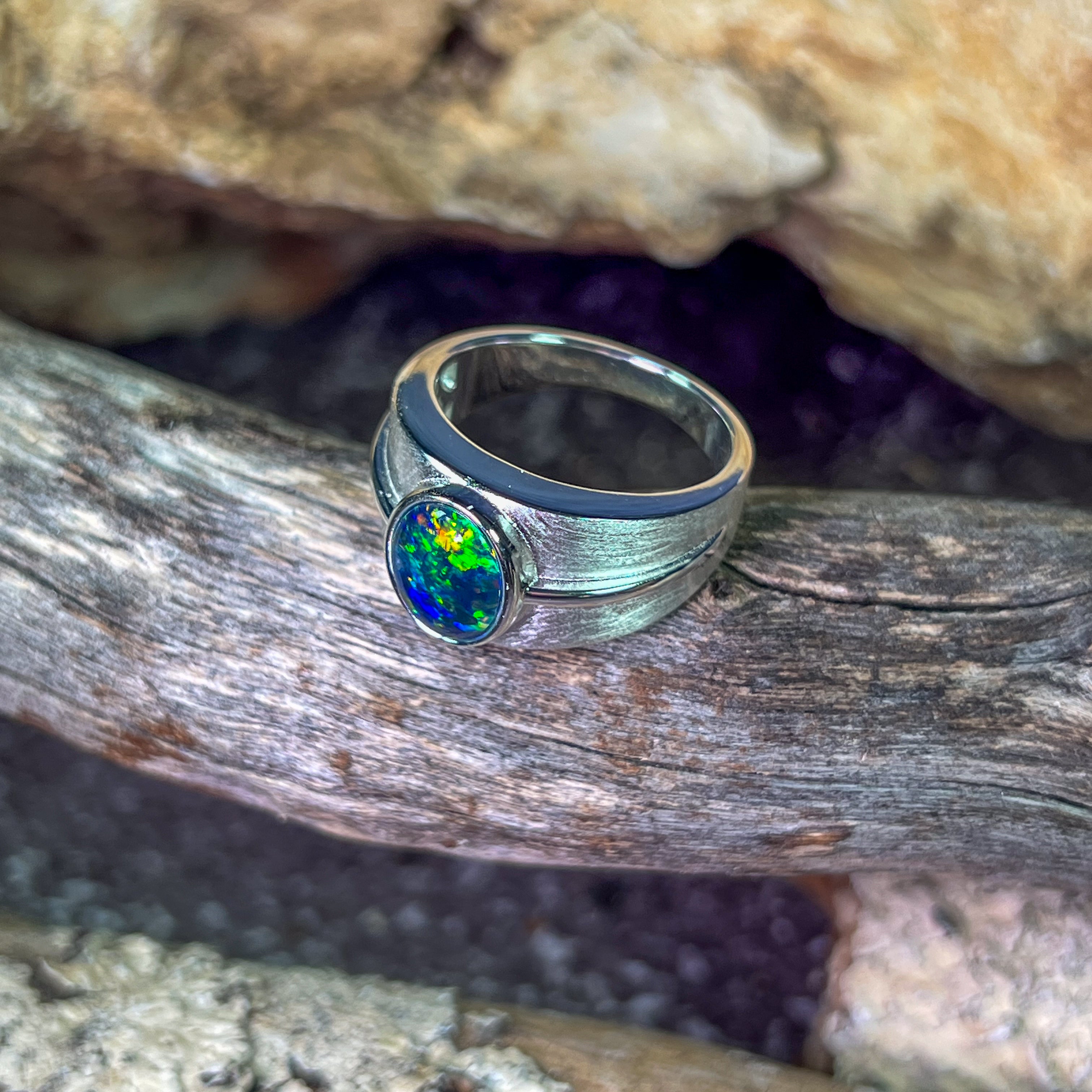 Sterling Silver matte finish 10x8mm Opal triplet ring