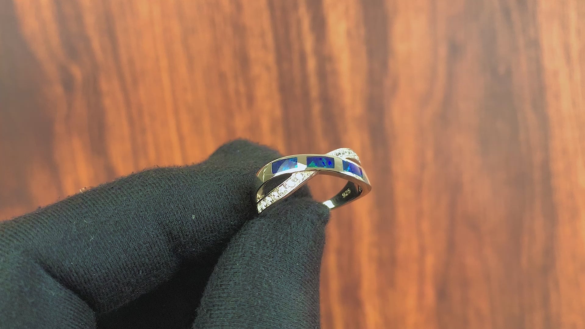 Luxurious and elegant, this opal inlay ring adds a touch of subtle sophistication. Crafted from sterling silver and featuring a sparkling opal inlay, this timeless piece will bring a modern touch to any ensemble. Make a statement with this unique, eye-catching design!