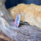 One Sterling Silver Opal ring bezel set Long Teardrop shape
