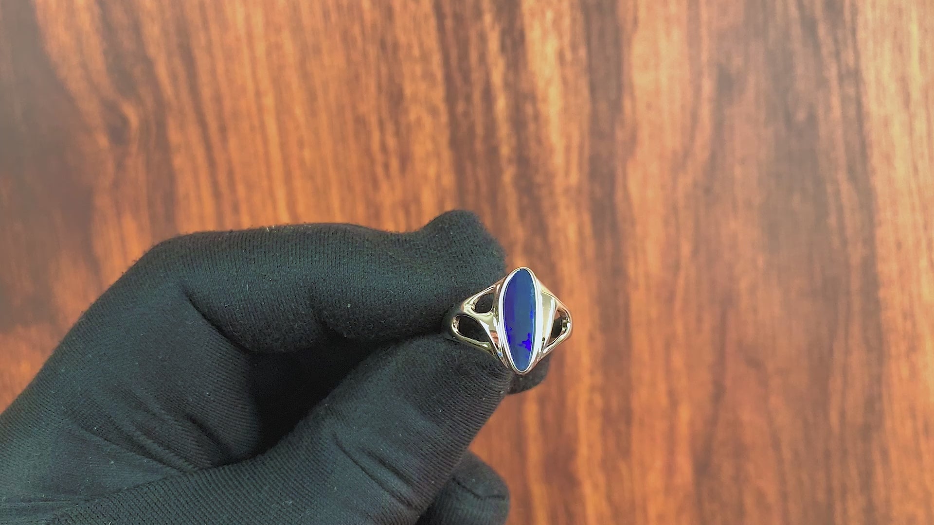 This beautiful Sterling Silver ring features a stunning Blue Opal doublet that is sure to make a statement. Crafted to perfection, this gorgeous jewelry piece will be a great addition to your look. Breathtakingly elegant and eye-catching, it's sure to become a treasured accessory!