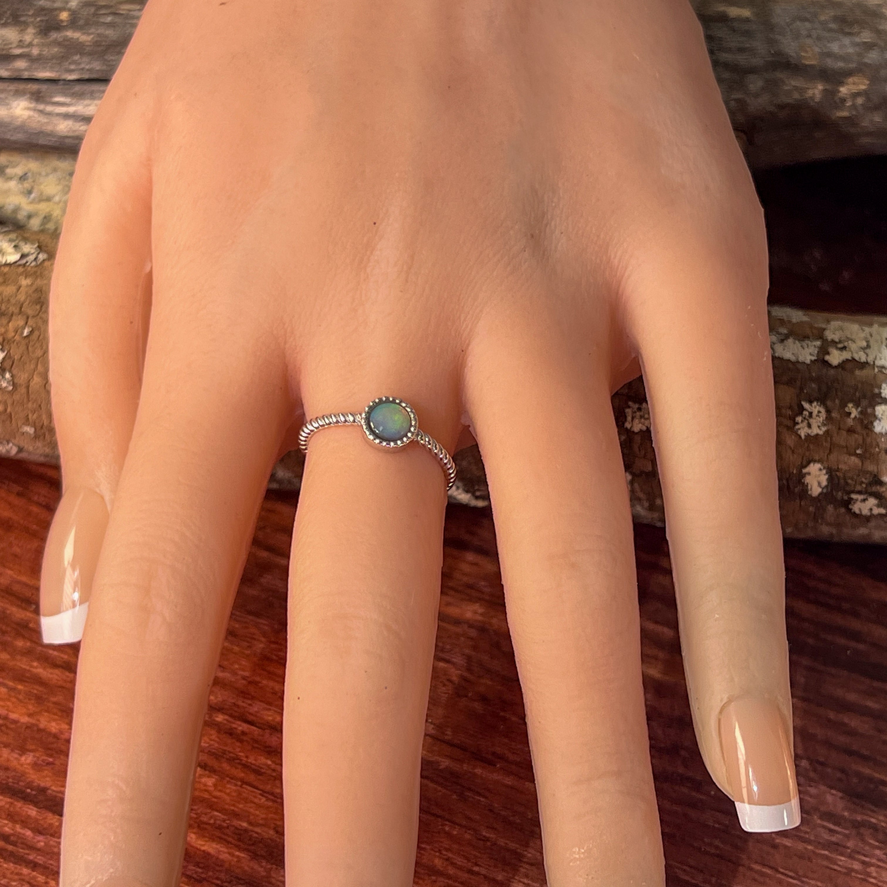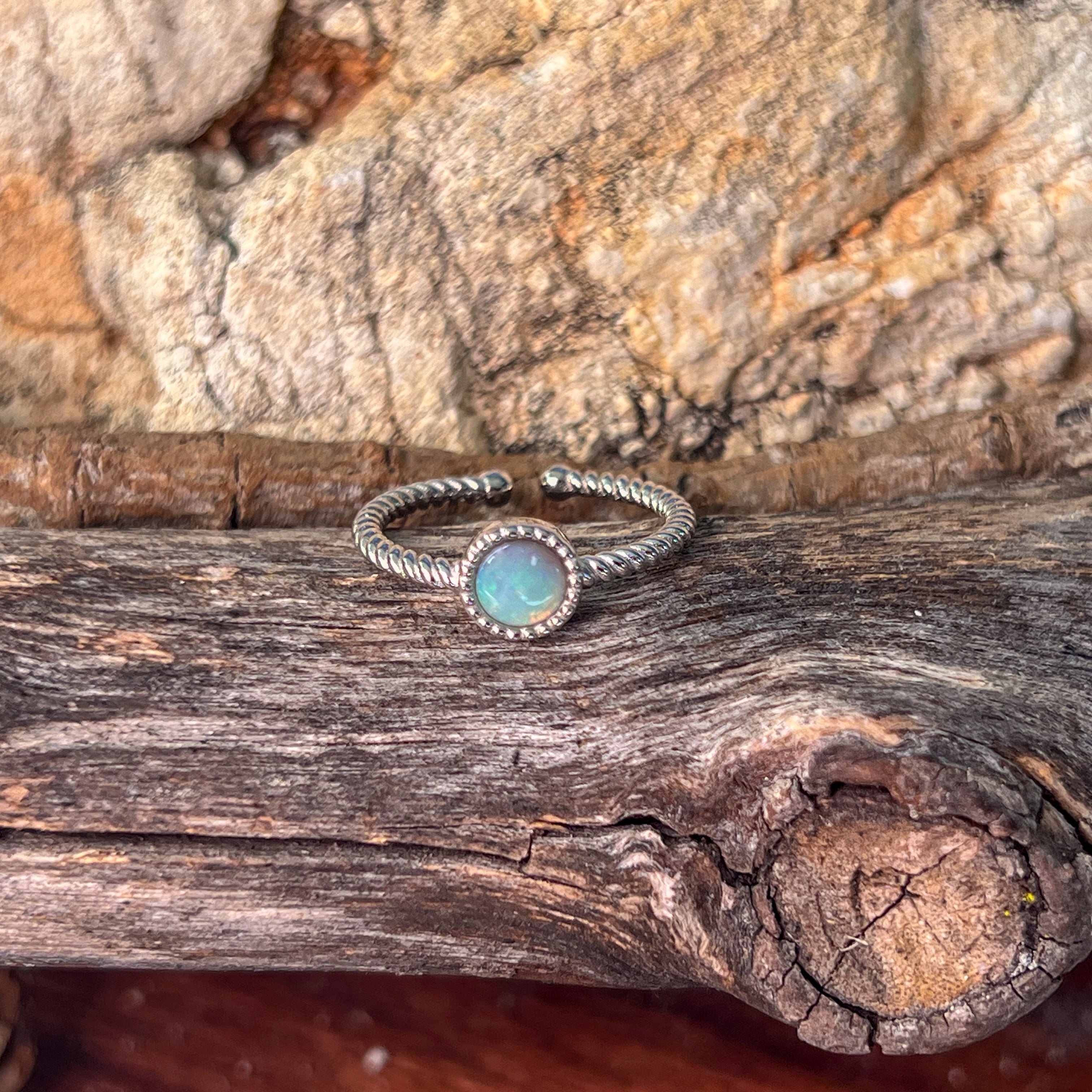One Sterling Silver White Opal ring bezel straight rope band solitaire