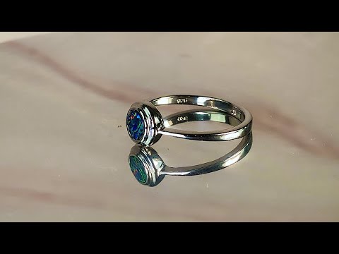 Sterling Silver Solitaire ring double bezel straight bandOne Australian Opal Doublet Round shape