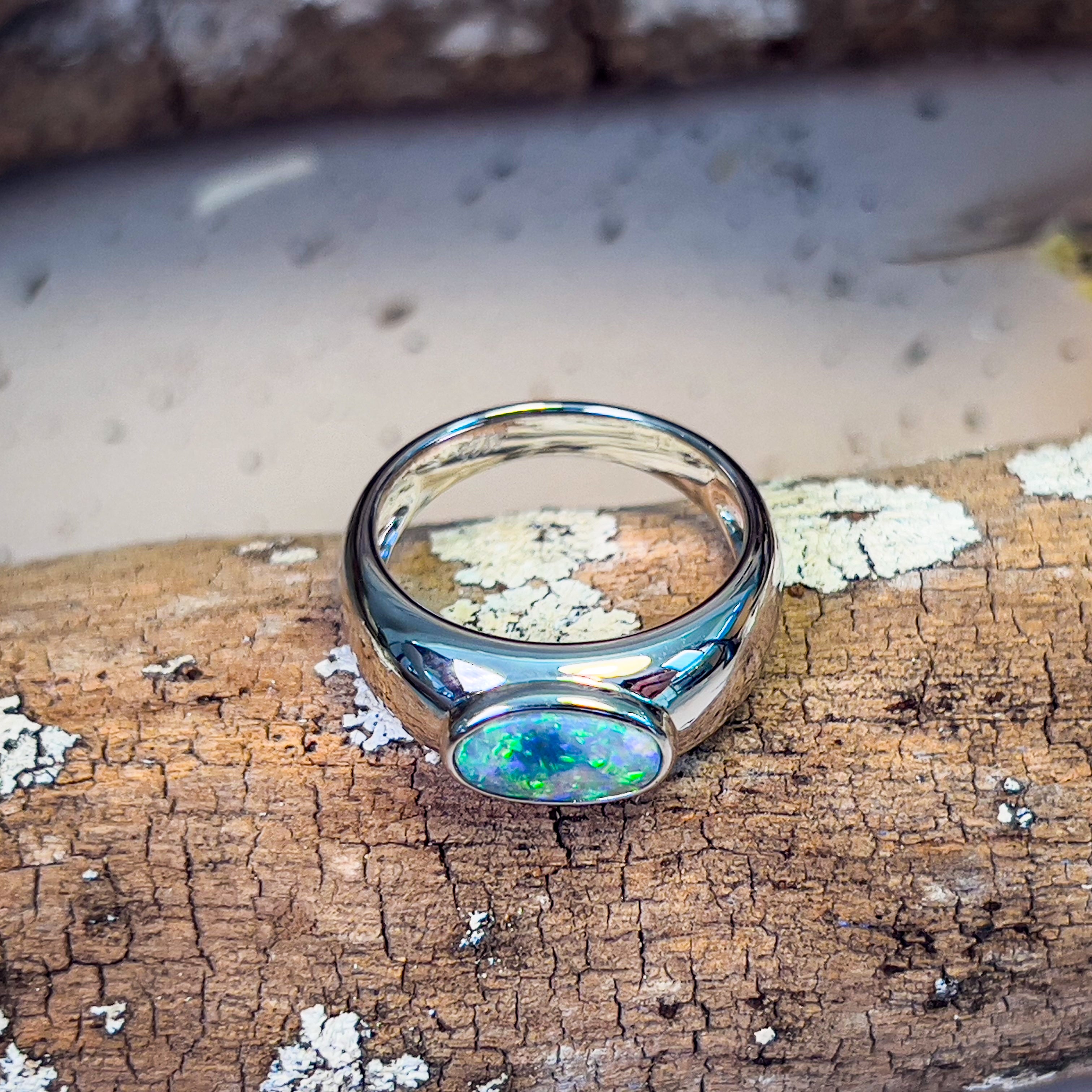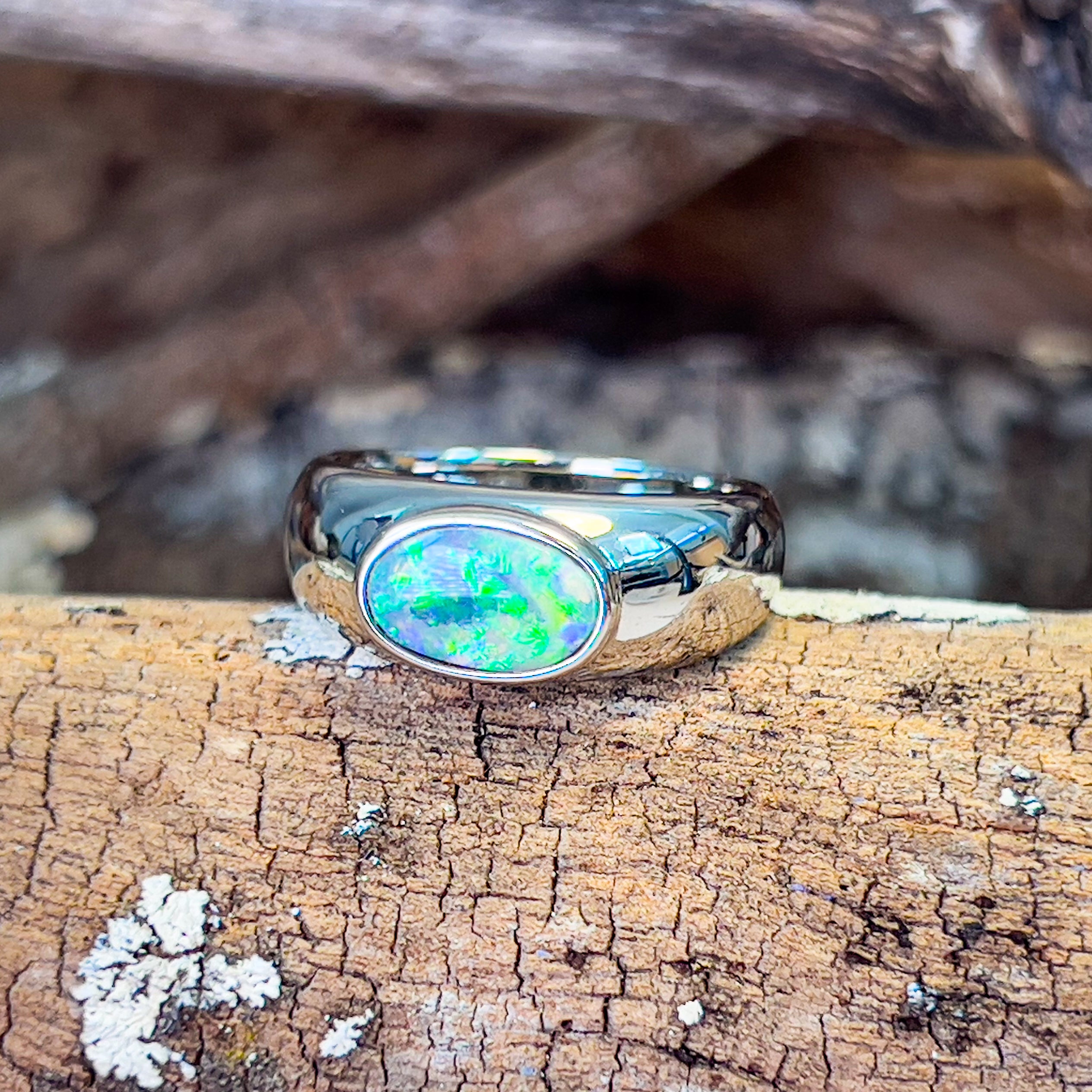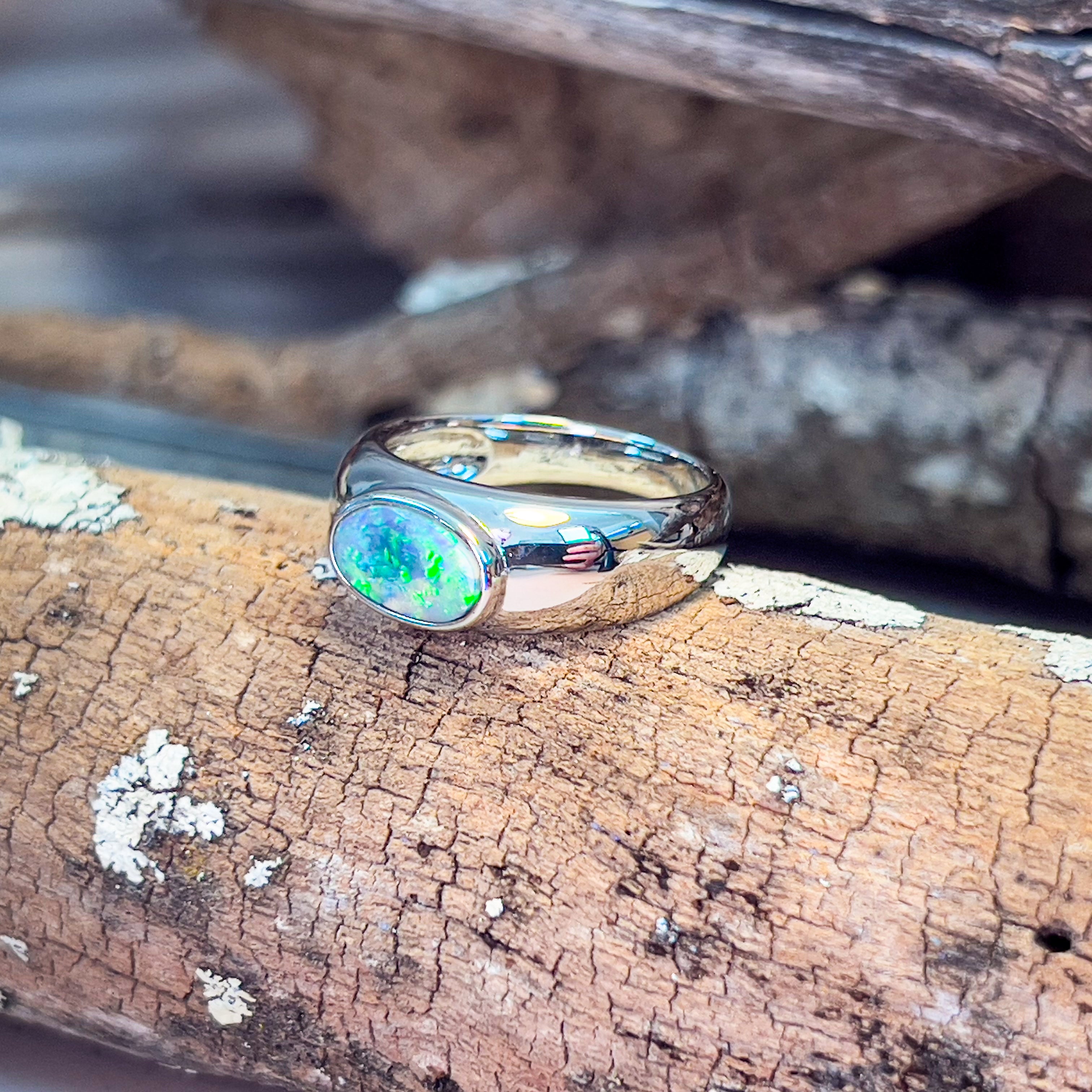 Indulge in luxury with our Sterling Silver Black Opal Signet Ring. This stunning 1.28ct black opal adds a touch of elegance to the classic signet style ring. Perfect as a promise ring for him, it exudes sophistication and exclusivity. Elevate your style with this opulent piece.