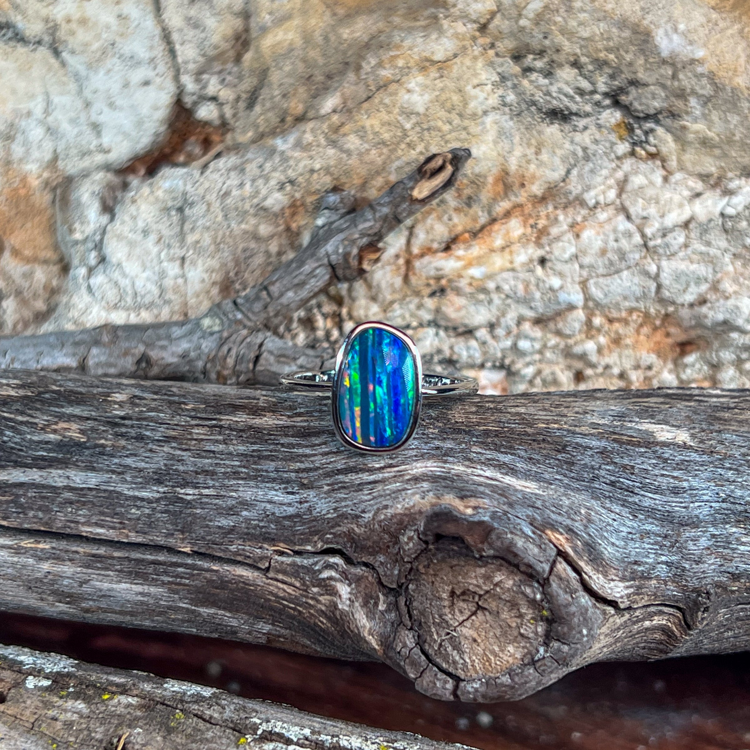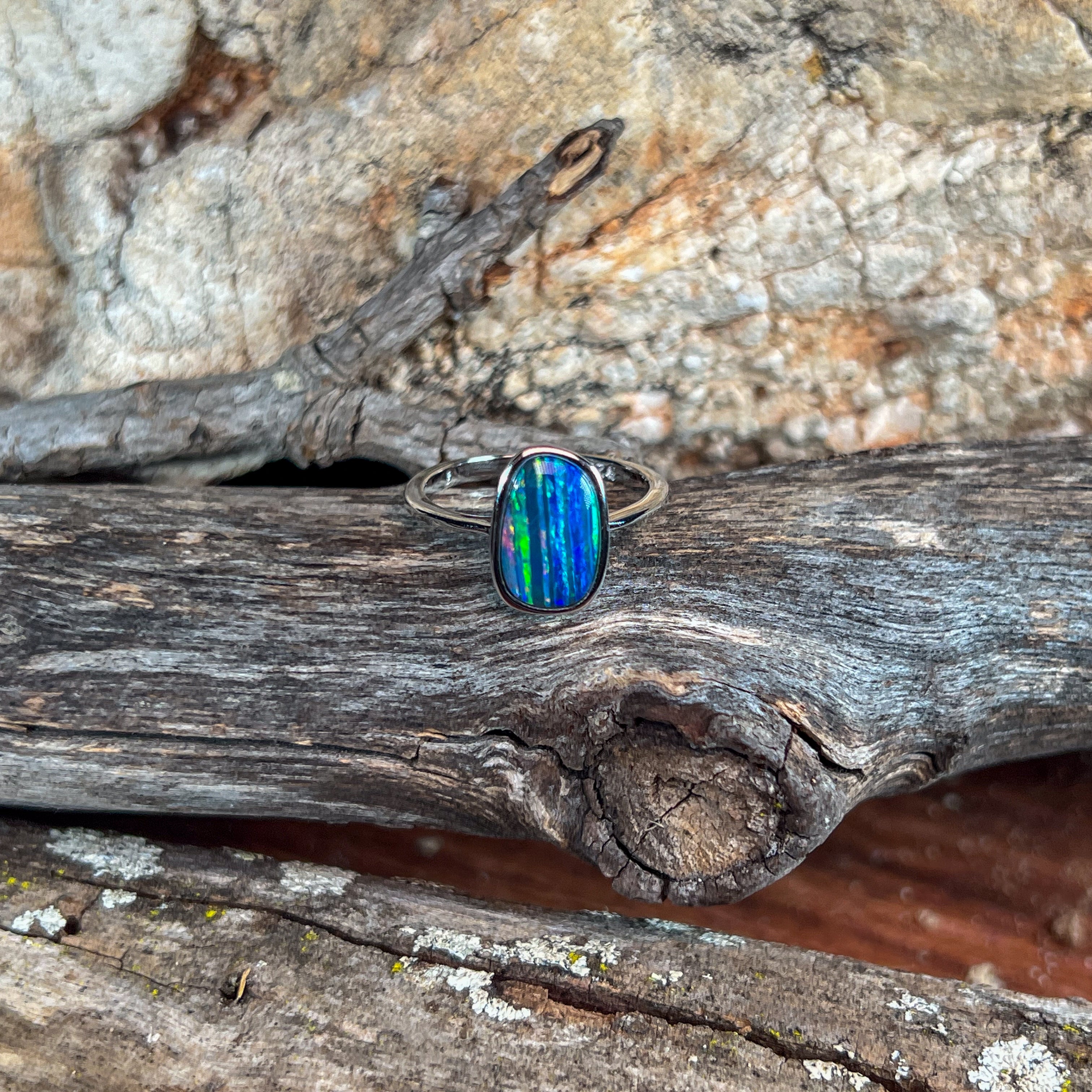 Sterling Silver Solitaire Opal doublet 12x7mm ring