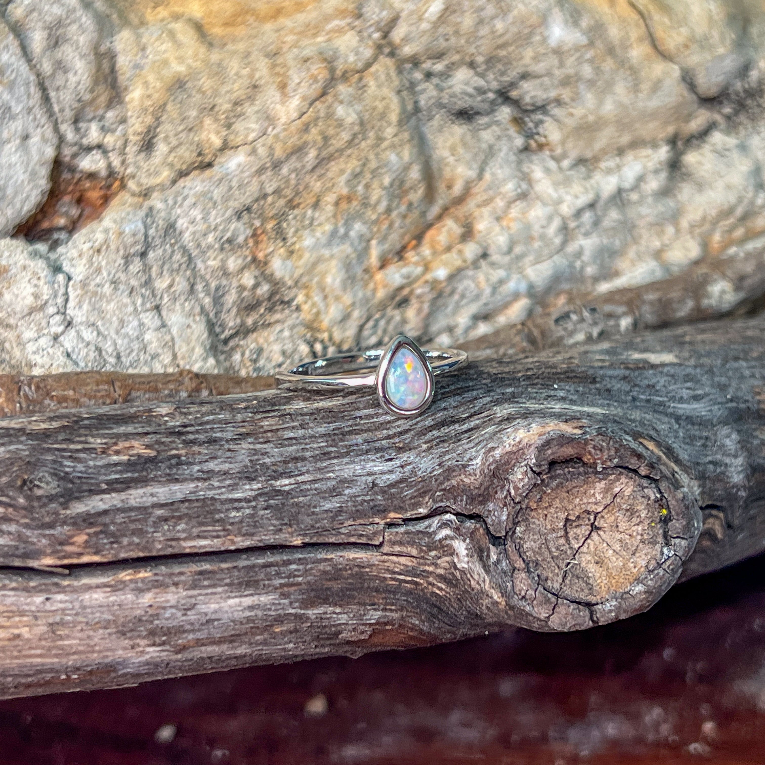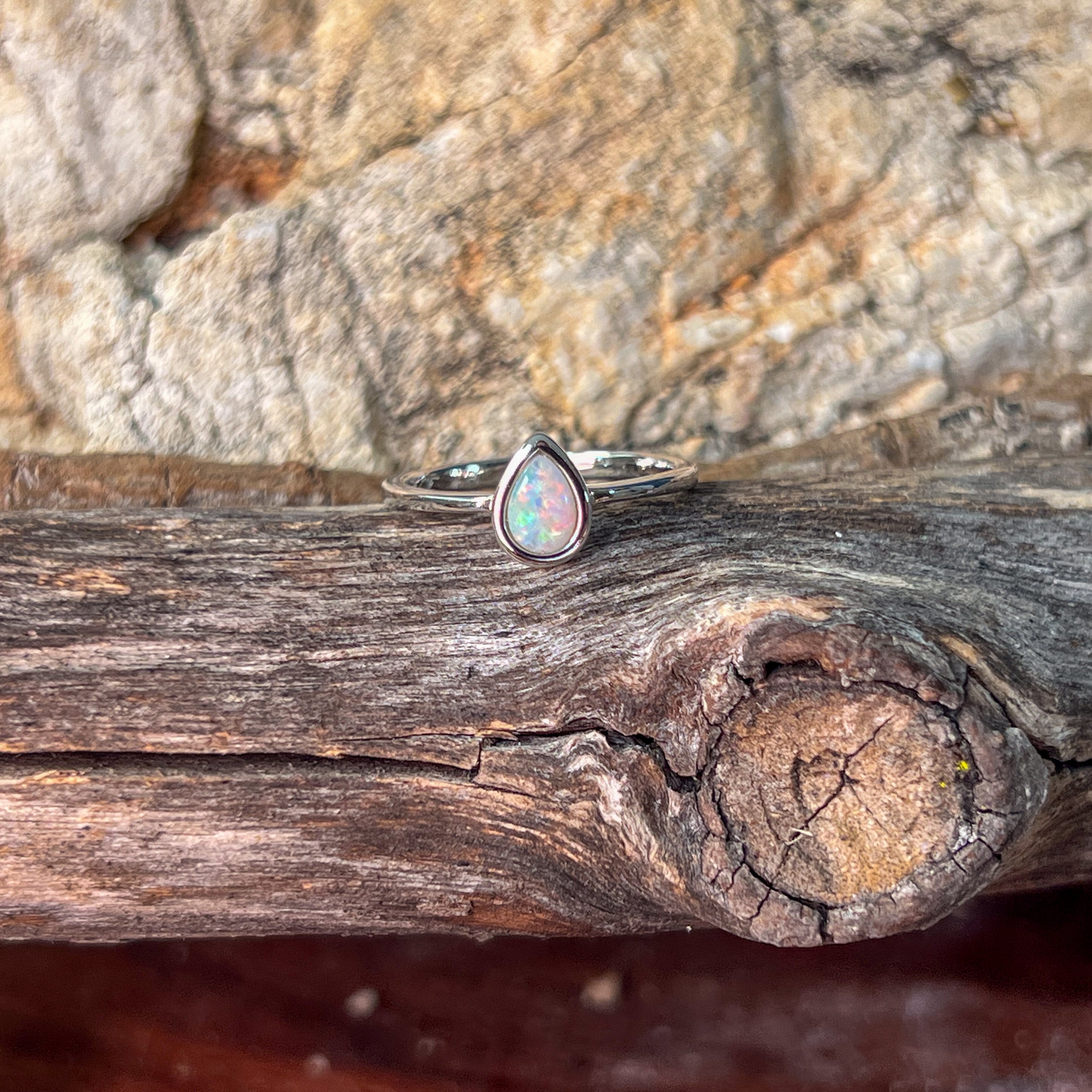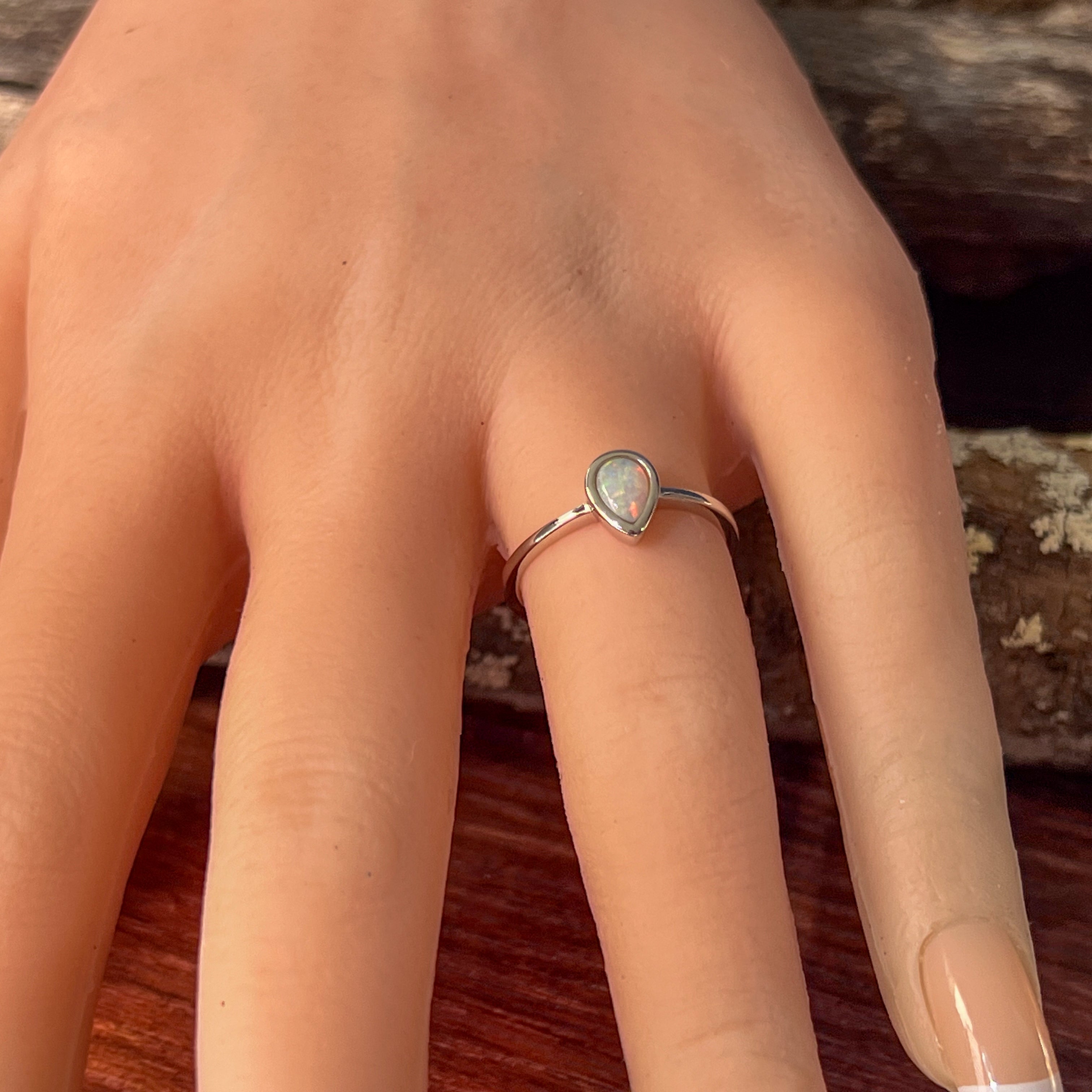 Add a splash of whimsy to your collection with this sterling silver solitaire pear-shaped opal ring. Its shimmering opal centerpiece catches the light with every move, making it the perfect playful touch for any outfit. Classic yet fun, this ring brings a joyful sparkle to your day.