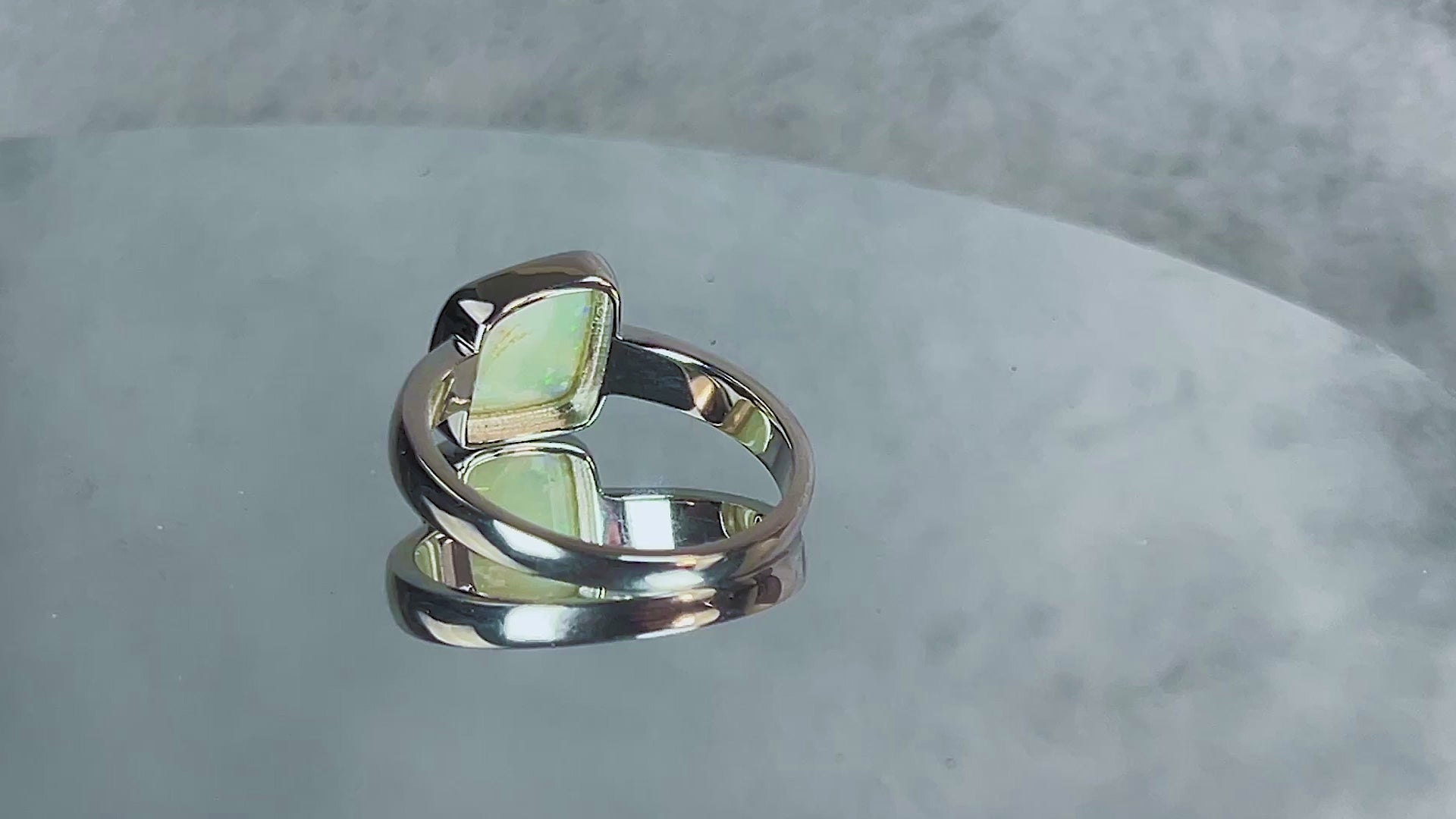 Show off your unique style with this beautiful 1.9ct Sterling Silver white opal ring. Its square freeform design will definitely catch everyone's attention. Perfect for both casual and formal occasions, this timeless piece of jewelry will add elegance to any look.