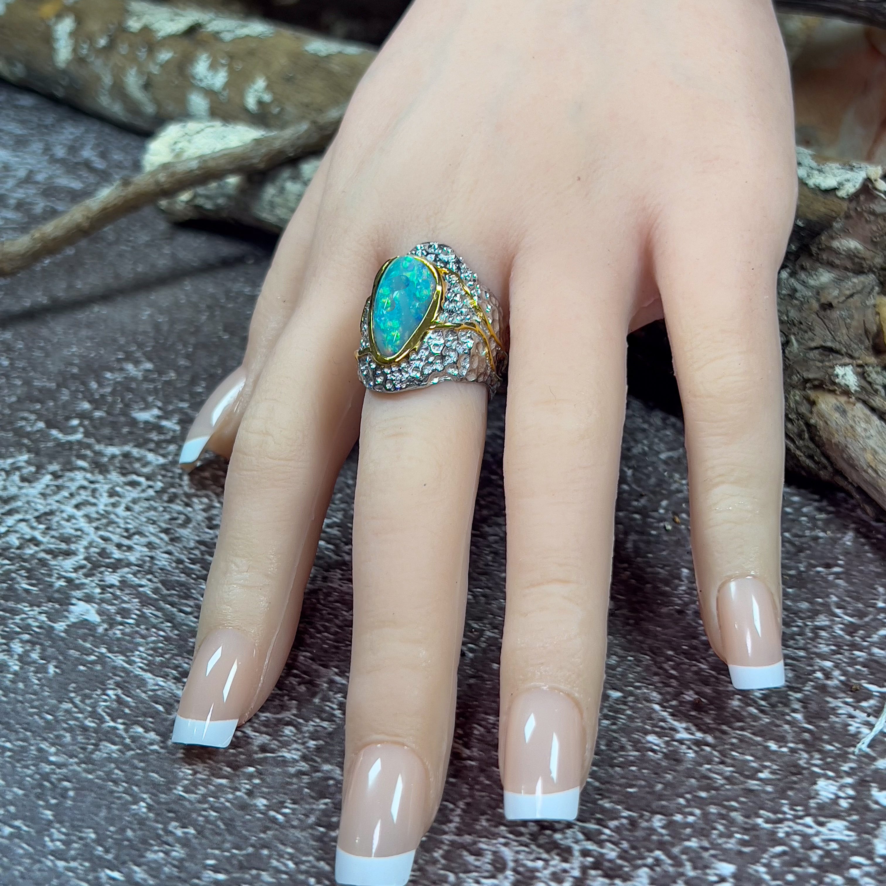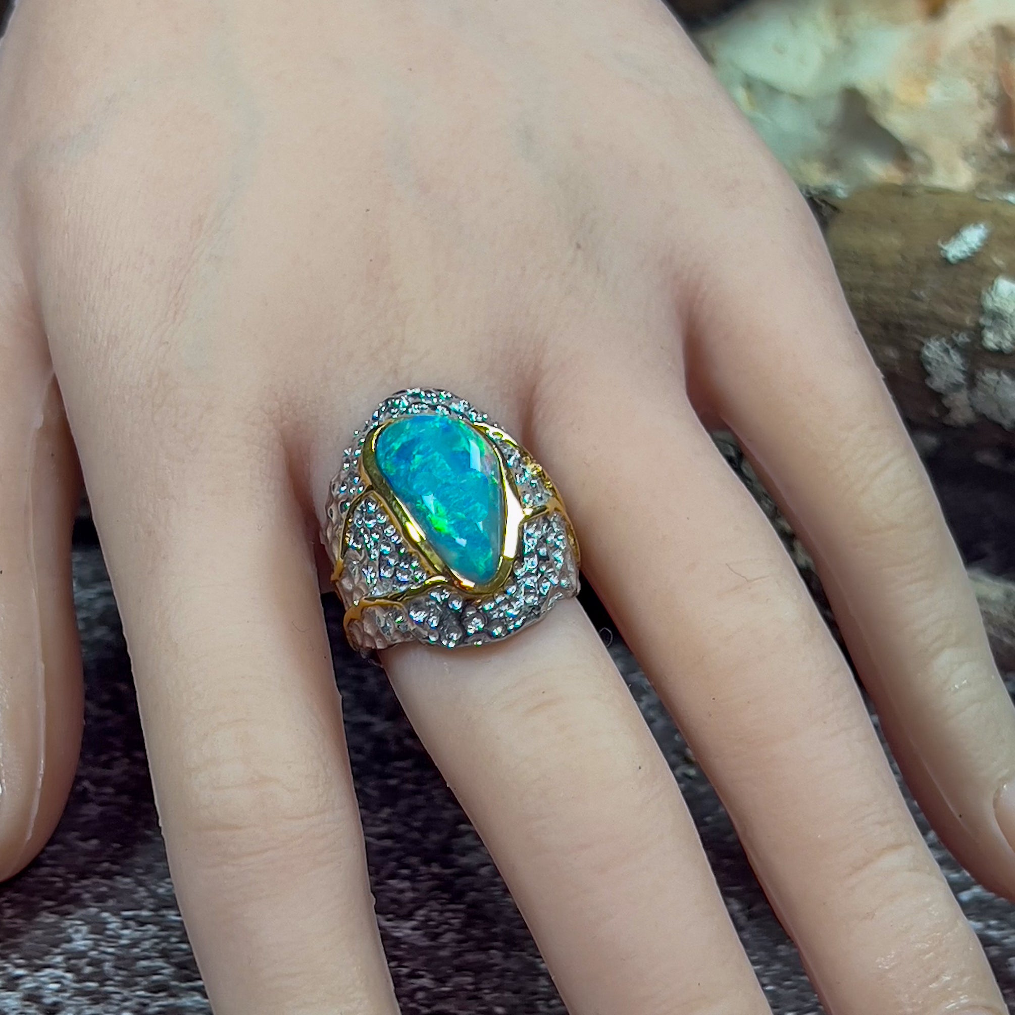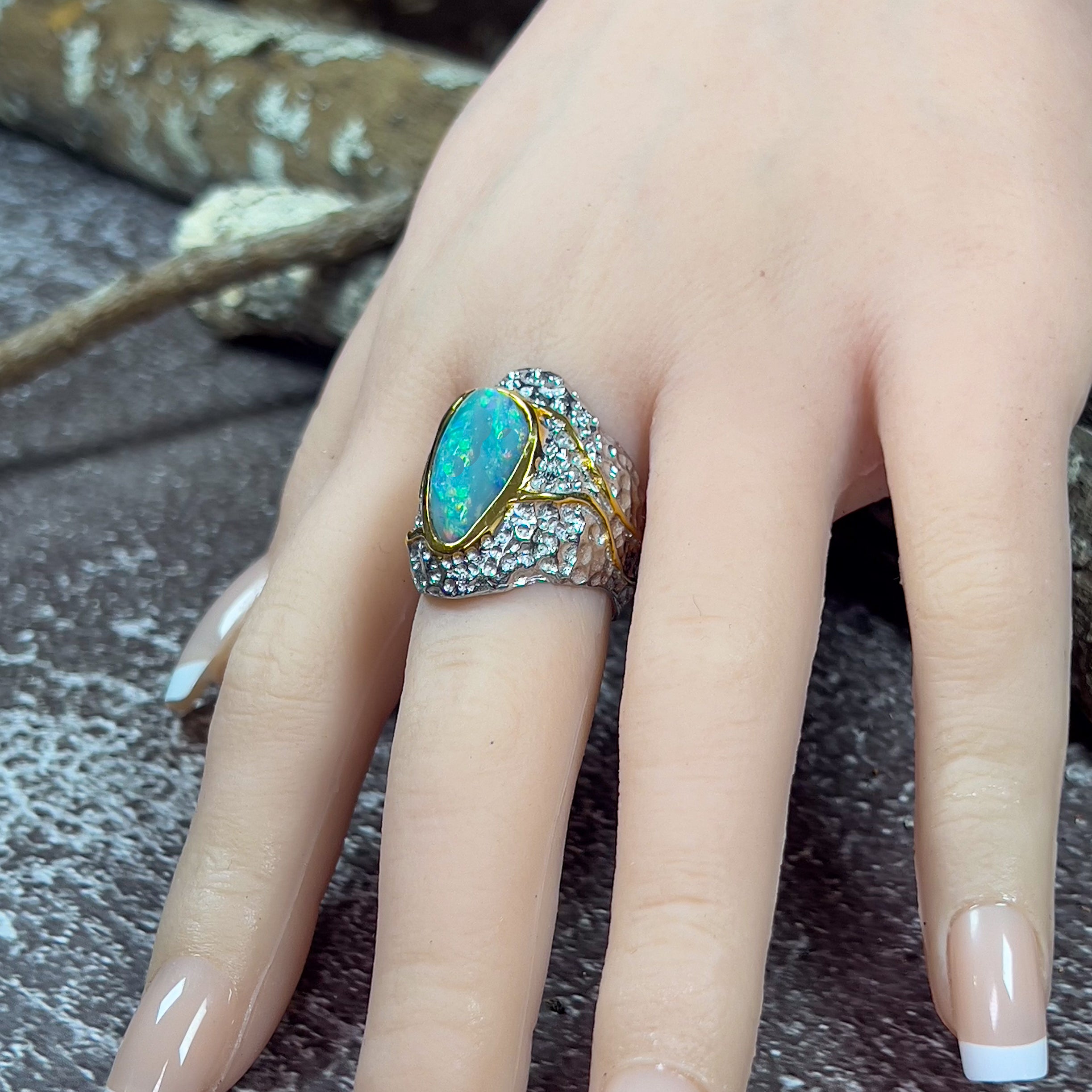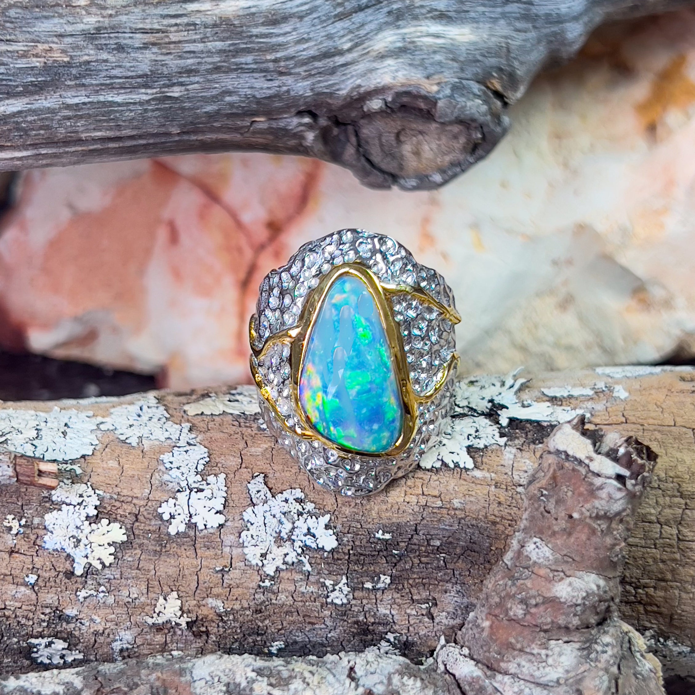 Sterling Silver Two Tone Ocean Reef design ring with Opal