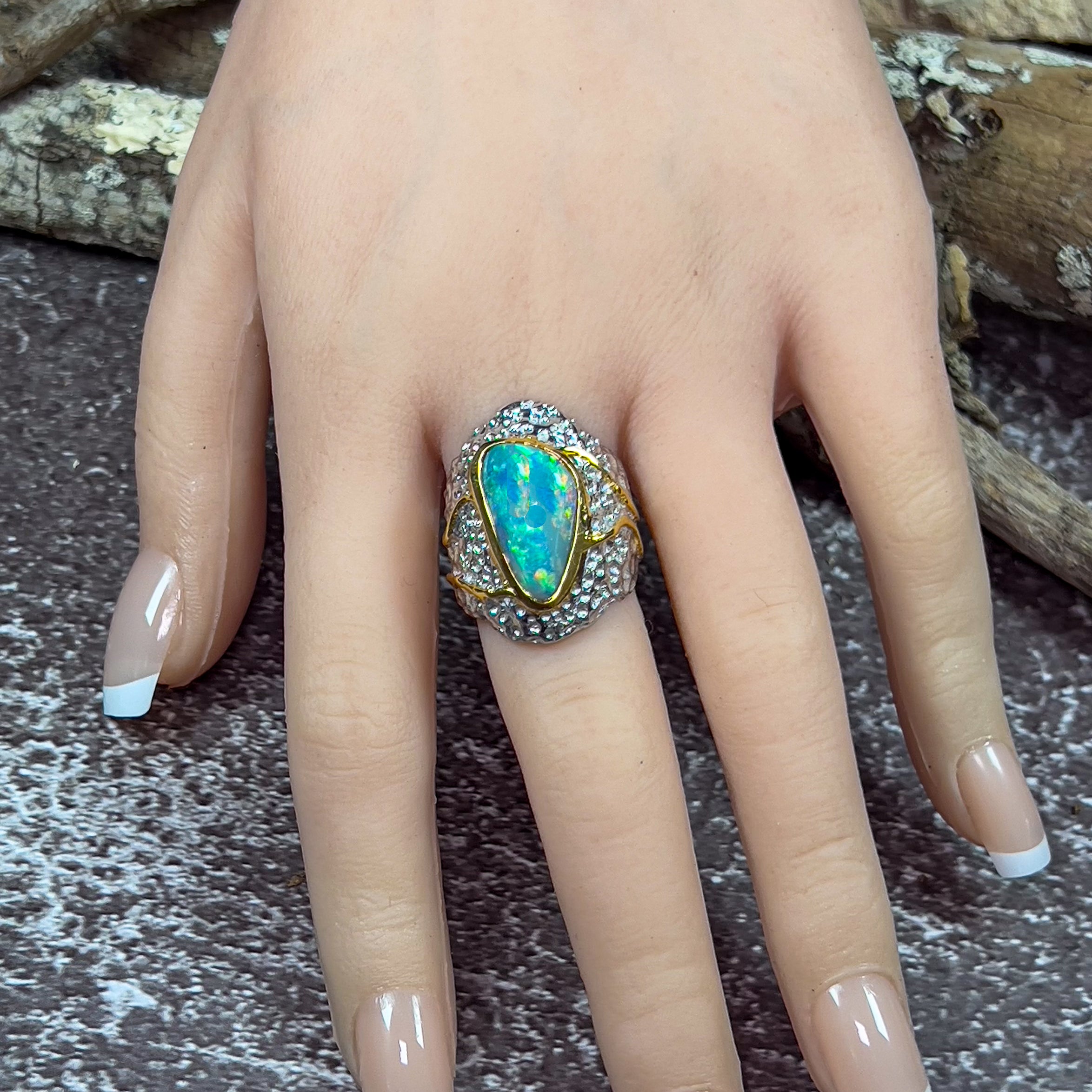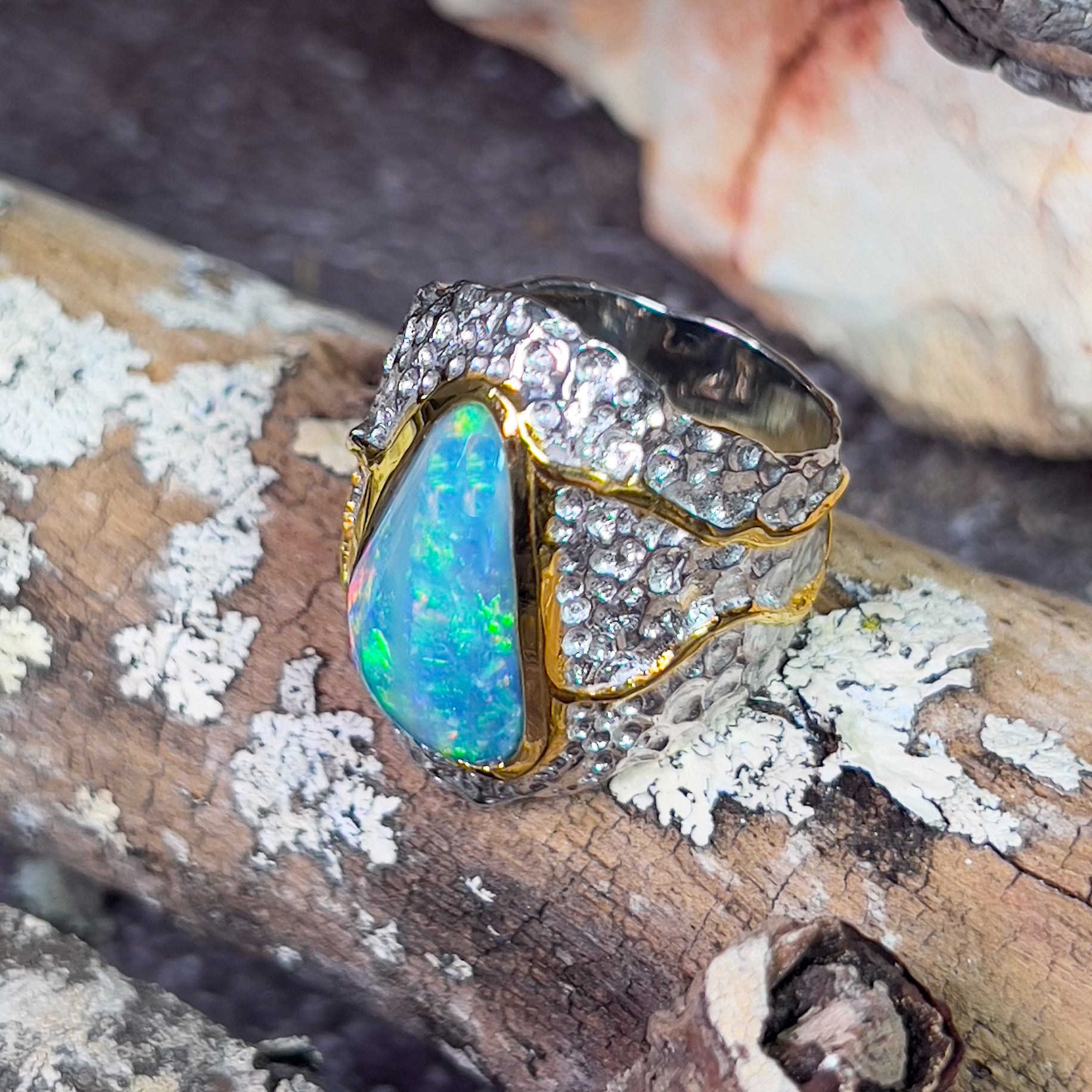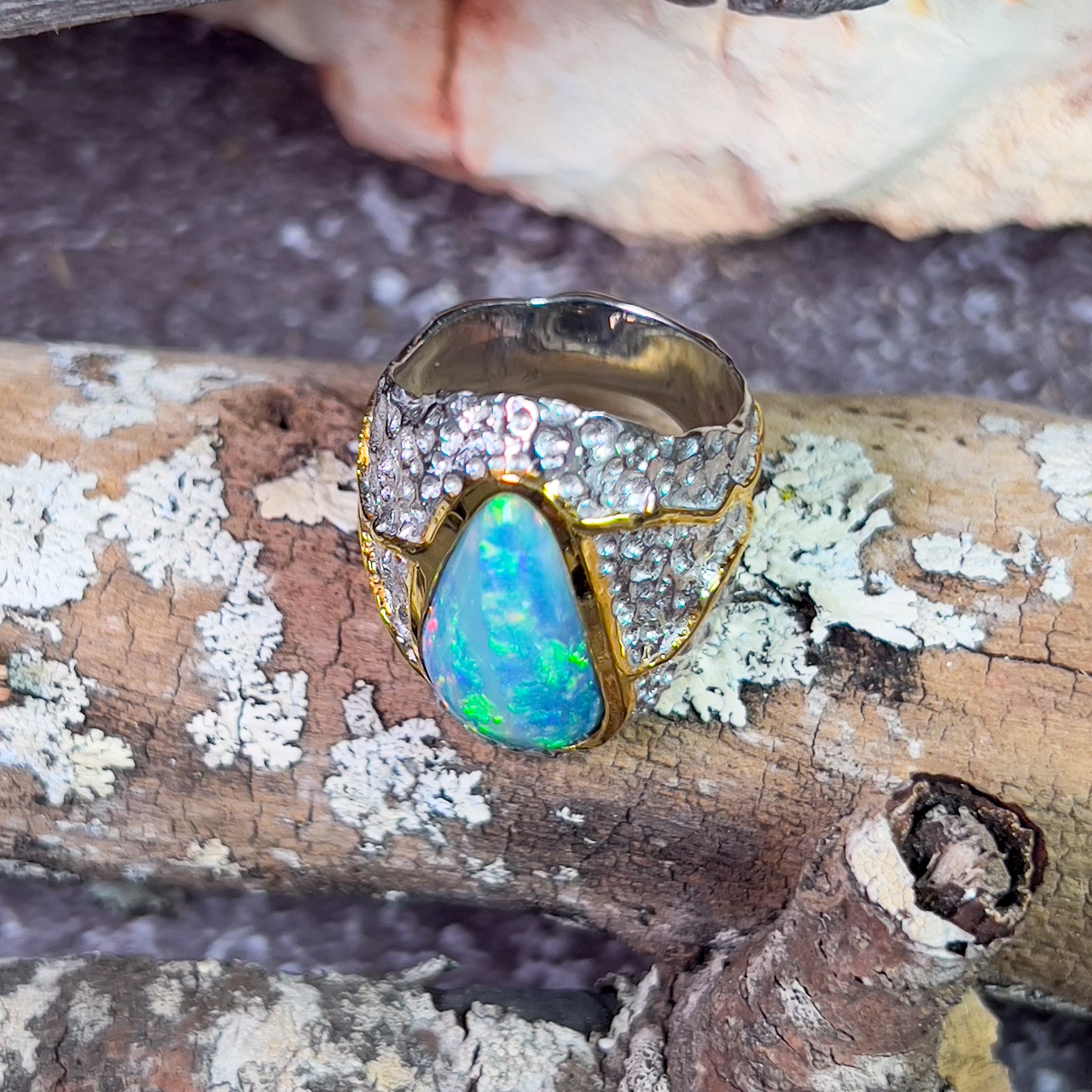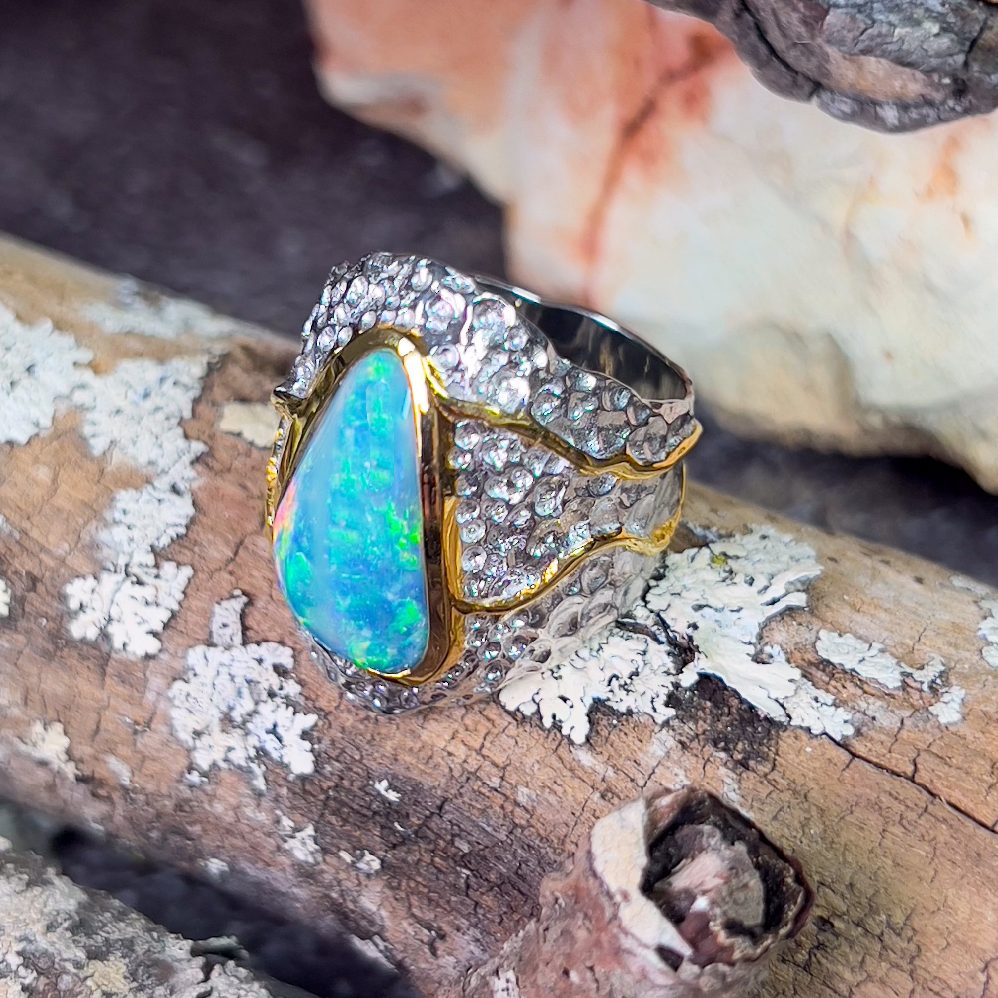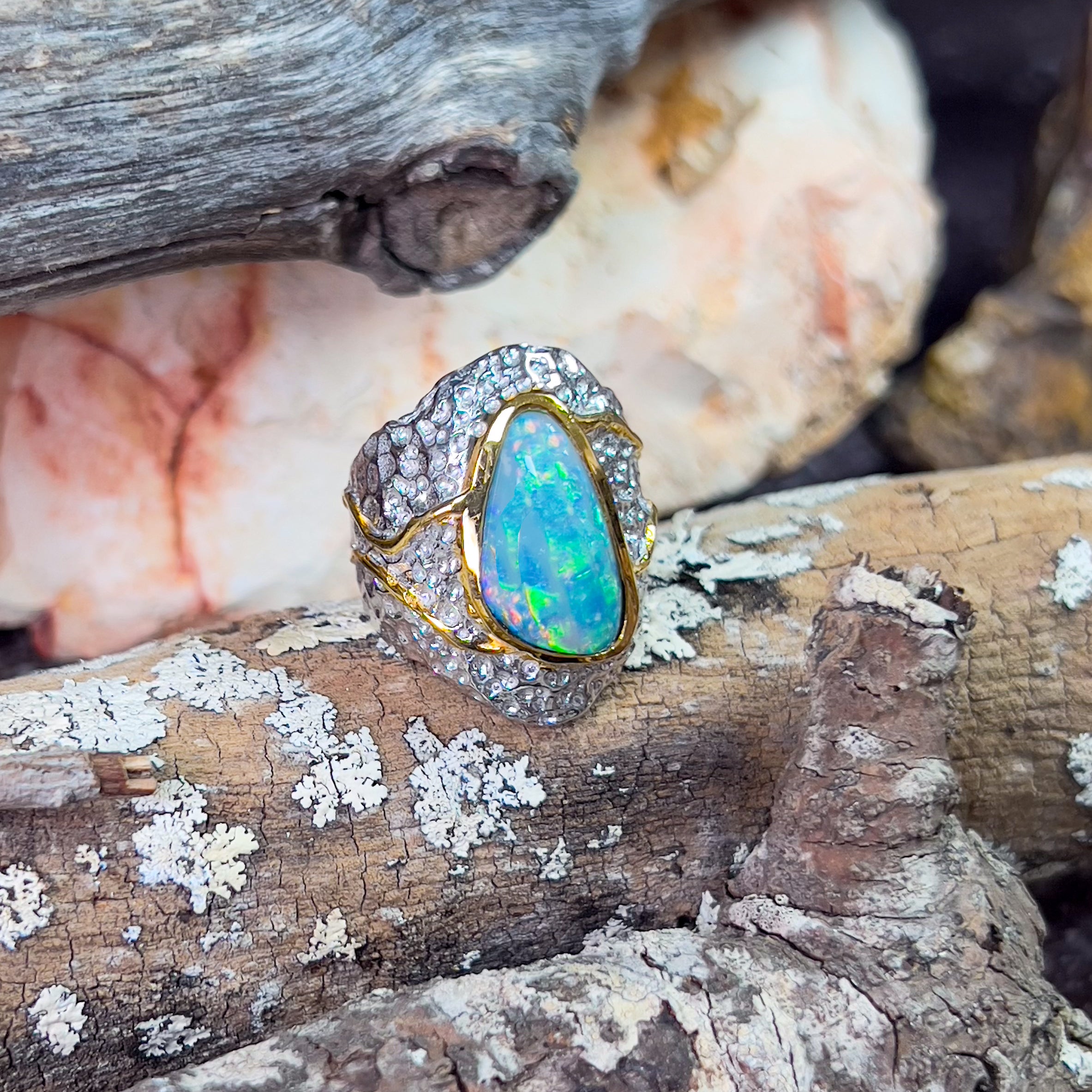 Sterling Silver Two Tone Ocean Reef design ring with Opal
