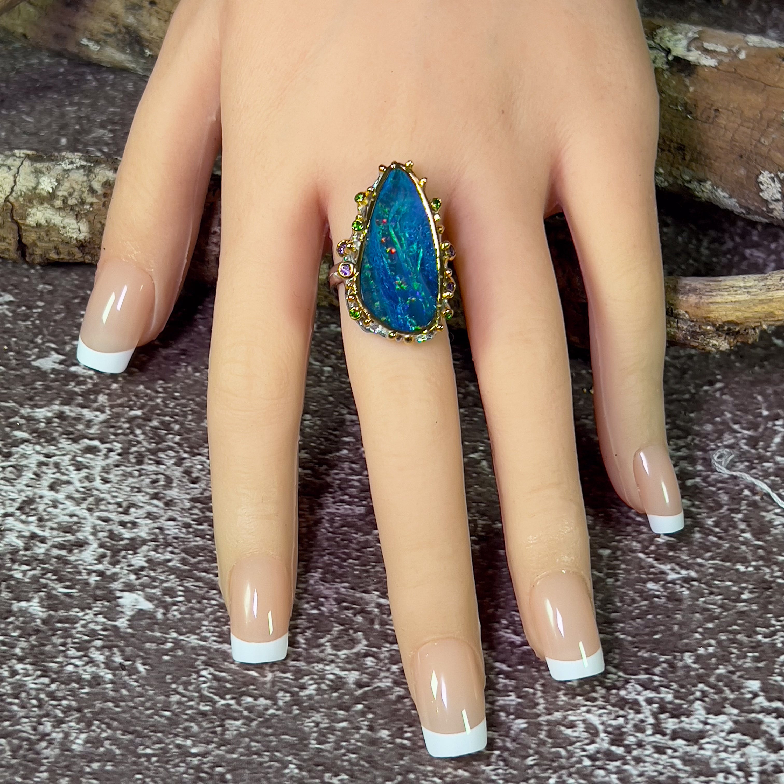 1 Freeform Red Blue green Australian Doublet Opal Pearshape