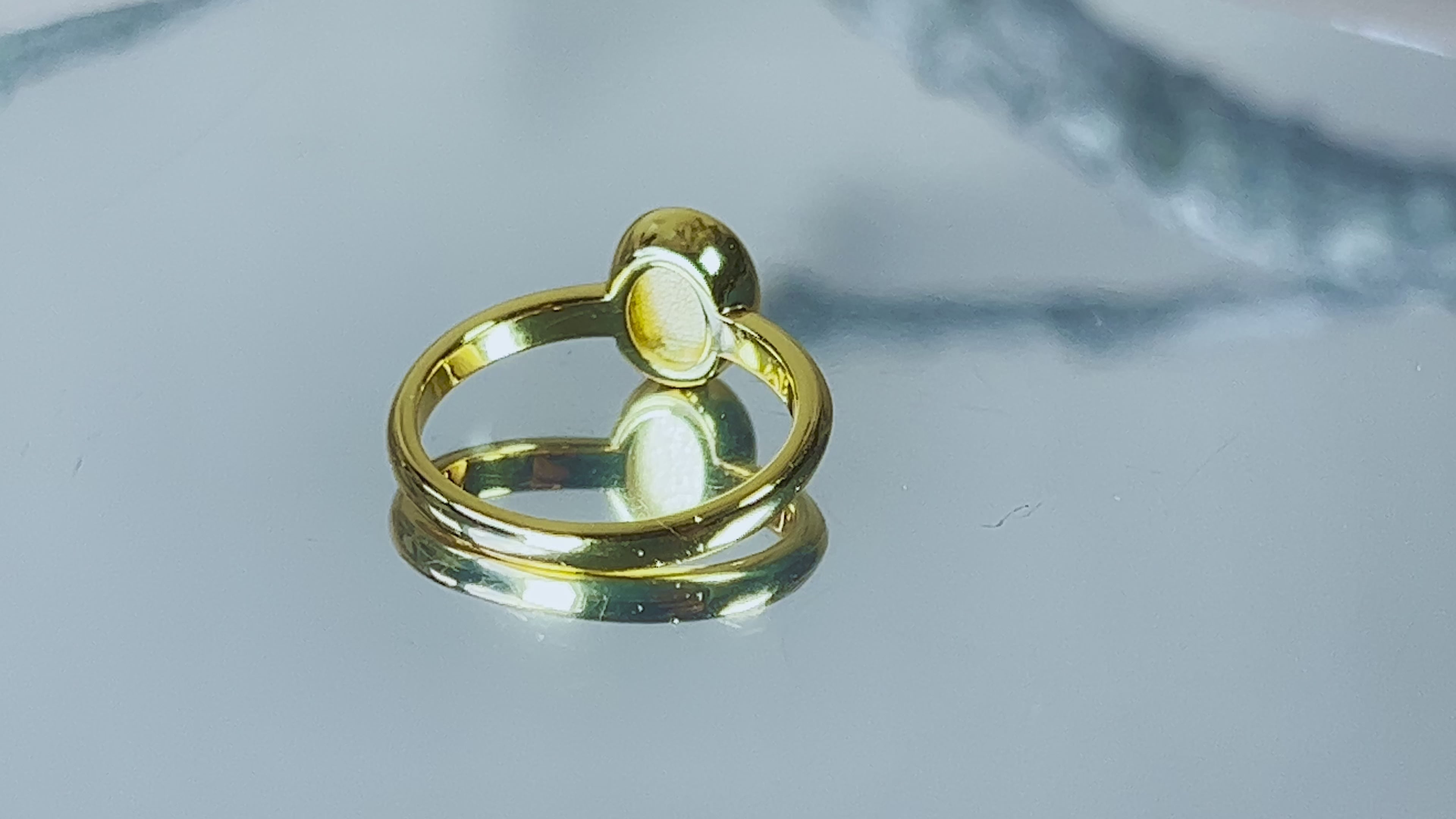 White Opal Ring for Women - Gold Plated Sterling Silver - Dainty Blue & Silver Opal Jewelry Piece 8x6mm