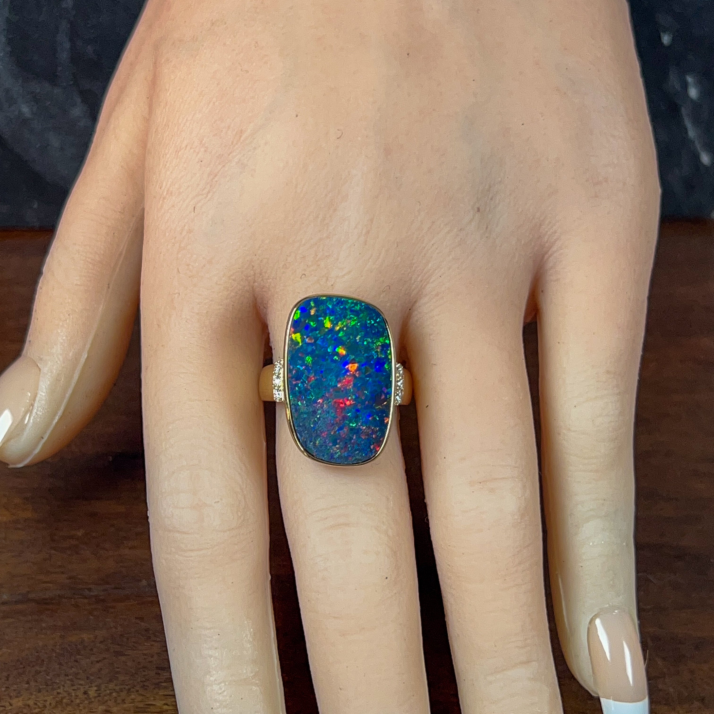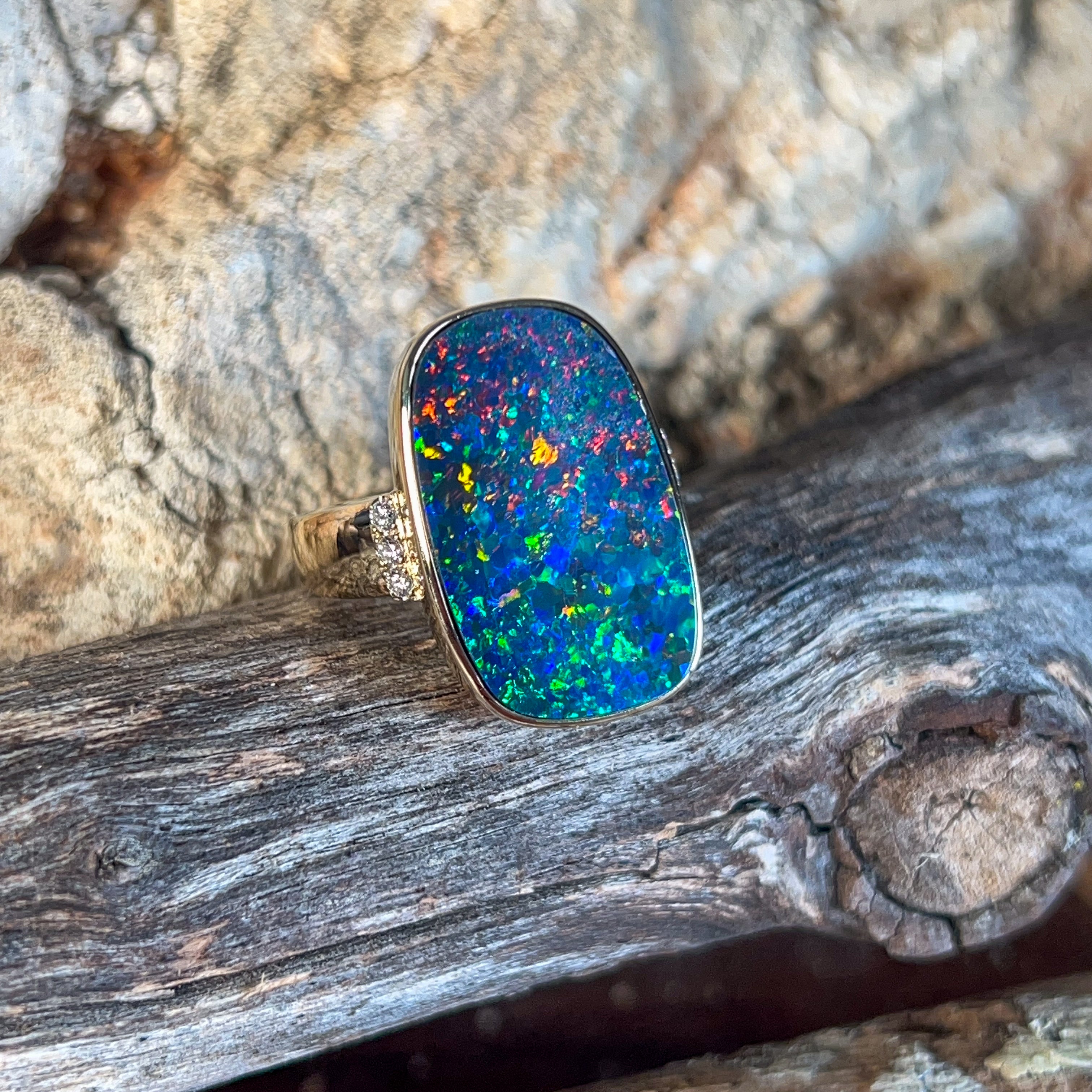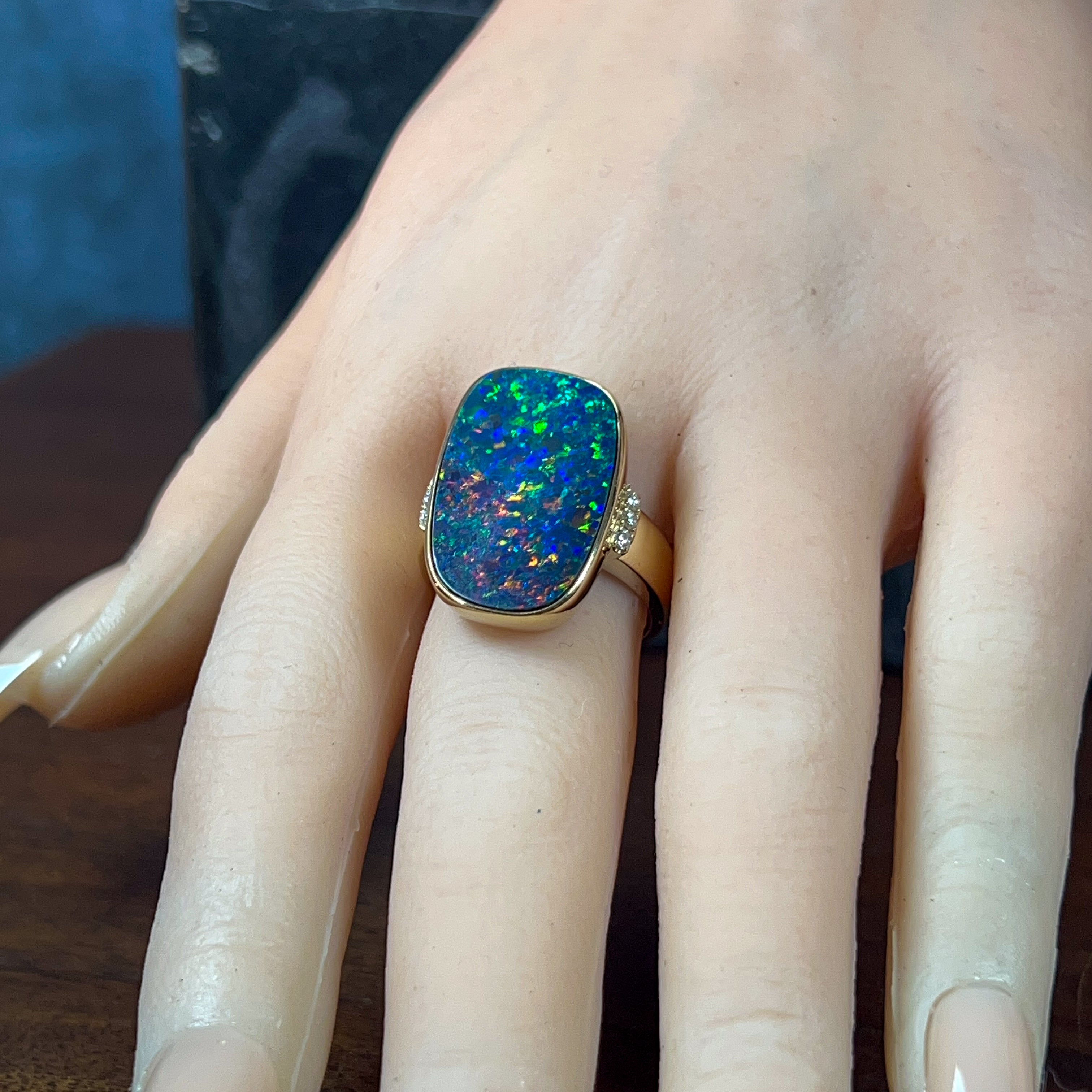 14kt Yellow Gold Opal 7.25ct doublet with diamonds ring
