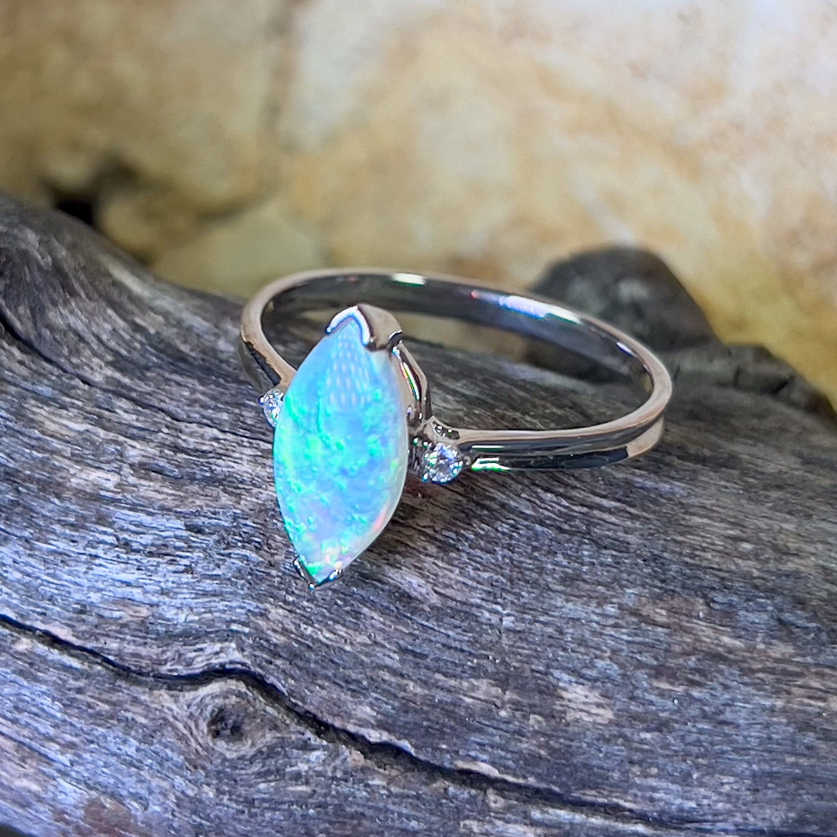 18kt White Gold Marquise Crystal Opal and diamond ring