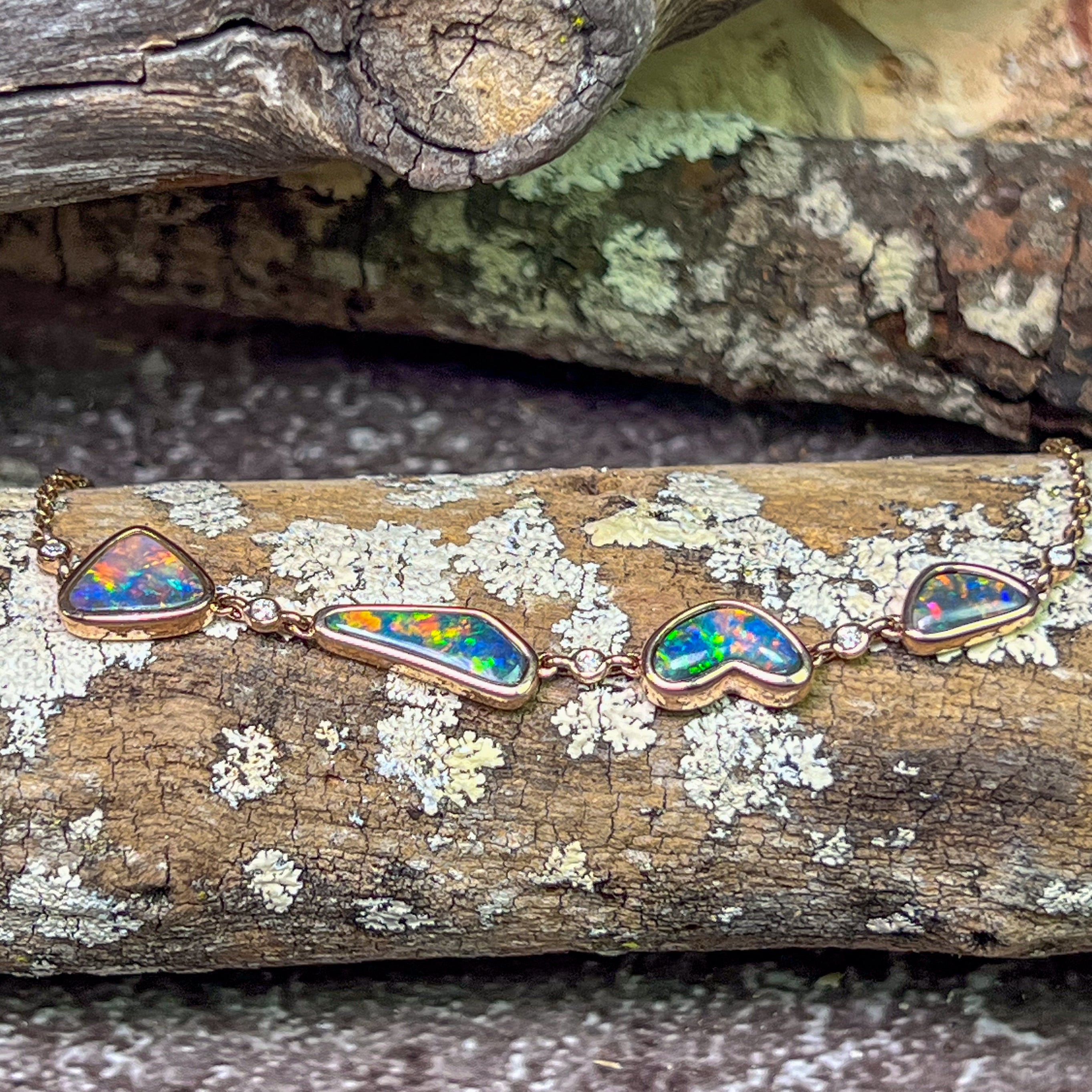 14kt Rose Gold Bracelet 4 Freeform Black Opal and diamond bracelet